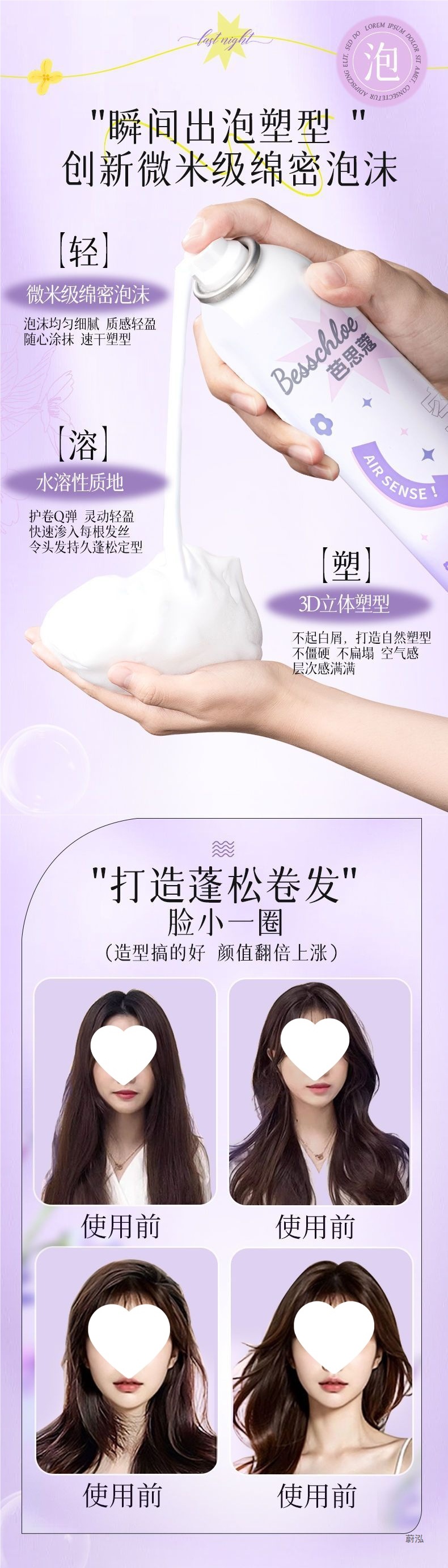 Пенка для волос, воск, эластин, женские вьющиеся волосы, натуральная пушистая шерсть, уход за локонами, жидкий пузырьковый спрей для укладки волос, лак для волос