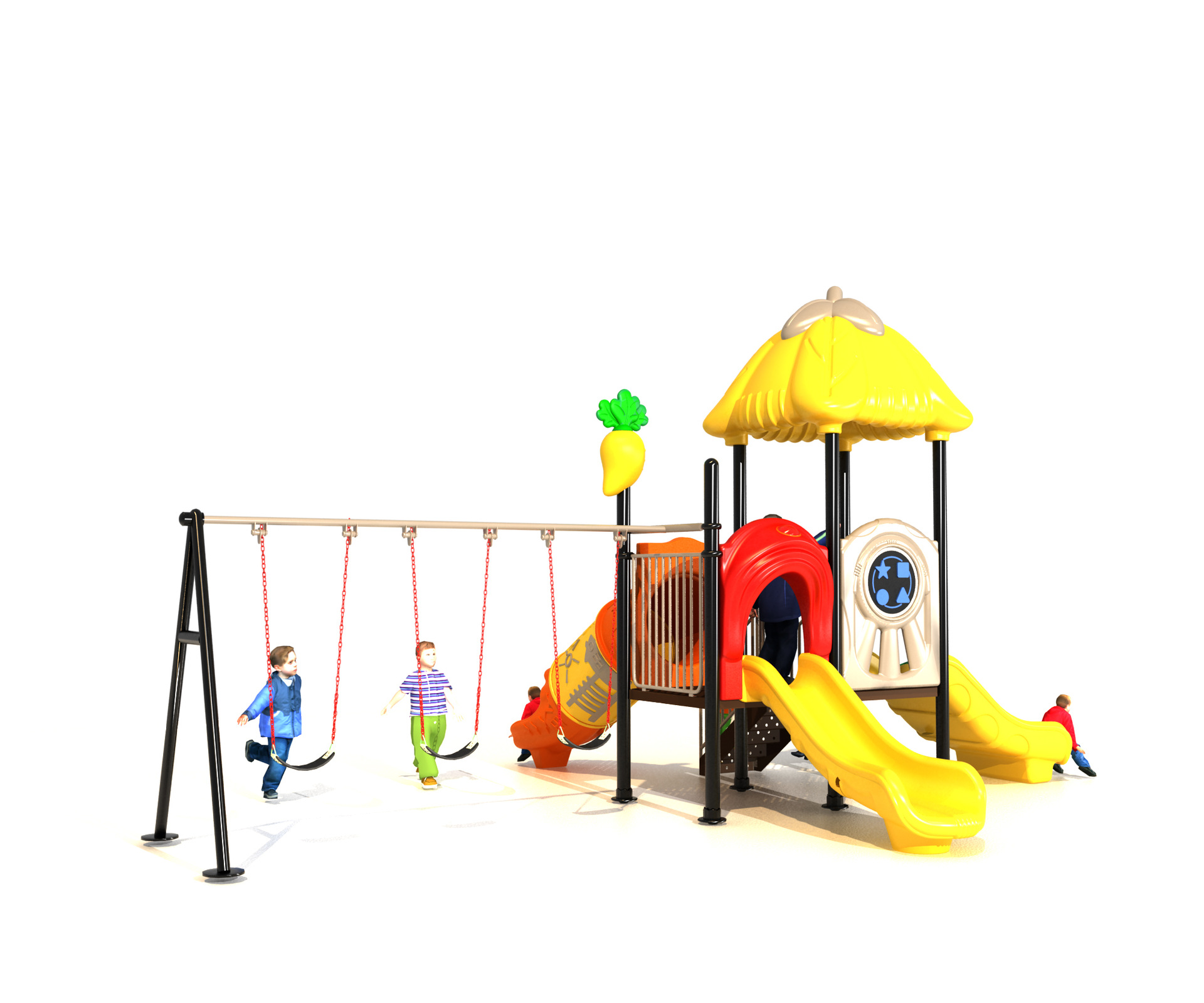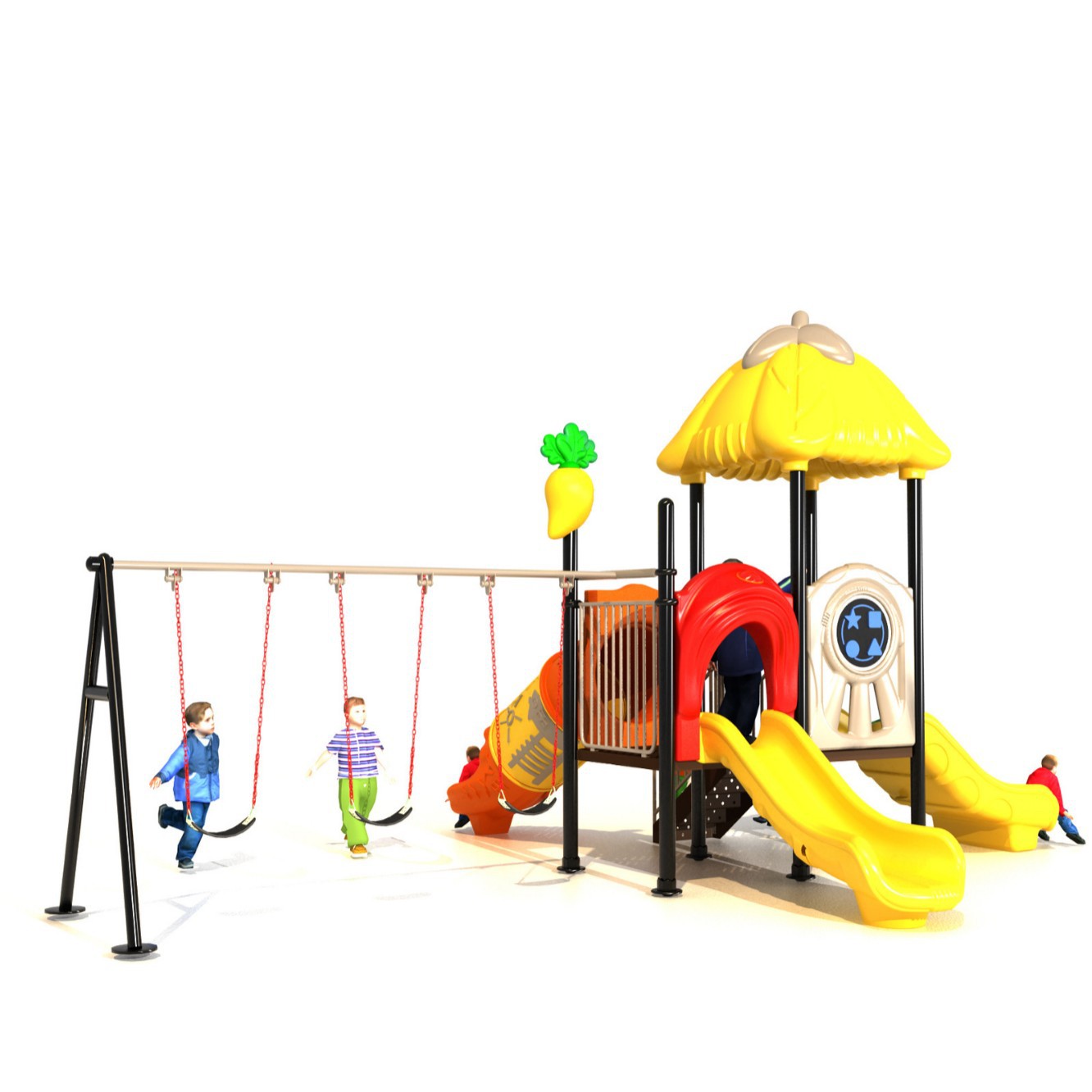 Детская игровая площадка с горкой и качелями для нескольких человек, 89-секционная пластиковая горка для парков и уличных зон