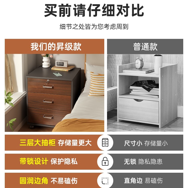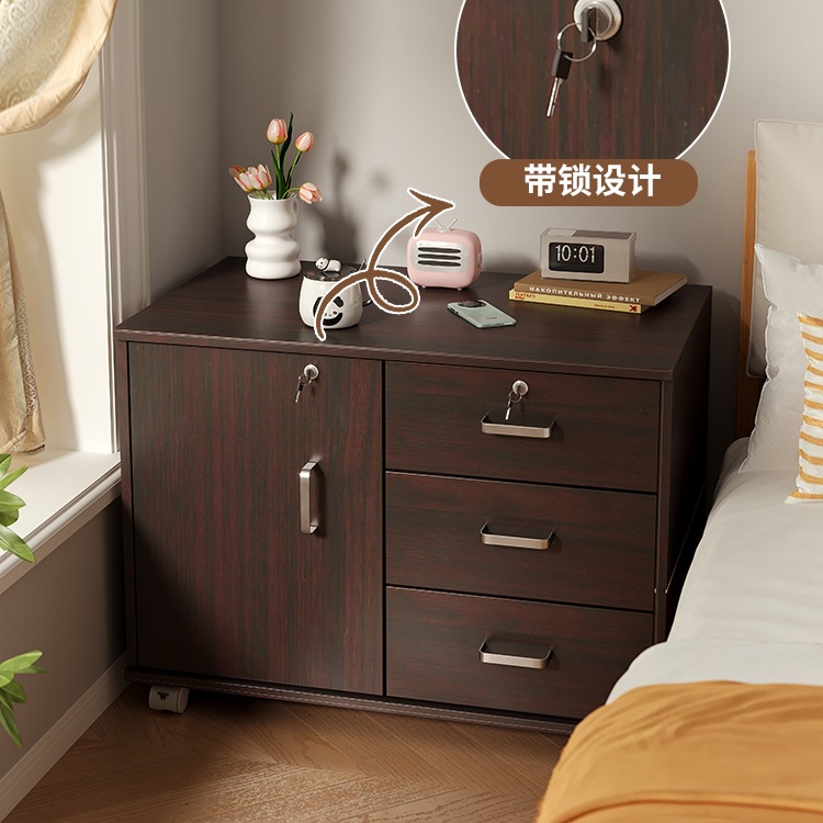 Подвижная прикроватная тумбочка с замком для дома, спальни, простой прикроватный шкаф для хранения, настенный книжный шкаф для хранения