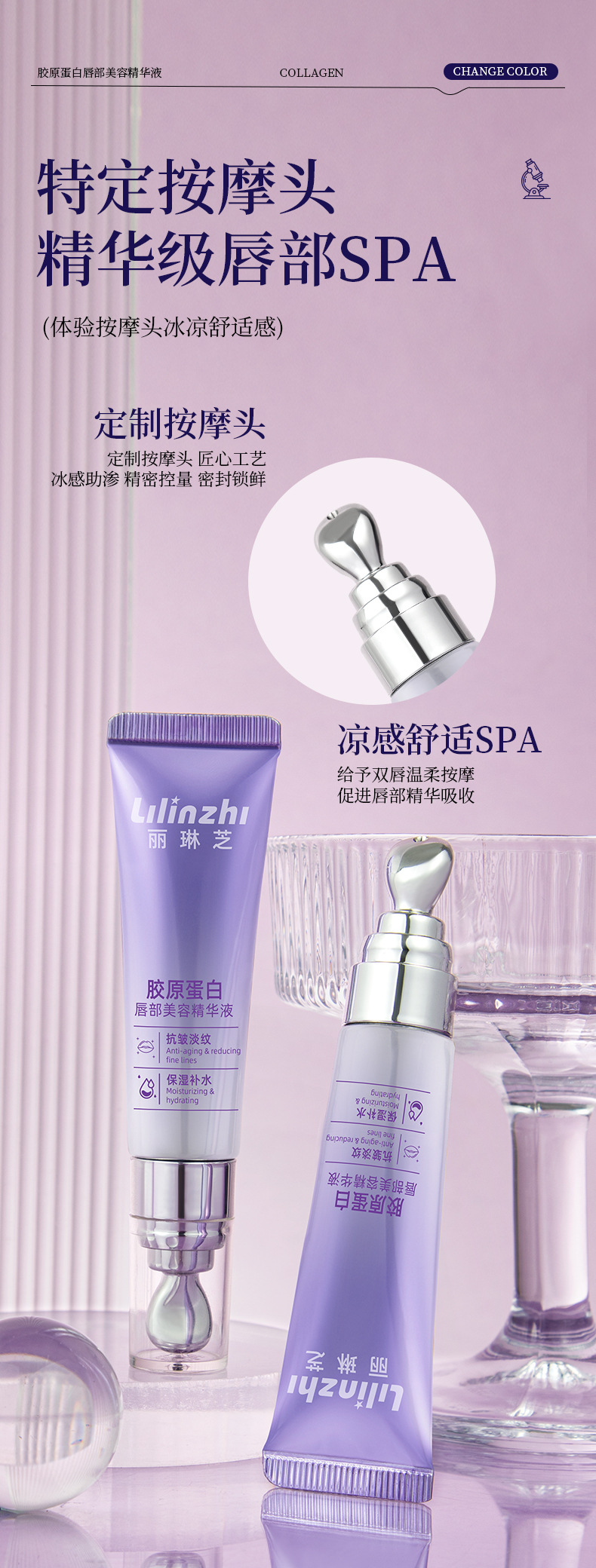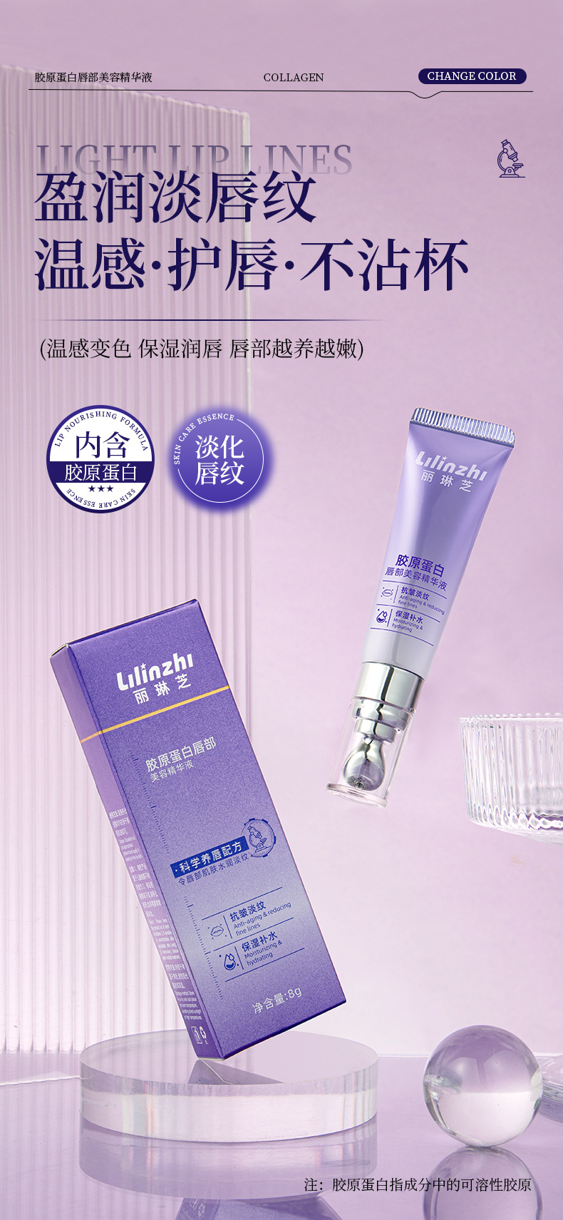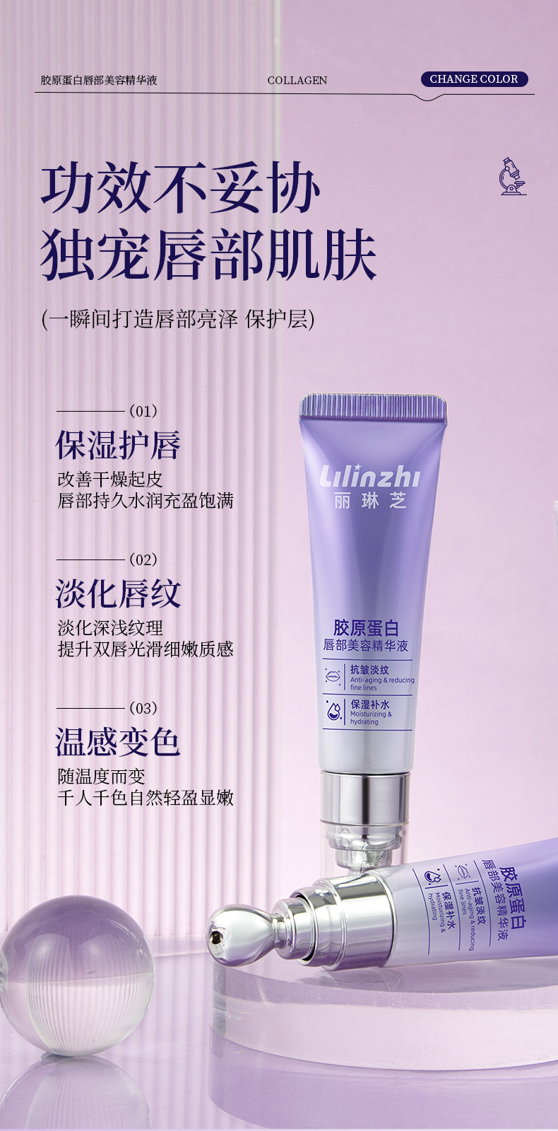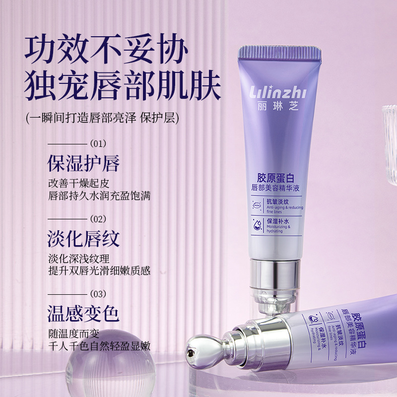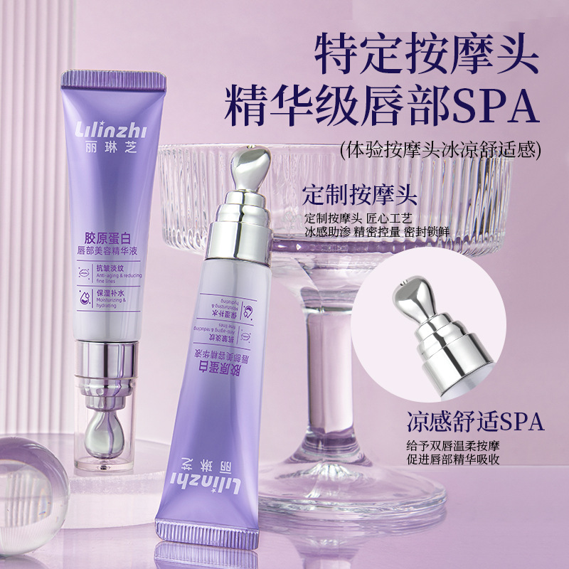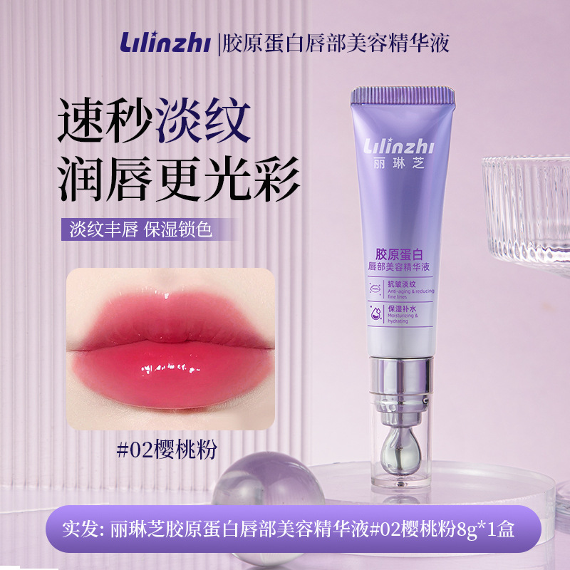 Lilinzhi Collagen Lip Beauty Essence осветляет линии губ, увлажняет и увлажняет эссенцию для губ против сухих трещин