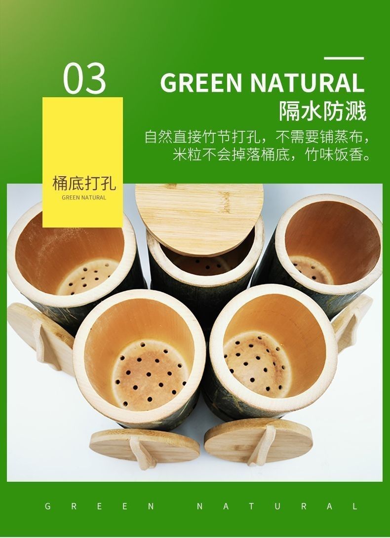 Рис на пару из бамбука, целое ведро для здорового риса на пару из бамбука, бытовое ведро для риса на пару из бамбука с крышкой, ведро для риса на пару из чистого натурального бамбука
