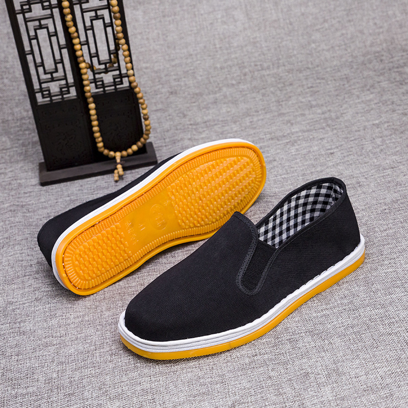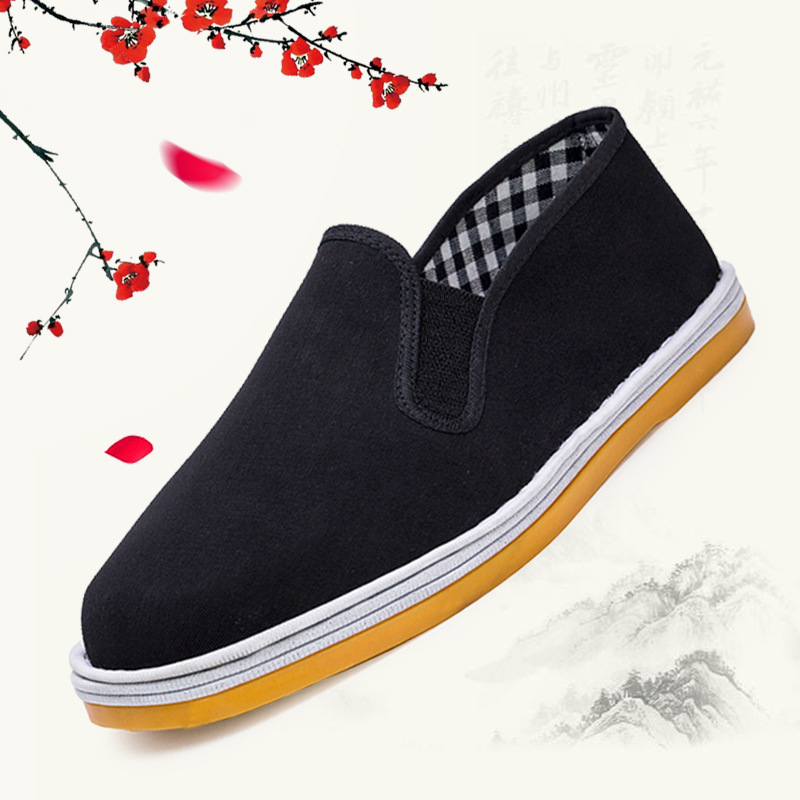 Мужские традиционные пекинские тканевые туфли на толстой подошве с подошвой из говяжьего сухожилия, черные рабочие туфли, туфли для папы, туфли для дедушки, туфли без шнуровки.