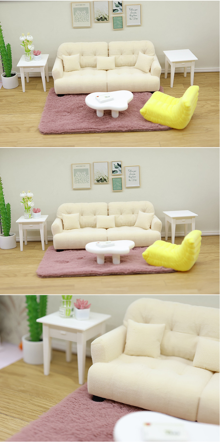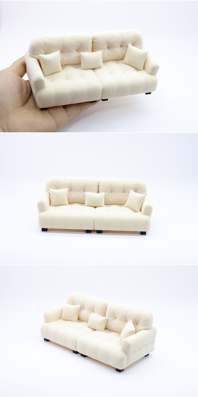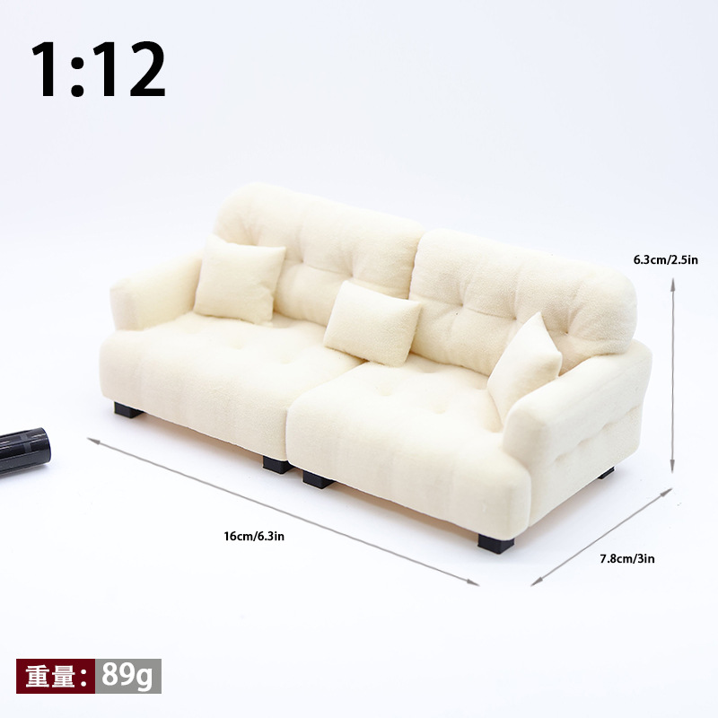 1:12 миниатюрный кукольный диван, искусственный кремовый стиль, мини-мебель, кукольный игровой домик, игрушечная модель, украшения