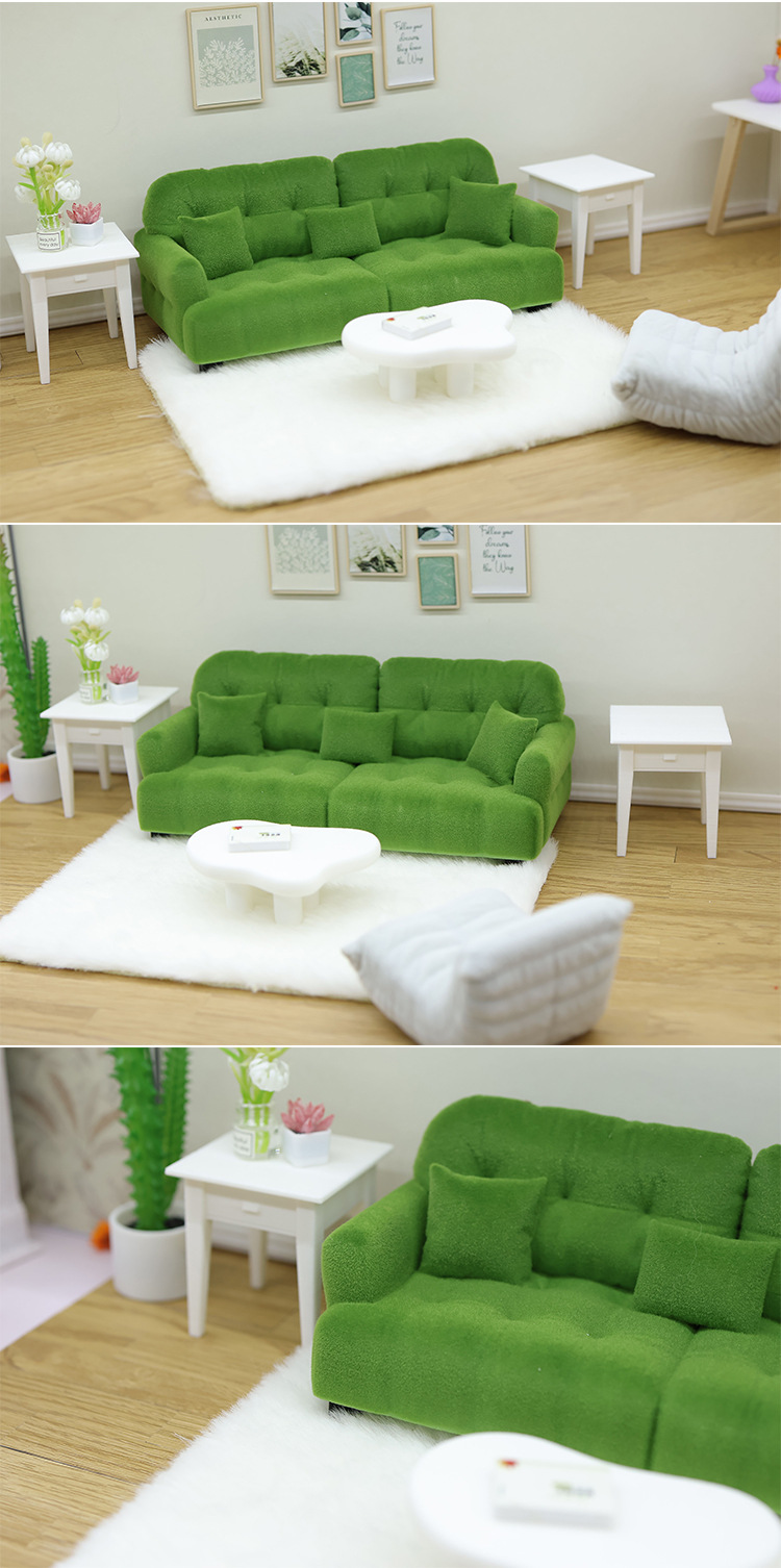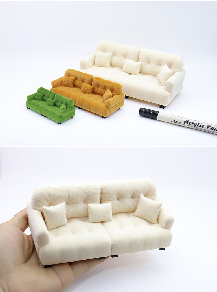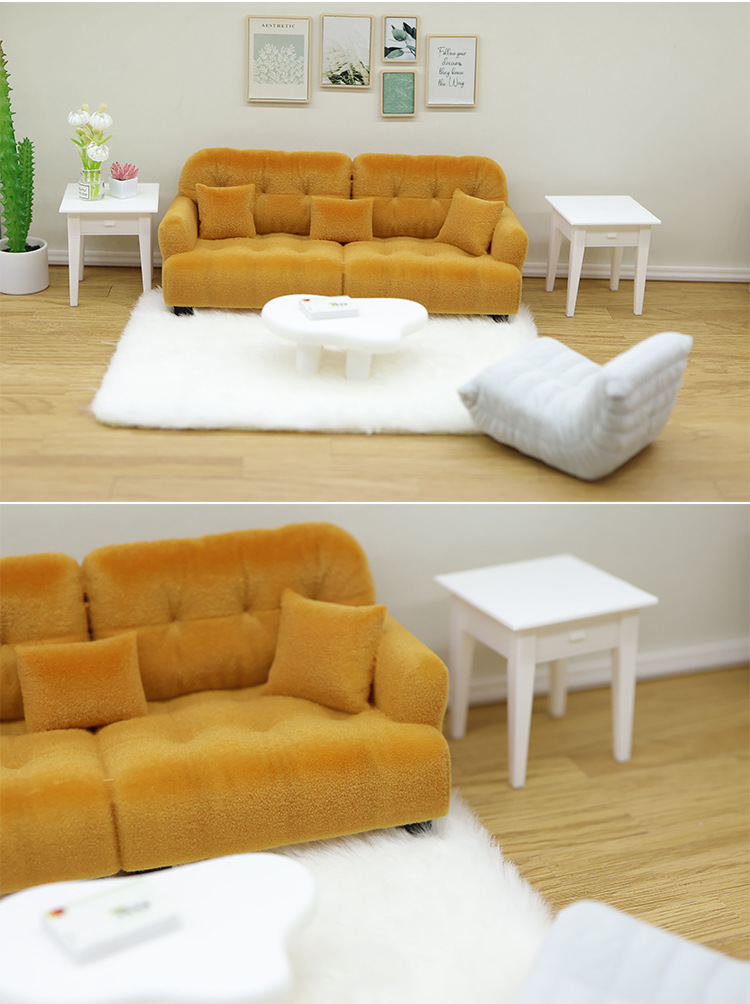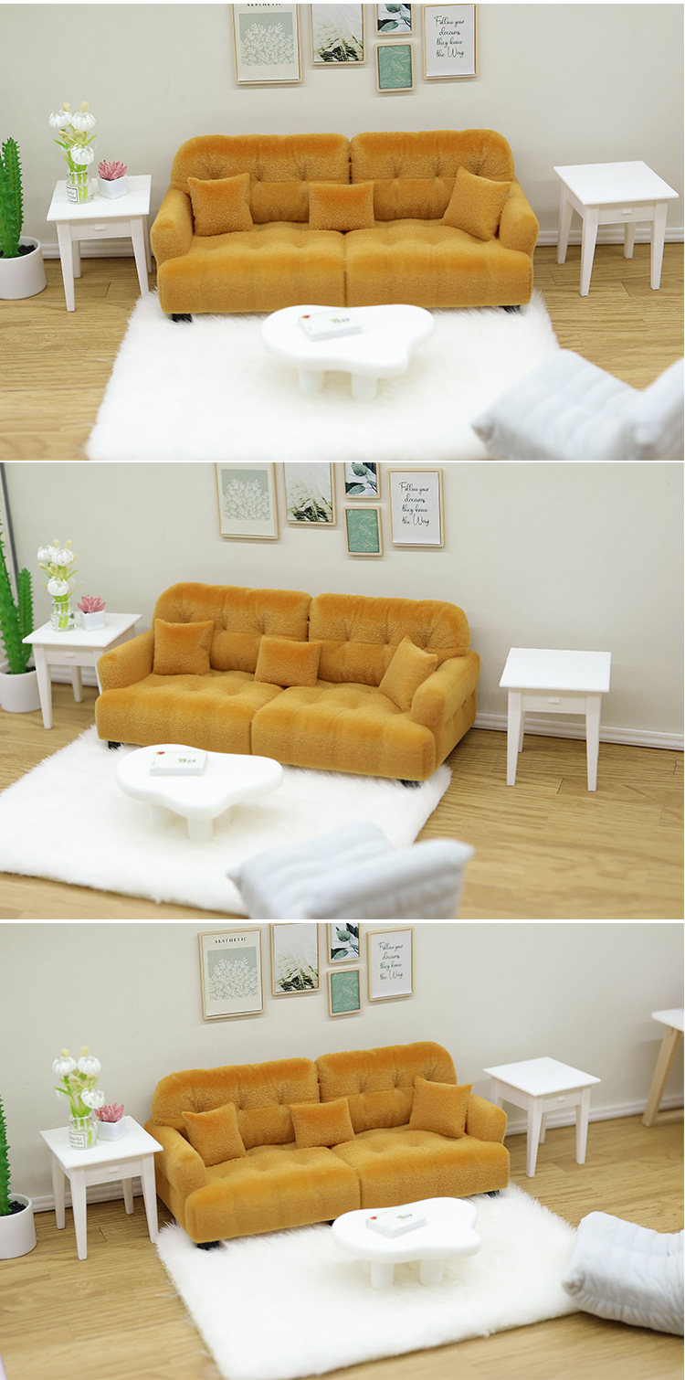 1:12 миниатюрный кукольный диван, искусственный кремовый стиль, мини-мебель, кукольный игровой домик, игрушечная модель, украшения