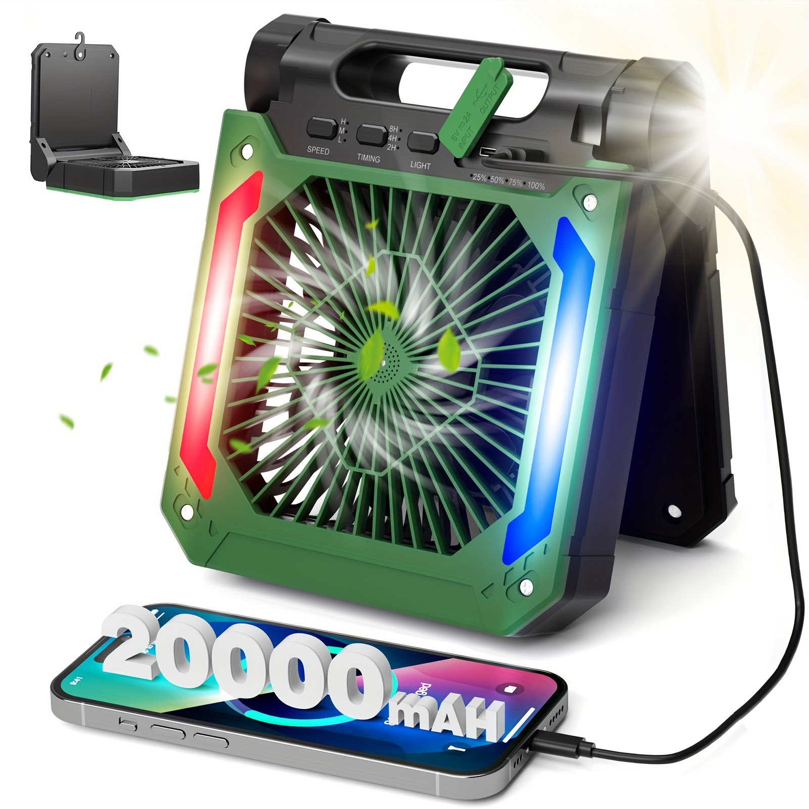 2025 новый кросс-граничный дропшиппинг портативный вентилятор с солнечной батареей 20000 мАч и LED-подсветкой