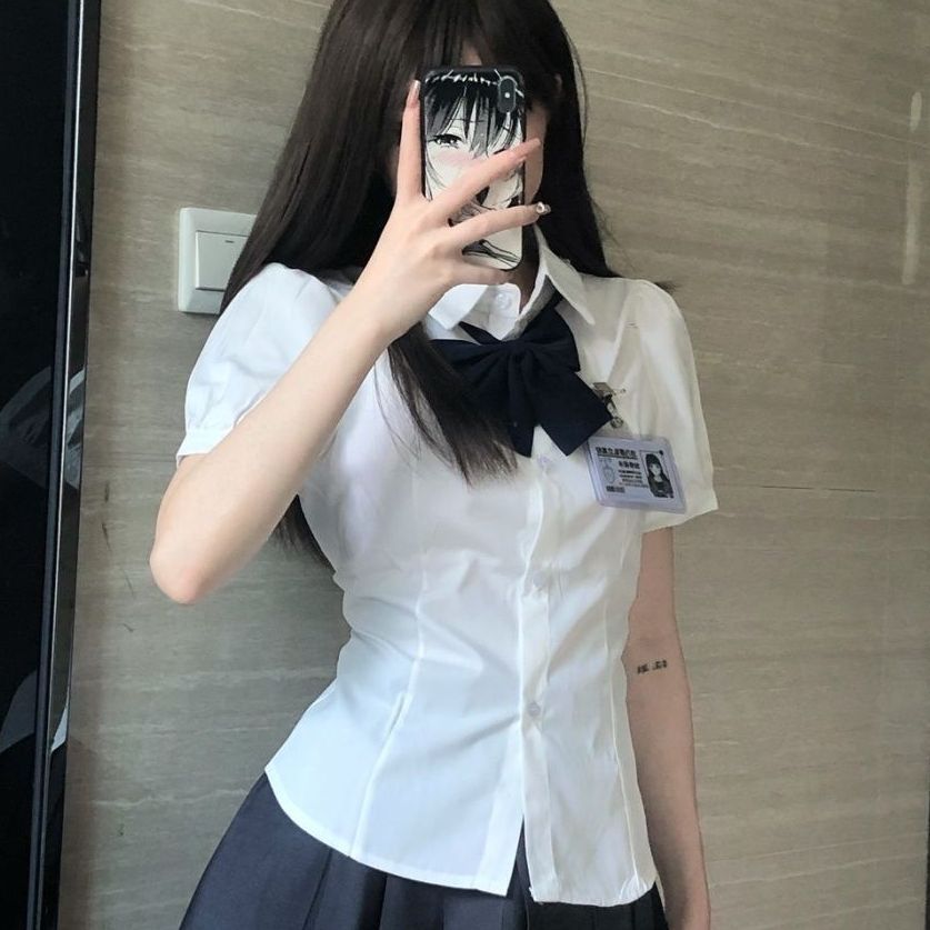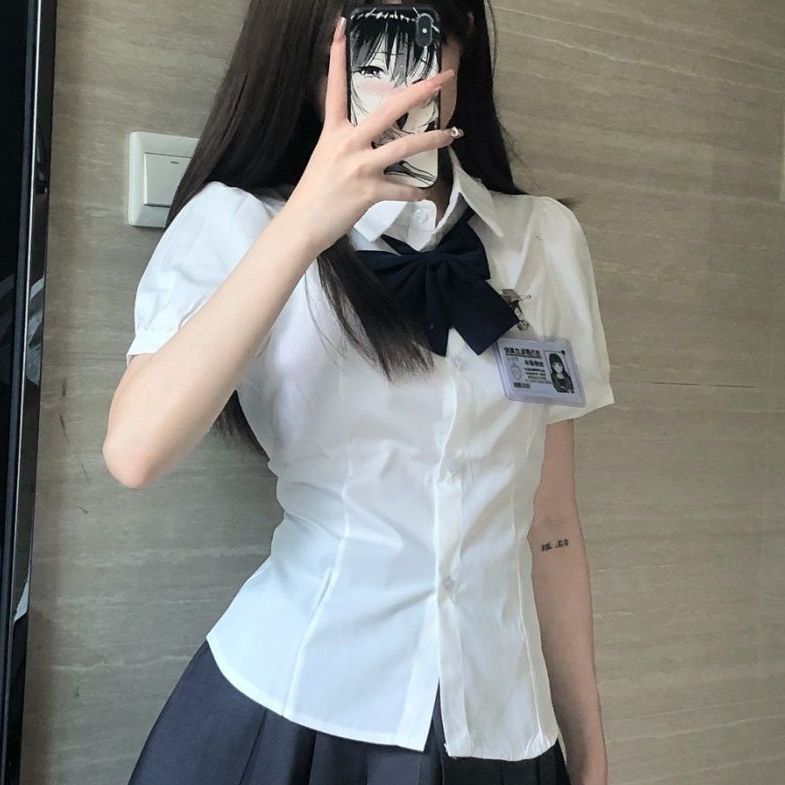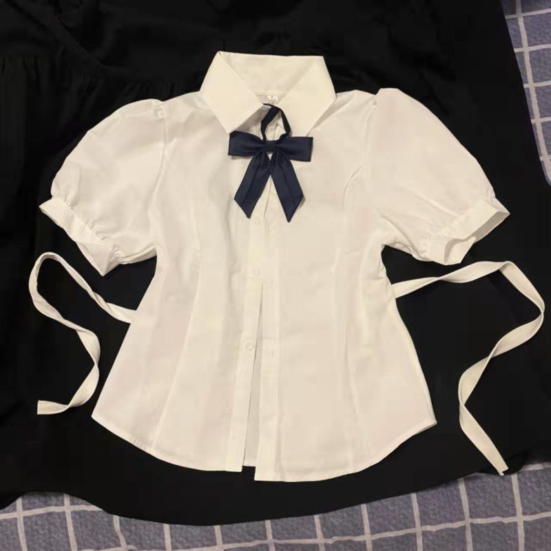 2025 новый весенне-летний стиль сексуальная короткая рубашка с поясом универсальный преппи стиль стройный JK ремешок рубашка галстук костюм кросс-бордер
