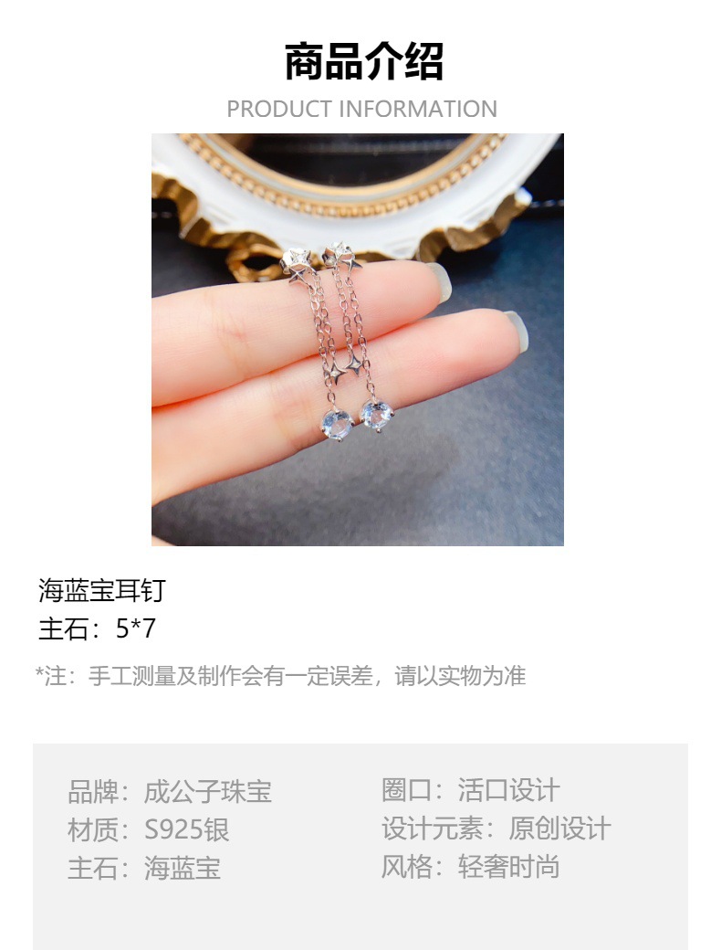 Новые серьги-гвоздики с натуральным аквамарином S925, серебро, инкрустированный основной камень 5*5 мм, универсальные модные популярные женские украшения оптом
