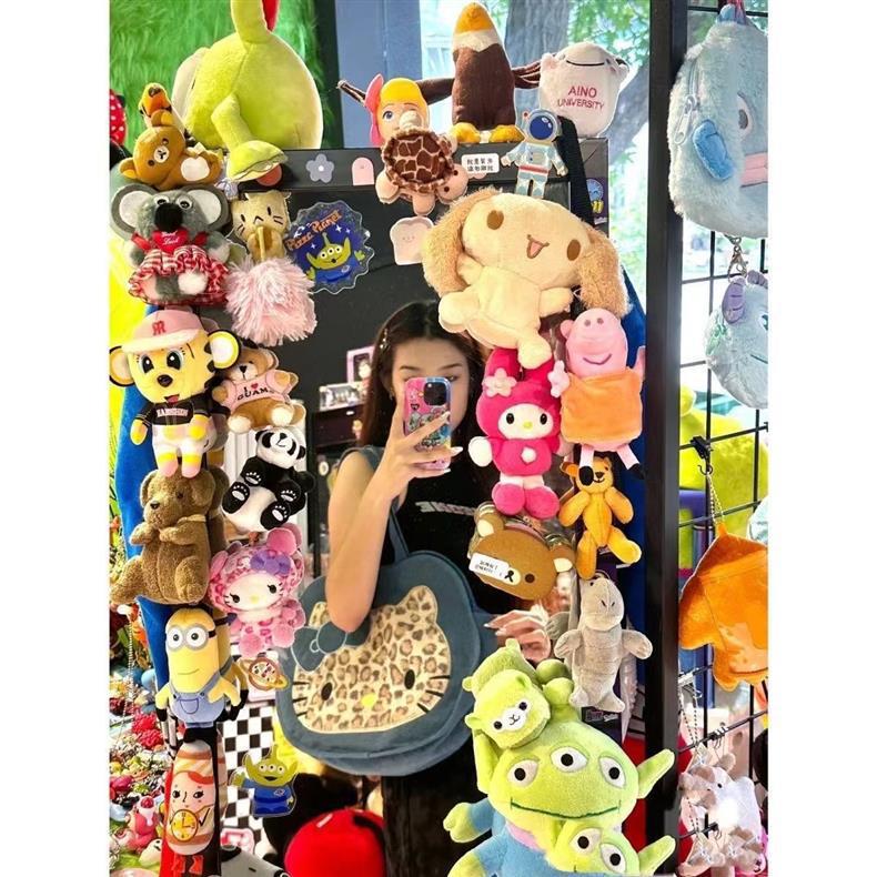 Джинсовая синяя сумка-тоут Hello Kitty с леопардовым принтом 37*32см