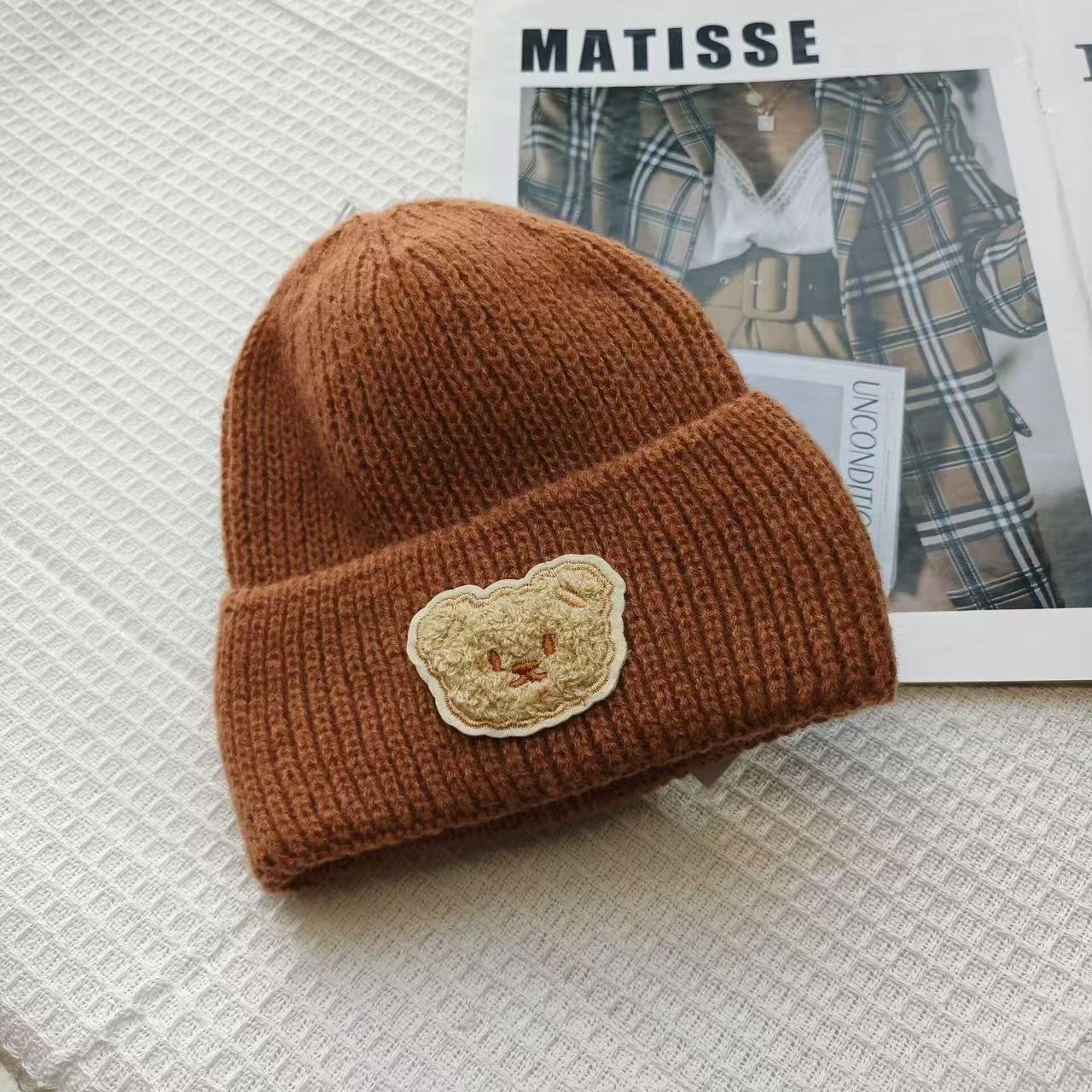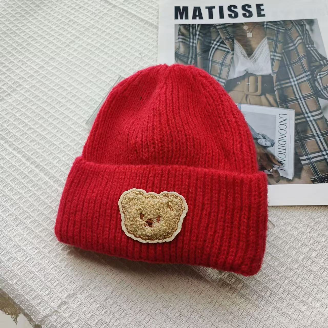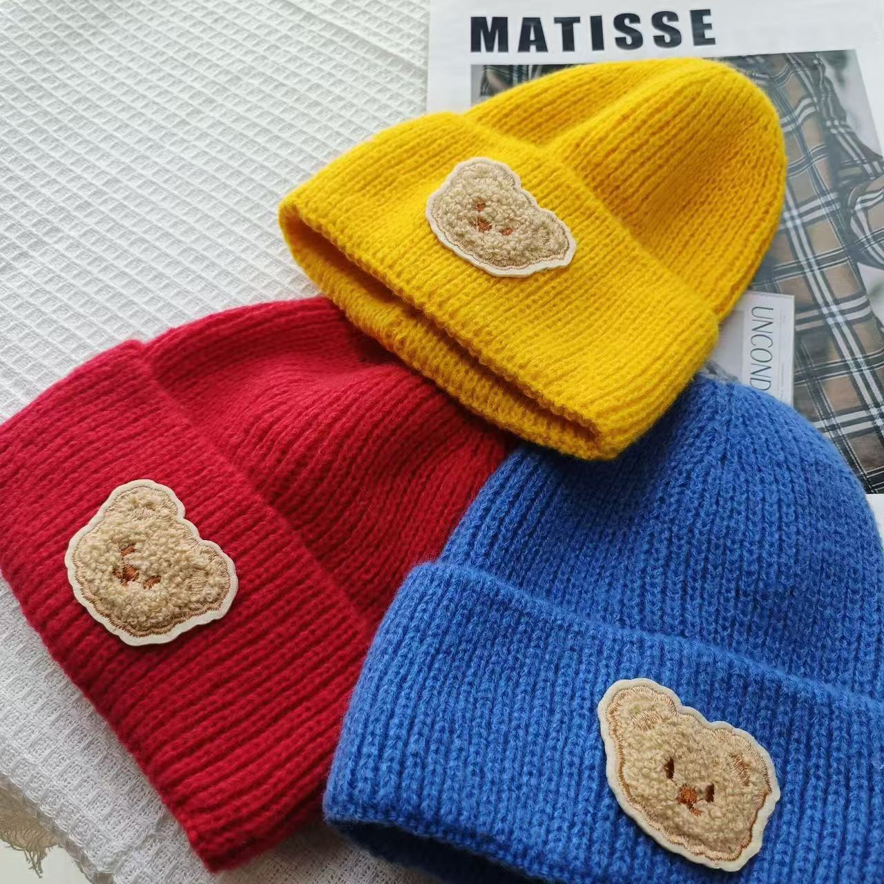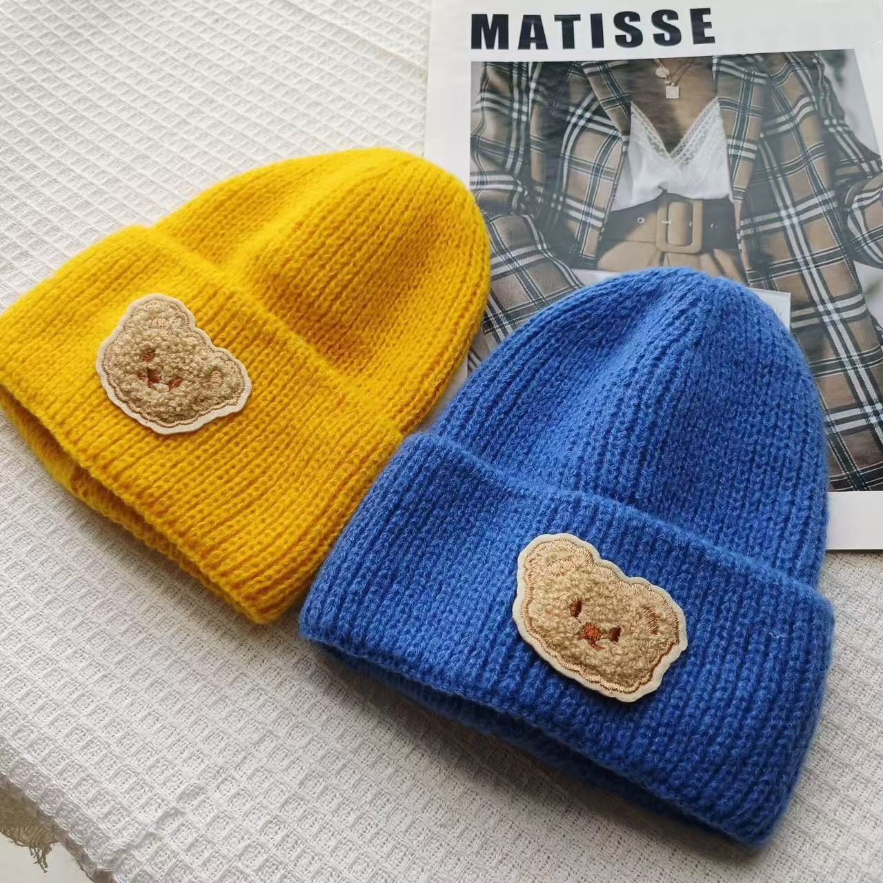 Детская милая шапка-медвежонок из чистой шерсти для женщин, новинка осени и зимы 2025 года, теплая, с защитой ушей, универсальная вязаная шапка