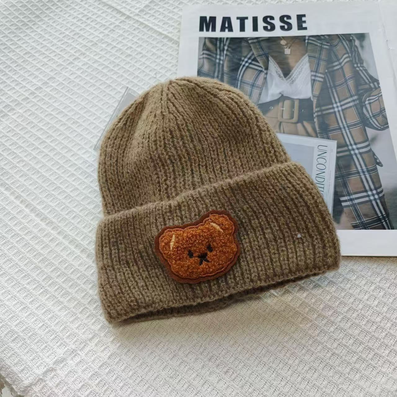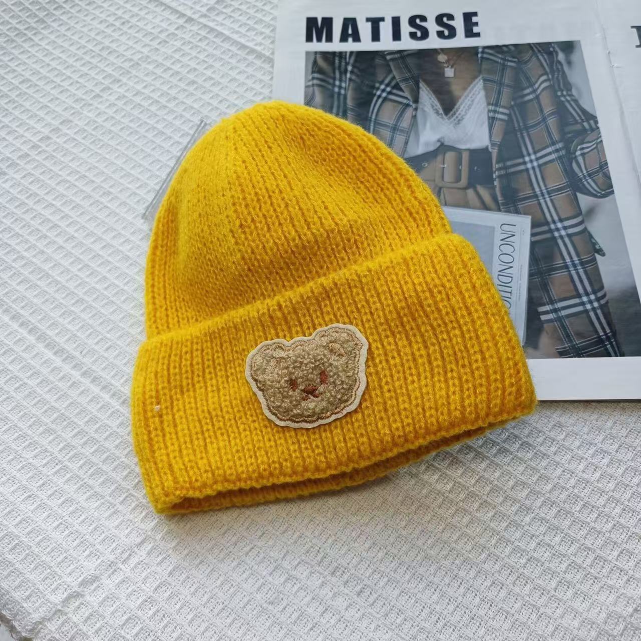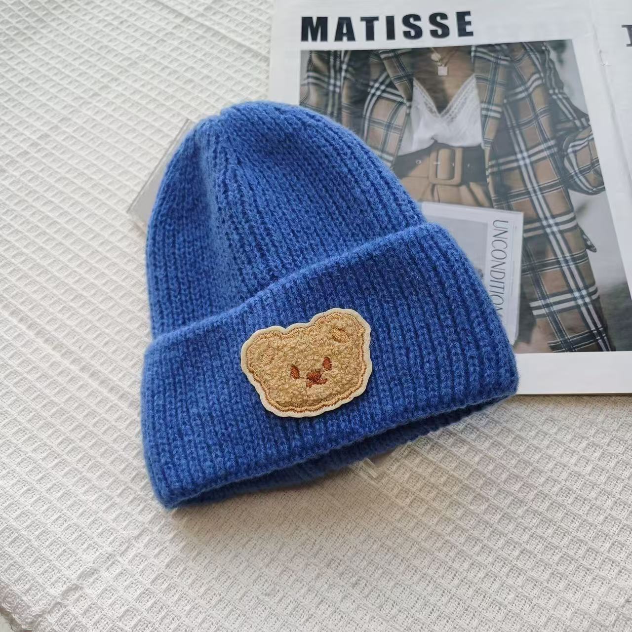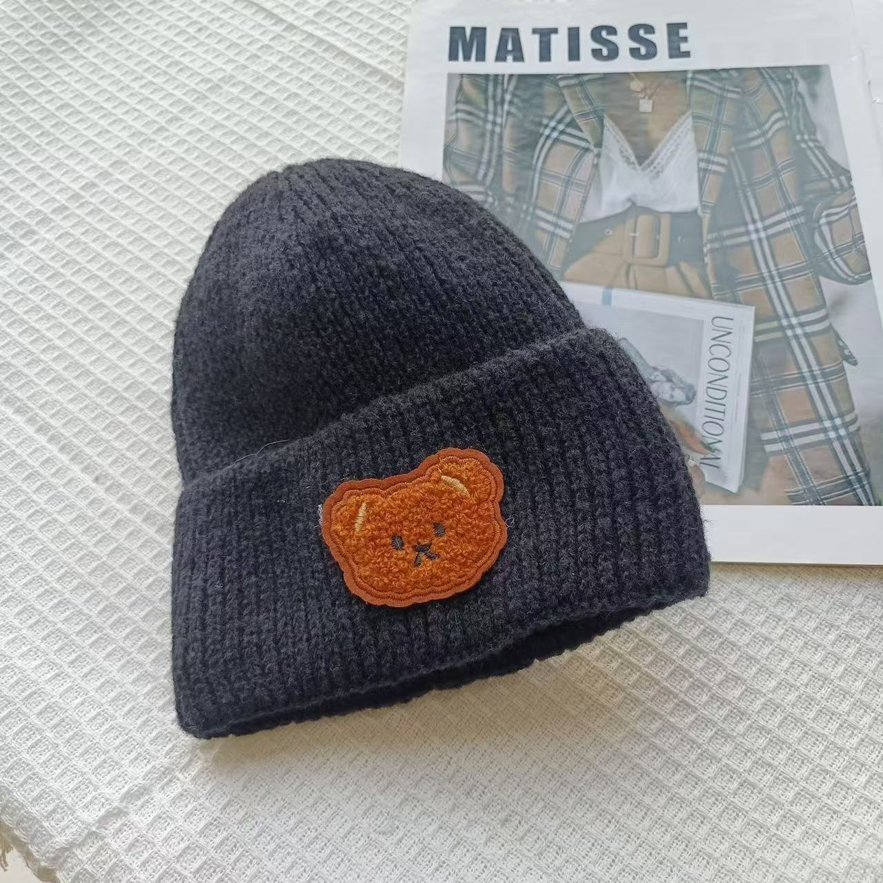 Детская милая шапка-медвежонок из чистой шерсти для женщин, новинка осени и зимы 2025 года, теплая, с защитой ушей, универсальная вязаная шапка