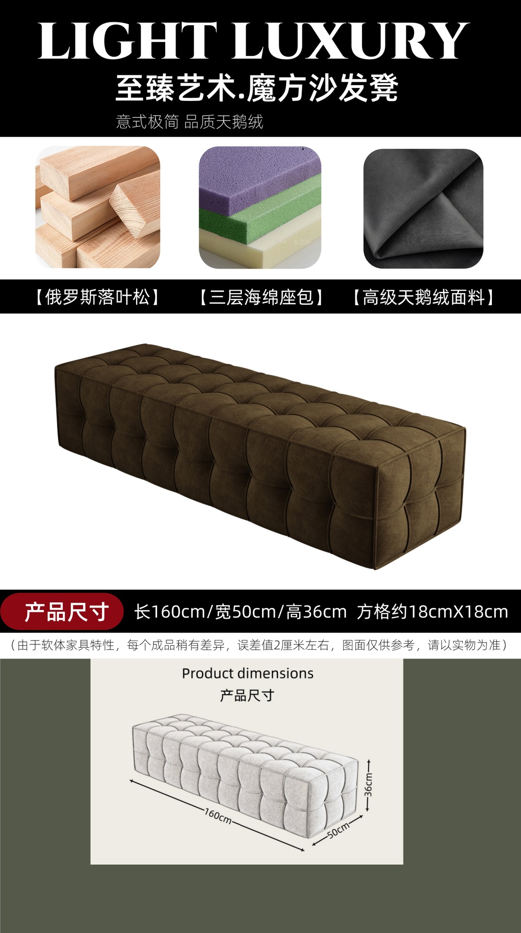 [Бархат светло-хаки] Длина 160 Ширина 50 Высота 36 [Рама из соснового дерева + высокоэластичная губка]; [Черный бархат] Длина 160 Ширина 50 Высота 36 [Рама из соснового дерева + высокоэластичная губка]; [Светло-серый бархат] Длина 160 Ширина 50 Высота 36 [Сосновая рама + высокоэластичная губка]; [Темно-серый бархат] Длина 160 Ширина 50 Высота 36 [Сосновая рама + высокоэластичная губка]; [Коричневый бархат] Длина 160 Ширина 50 Высота 36 [Рама из соснового дерева + высокоэластичная губка]; [Оливково-зеленый бархат] Длина 160 Ширина 50 Высота 36 [Рама из соснового дерева + высокоэластичная губка]; [Коричневый бархат] Длина 160 Ширина 50 Высота 36 [Рама из соснового дерева + высокоэластичная губка]; Примечания к цвету [Бархат] Длина 60 Ширина 50 Высота 36 [Каркас из соснового дерева + высокоэластичная губка]; Примечания к цвету [Бархат] Длина 80 Ширина 50 Высота 36 [Каркас из соснового дерева + губка с высоким отскоком]; Примечания к цвету [Бархат] Длина 90 Ширина 50 Высота 36 [Каркас из соснового дерева + губка с высоким отскоком]; Примечания к цвету [Бархат] Длина 100 Ширина 50 Высота 36 [Каркас из соснового дерева + губка с высоким отскоком]; Примечания к цвету [Бархат] Длина 110 Ширина 50 Высота 36 [Каркас из соснового дерева + губка с высоким отскоком]; Примечания к цвету [Бархат] Длина 120 Ширина 50 Высота 36 [Каркас из соснового дерева + губка с высоким отскоком]; Примечания к цвету [Бархат] Длина 140 Ширина 50 Высота 36 [Каркас из соснового дерева + губка с высоким отскоком]; Примечания к цвету [Бархат] Длина 150 Ширина 50 Высота 36 [Каркас из соснового дерева + губка с высоким отскоком]; Примечания к цвету [Бархат] Длина 180 Ширина 50 Высота 36 [Каркас из соснового дерева + губка с высоким отскоком]; Примечания к цвету [Бархат] Длина 200 Ширина 50 Высота 36 [Каркас из соснового дерева + высокоэластичная губка]; По индивидуальному заказу [Для других размеров/других цветов/других тканей, пожалуйста, свяжитесь со службой поддержки клиентов]