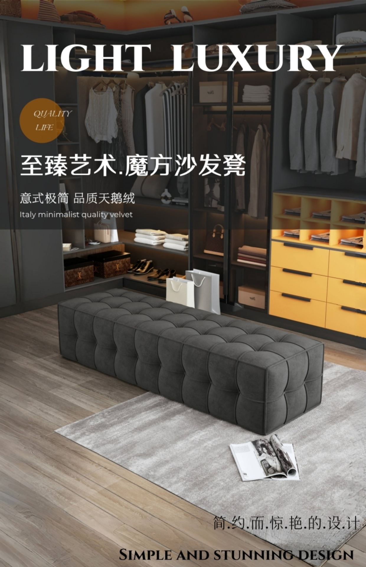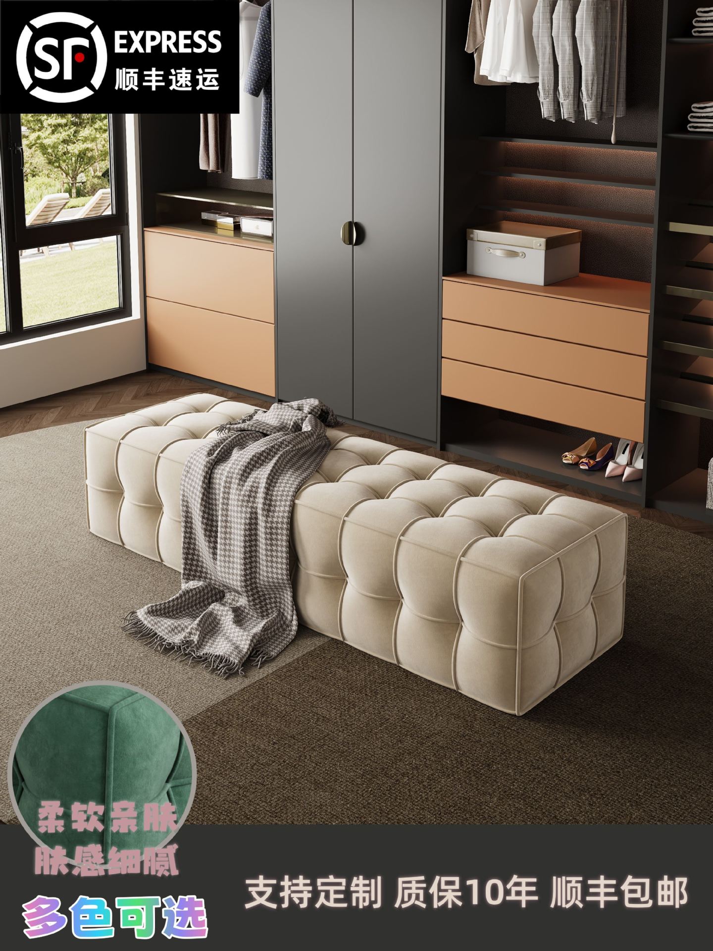 Итальянский легкий роскошный бархатный диван-табурет для спальни, табурет для кровати, гардеробная, островной табурет, подставка для ног для гостиной, магазин одежды, табурет для смены обуви