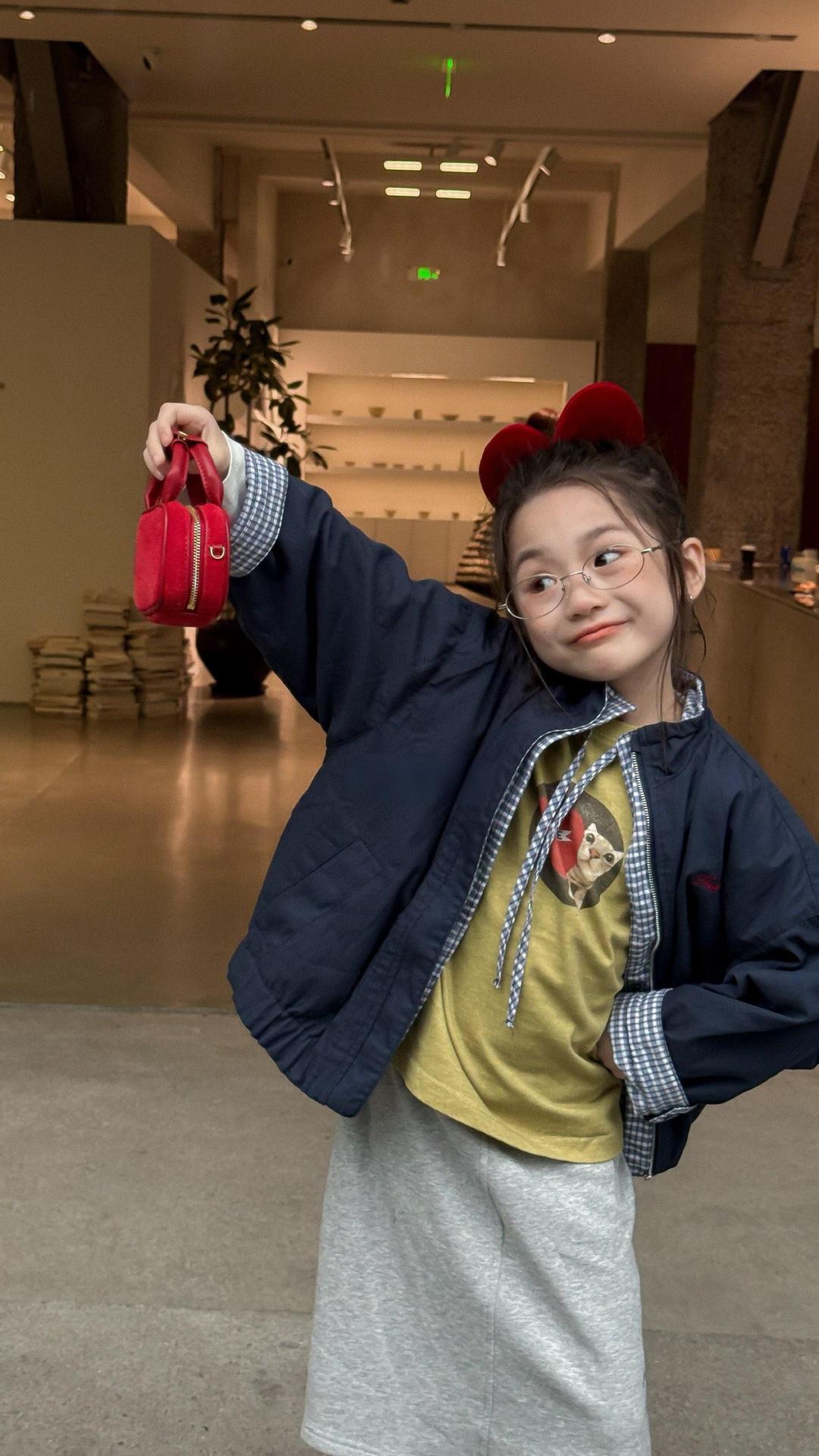 Двусторонняя куртка в клетку; Поддельная футболка с изображением кошки из двух частей; серая юбка