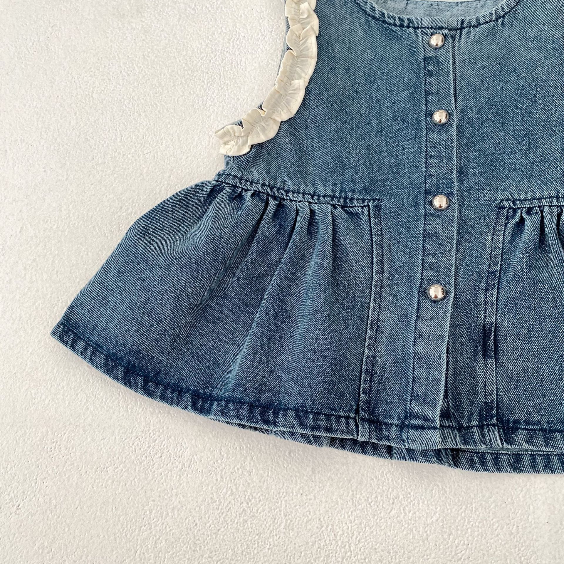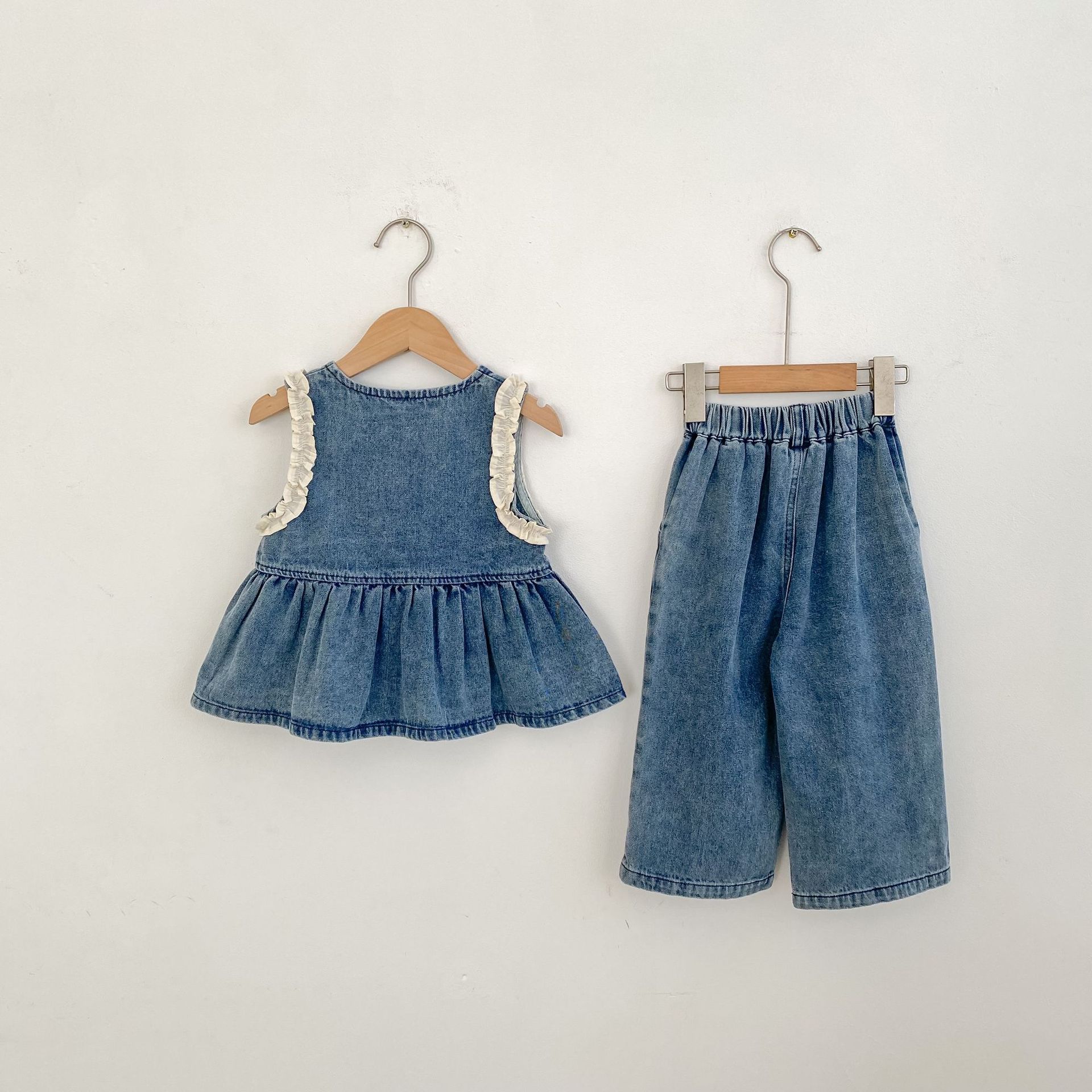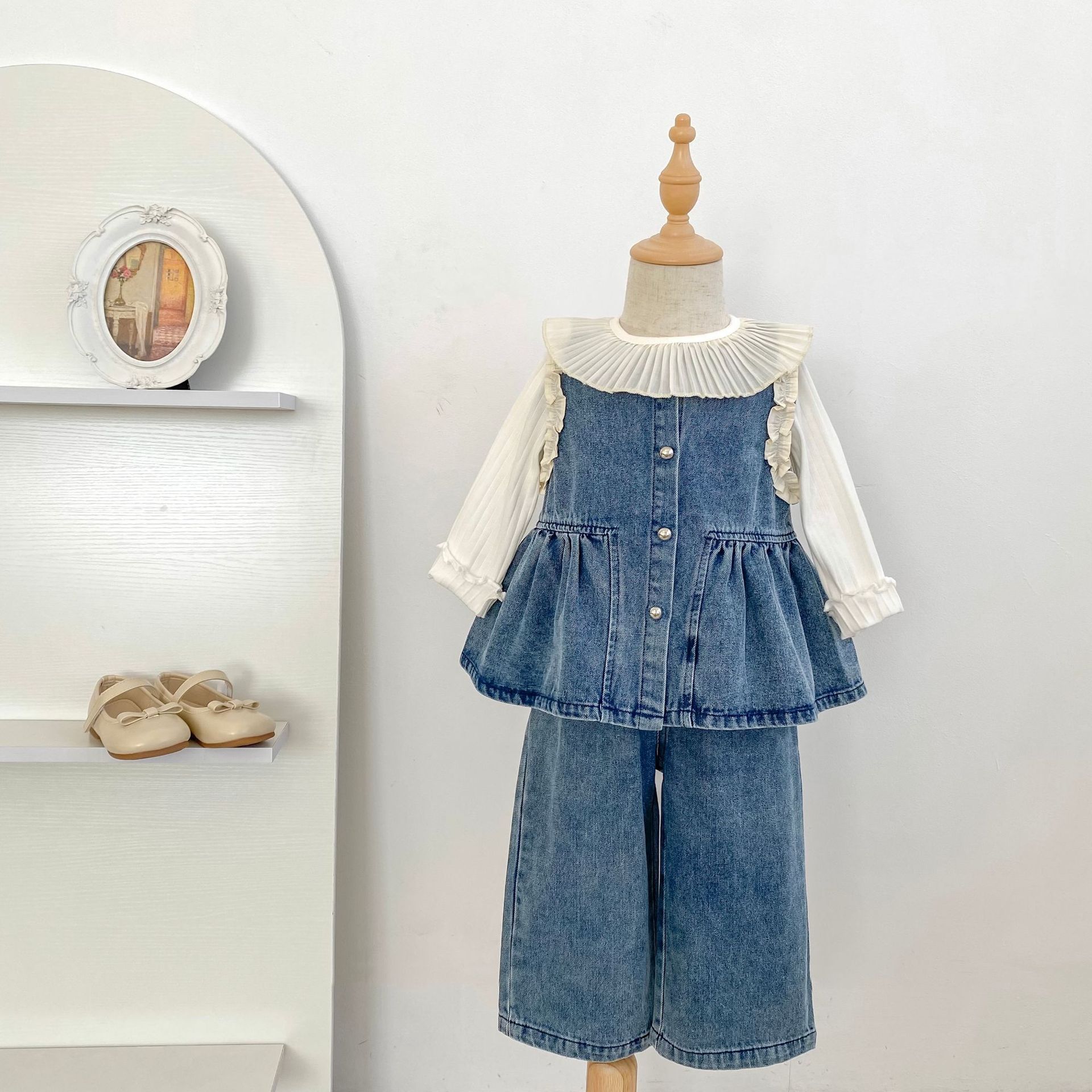 Детский костюм новый осенний корейский стиль модный жилет с длинным рукавом и юбка-джинсовка повседневные брюки комплект из двух предметов для девочек
