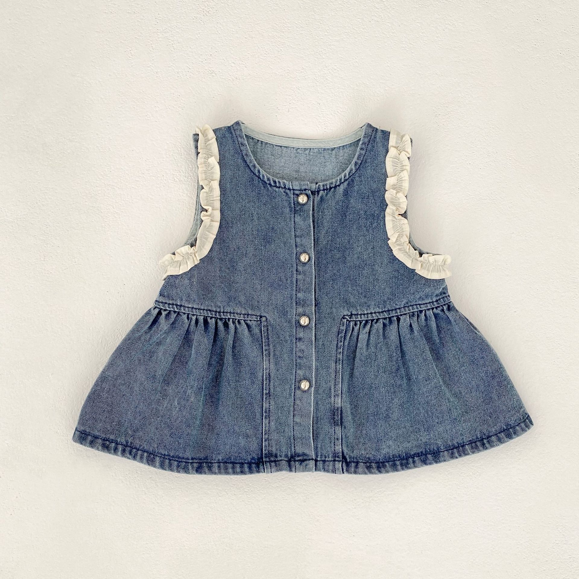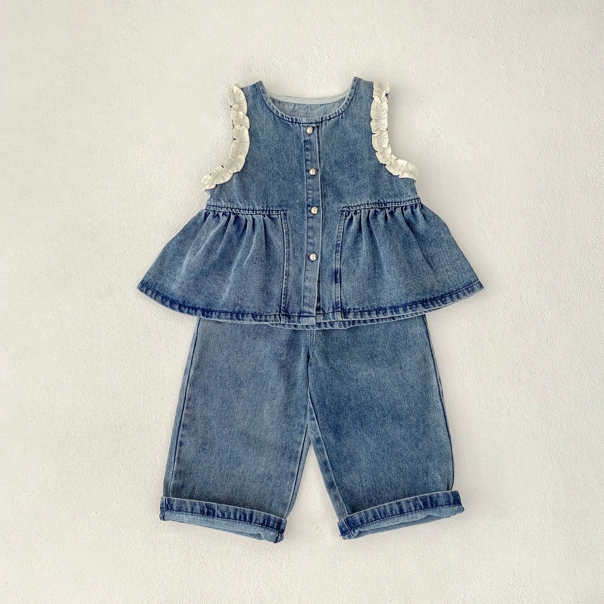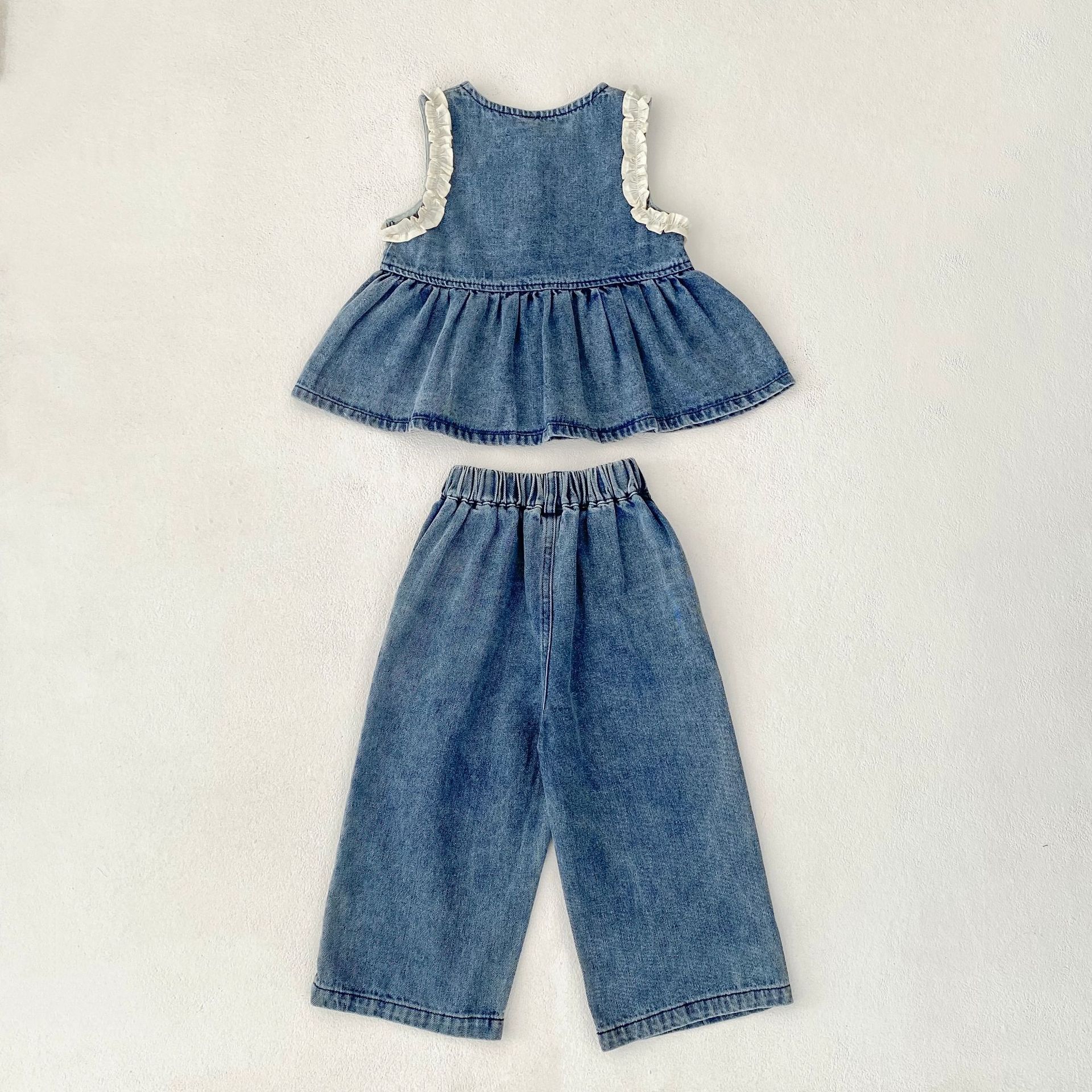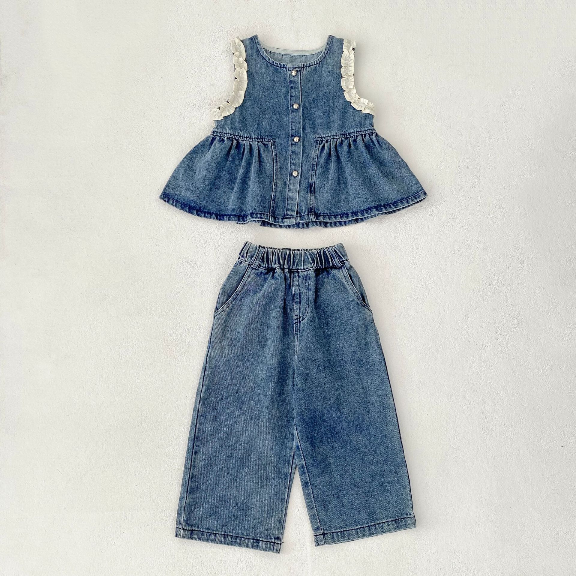 Детский костюм новый осенний корейский стиль модный жилет с длинным рукавом и юбка-джинсовка повседневные брюки комплект из двух предметов для девочек