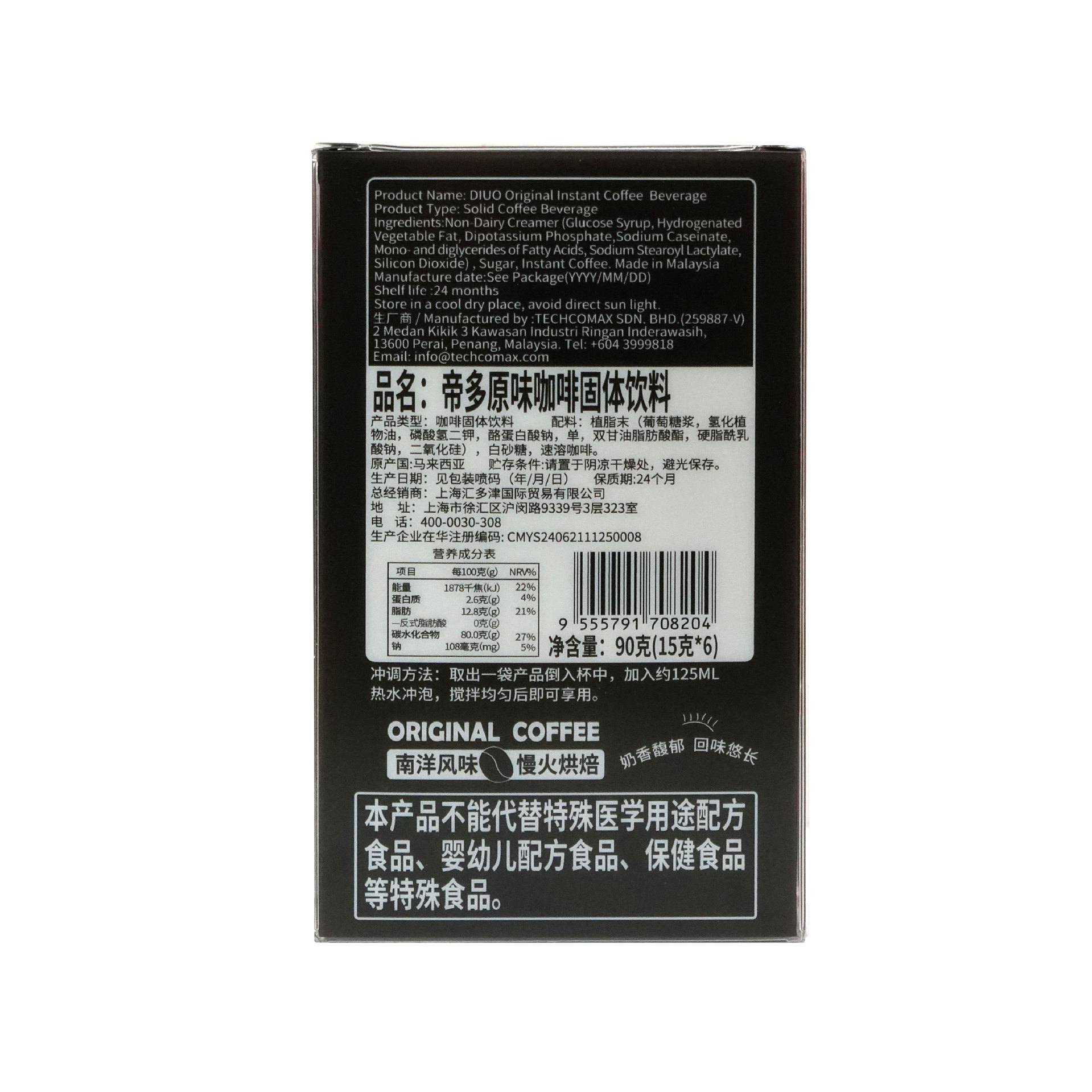 Малайзийский кофе Dido, твердый напиток, 90 г, импортный кофе, портативный готовый к употреблению, индивидуально упакованный заварочный порошок