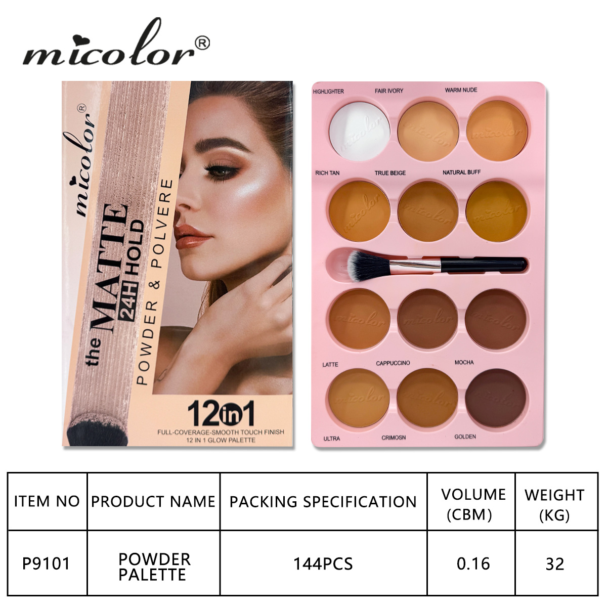 Внешняя торговля Двенадцатицветная контурная палитра Micolor с кистью для пудры для маскировки и осветления тона кожи, кросс-бордерная палитра красоты, горячий стиль