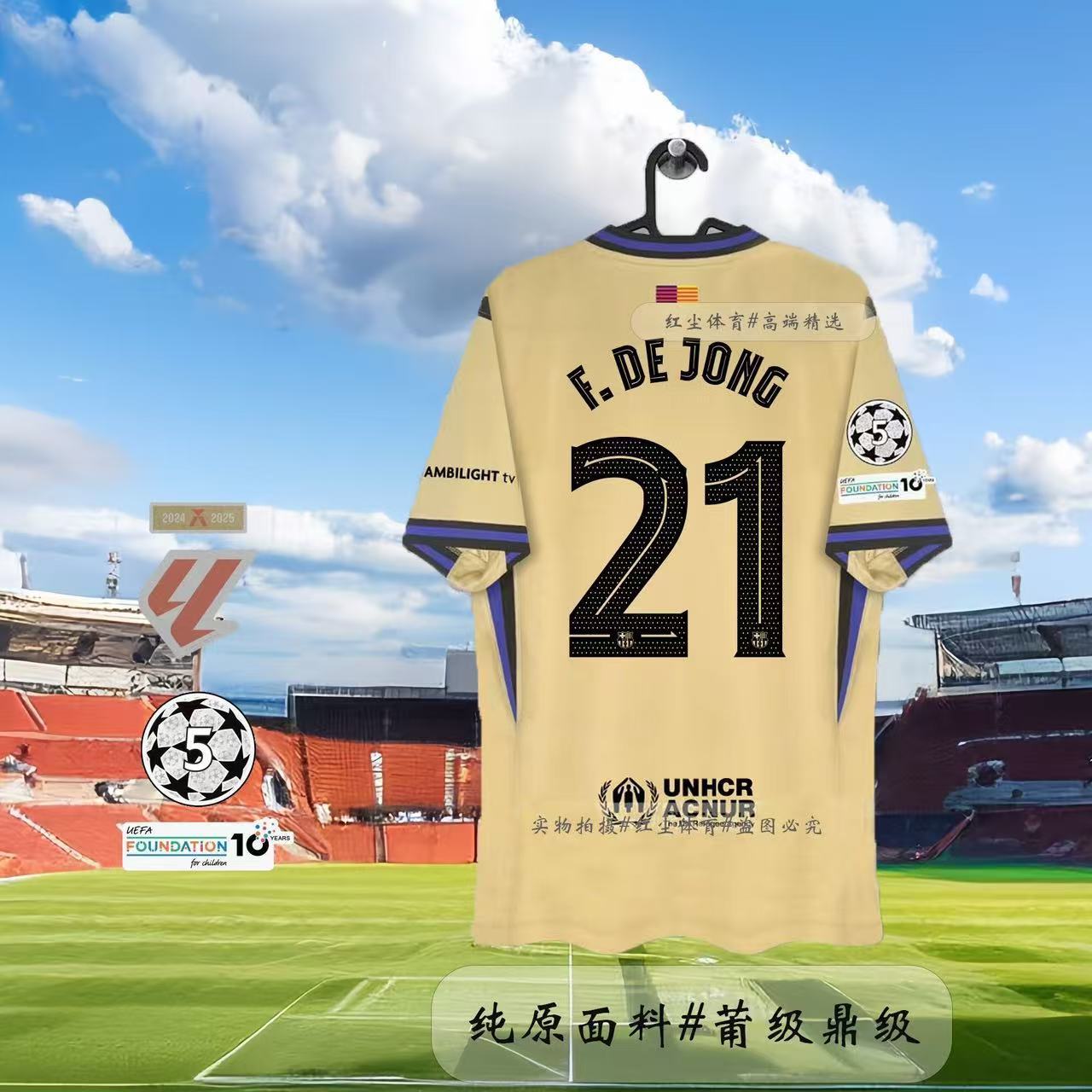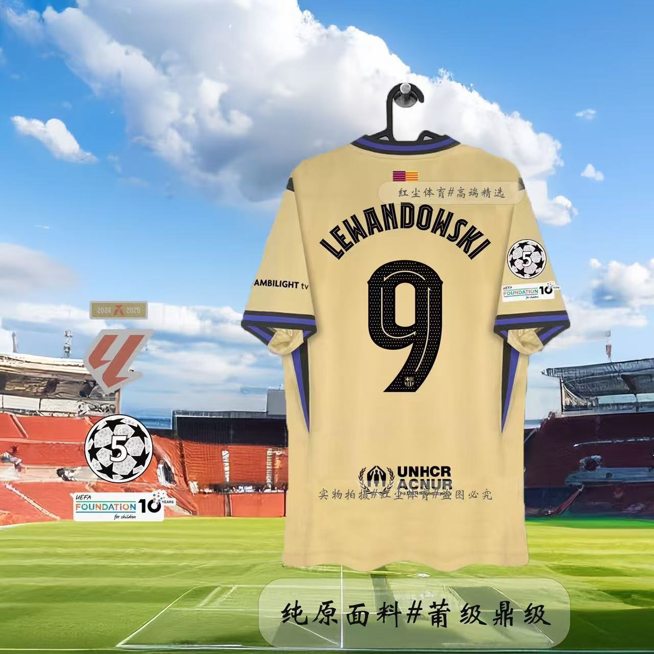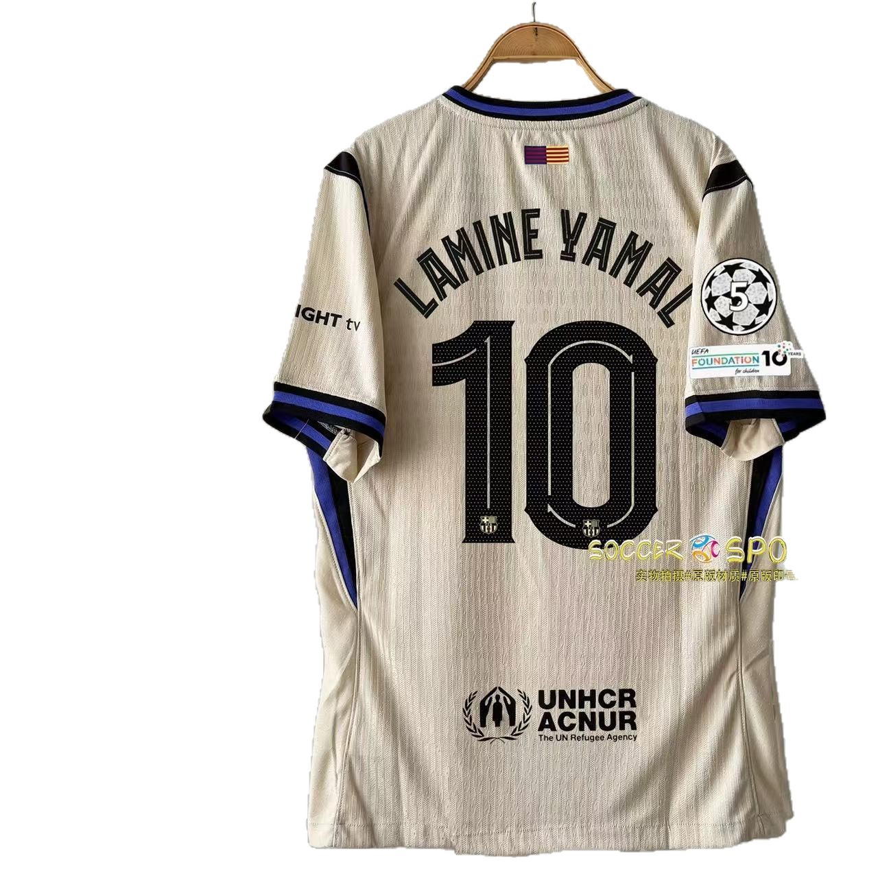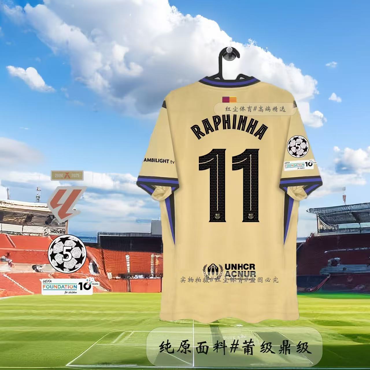 Футбольная форма Барселоны 25-26, домашняя и гостевая, номера 10 Ямал, 11 Рафина, 14 Рашфорд.