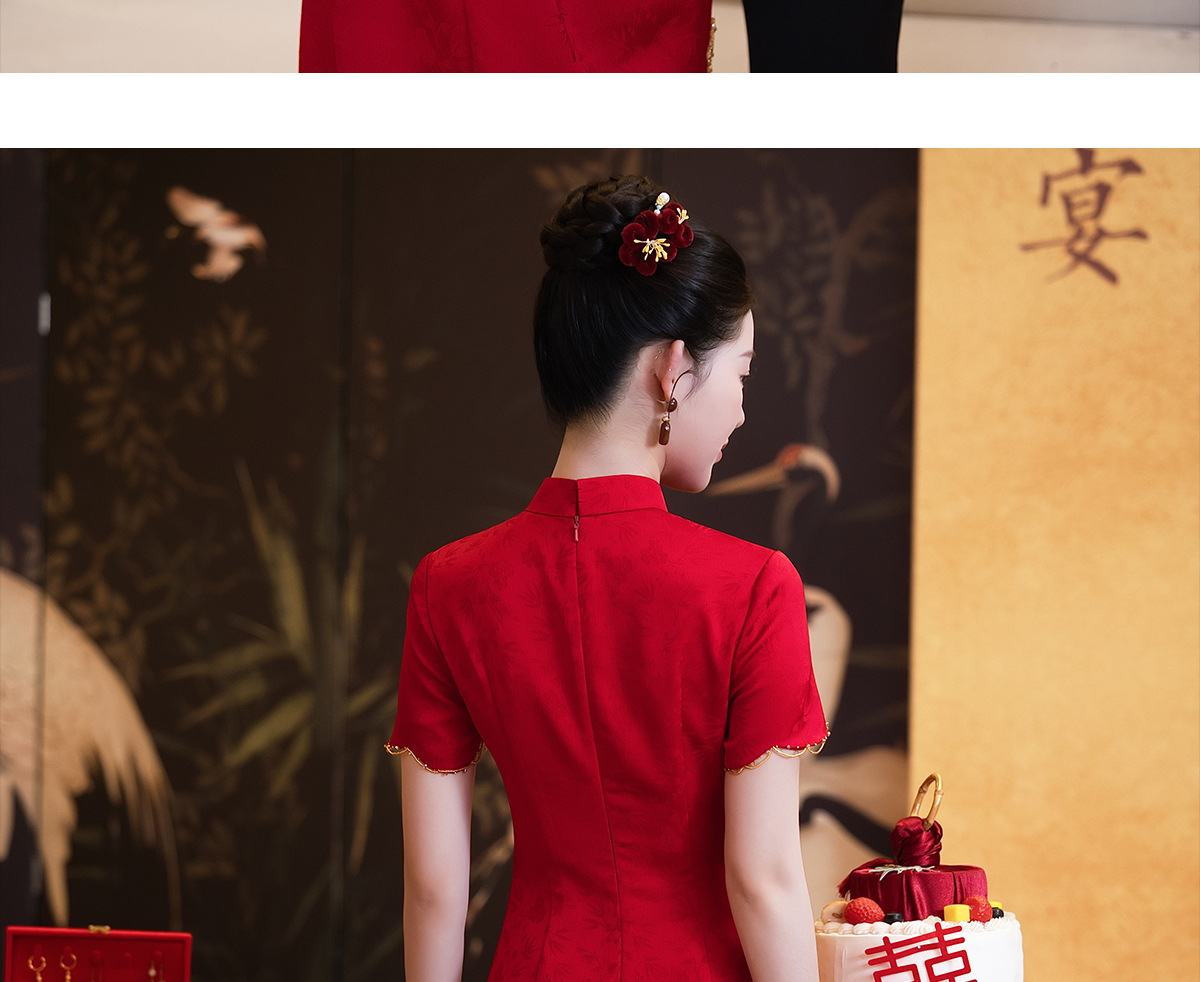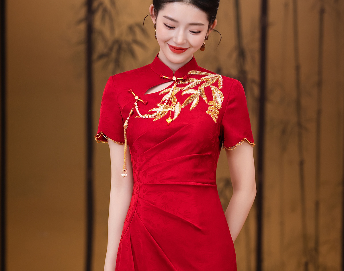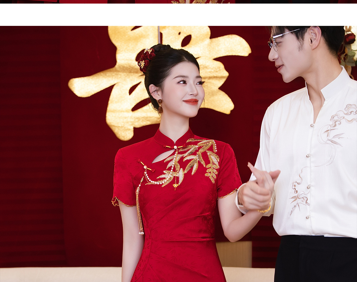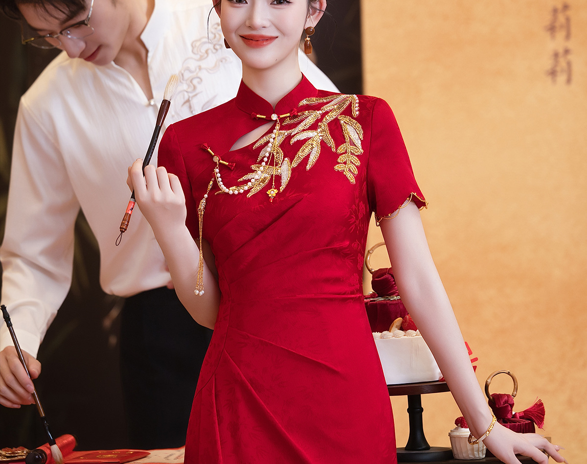Красное платье-чонсам для невест маленького роста, новинка 2025 года, свадебное платье в китайском стиле
