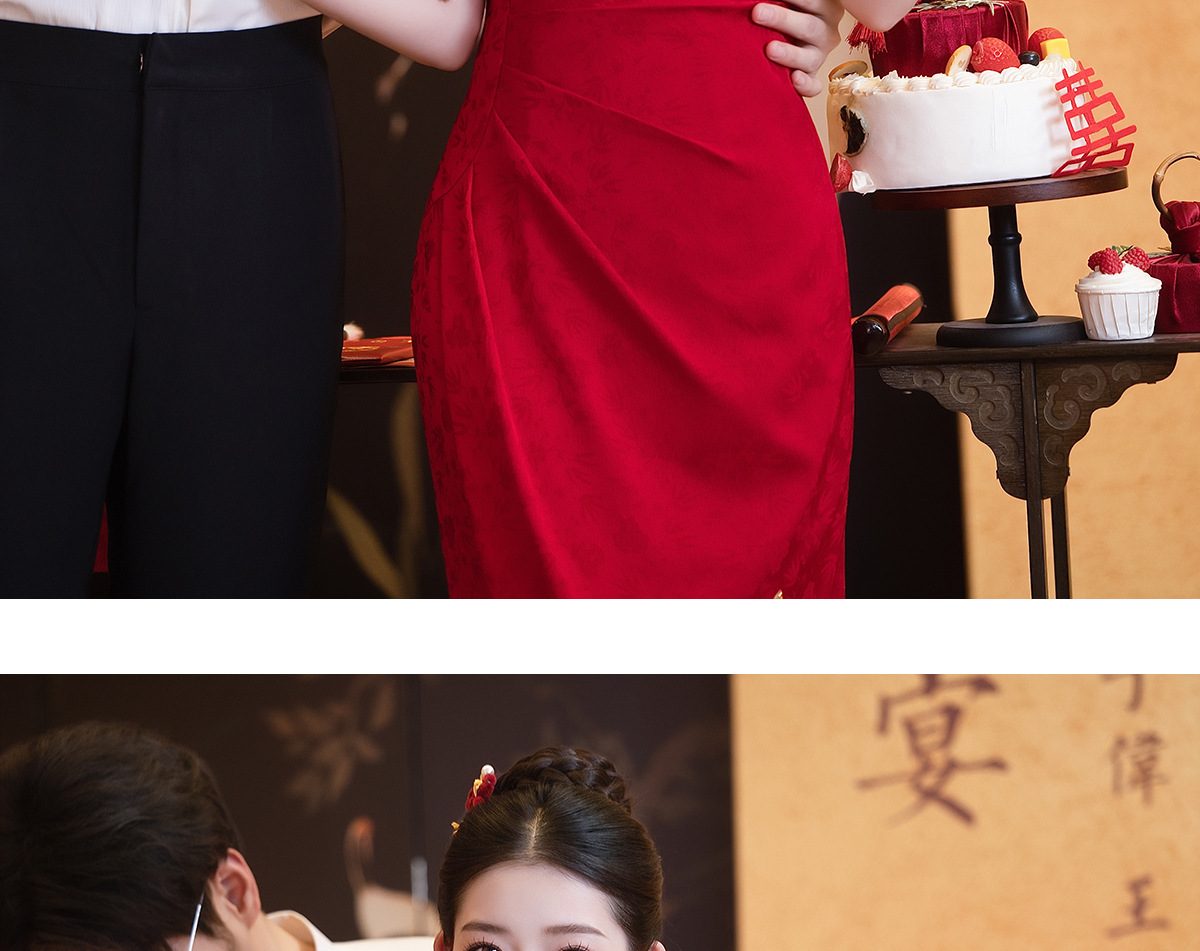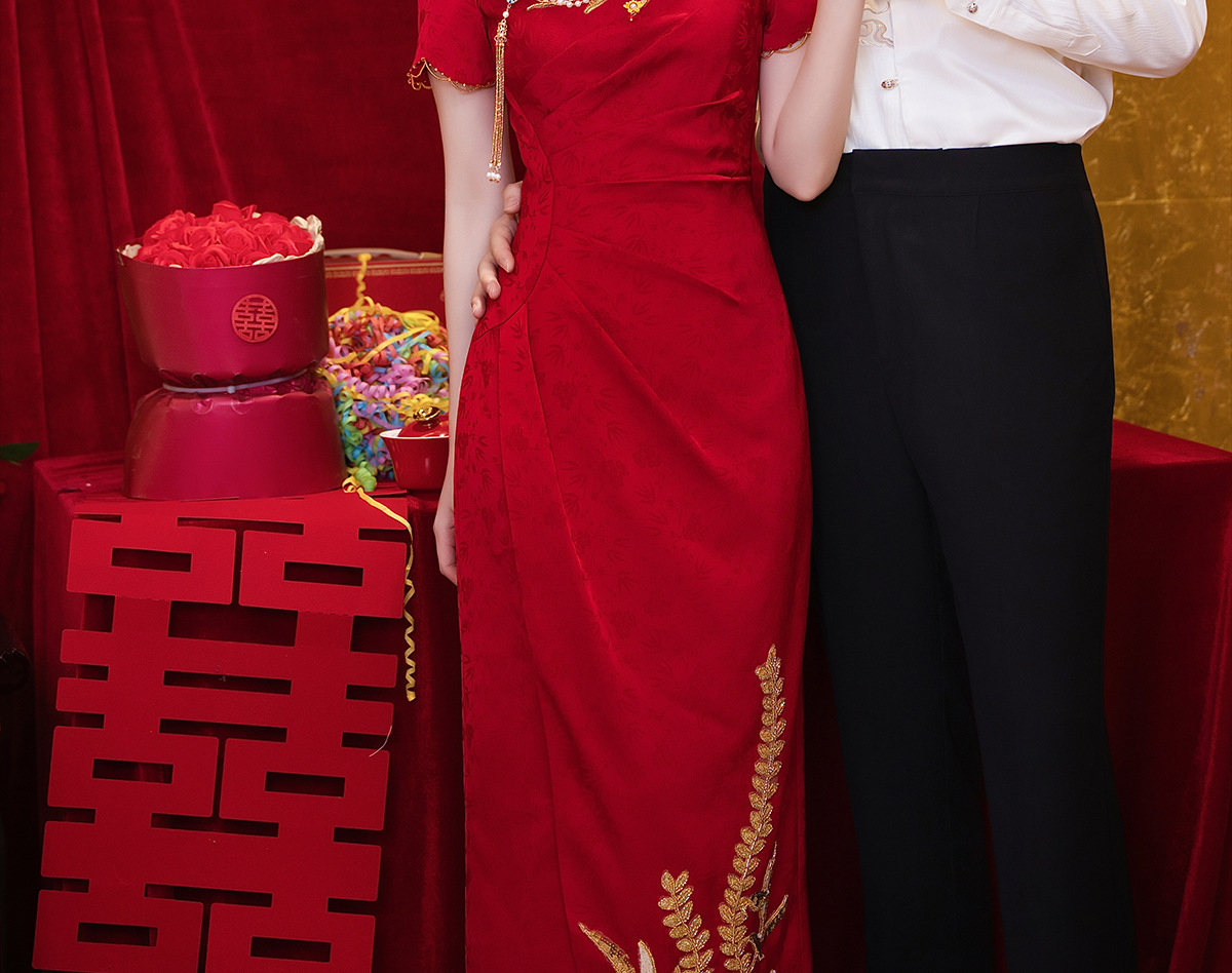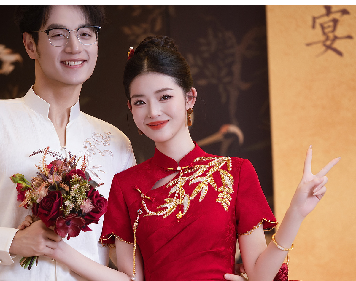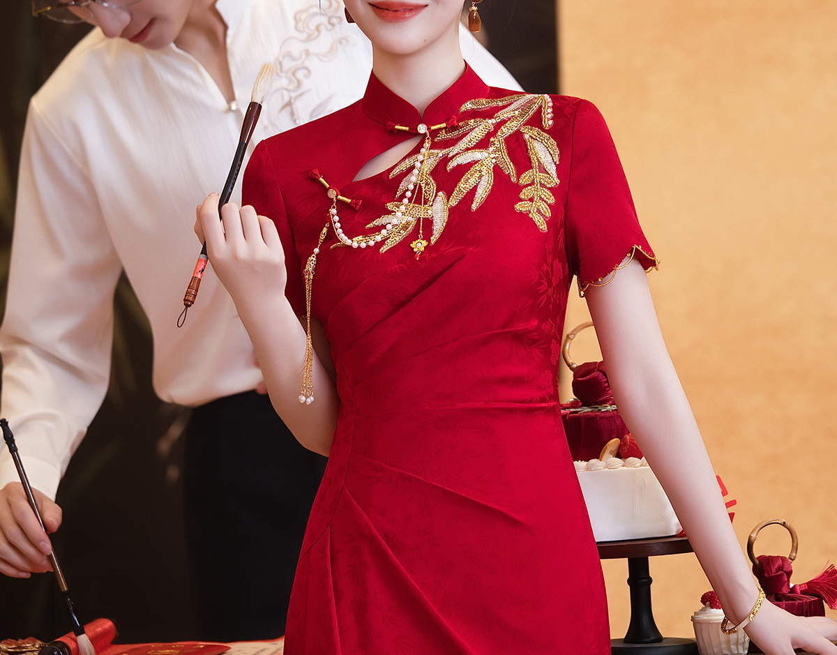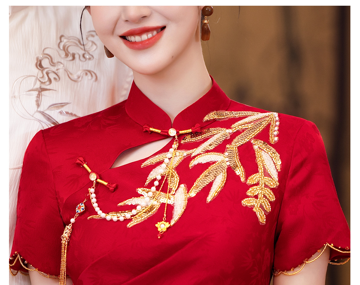 Красное платье-чонсам для невест маленького роста, новинка 2025 года, свадебное платье в китайском стиле