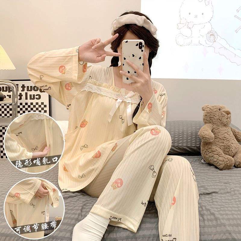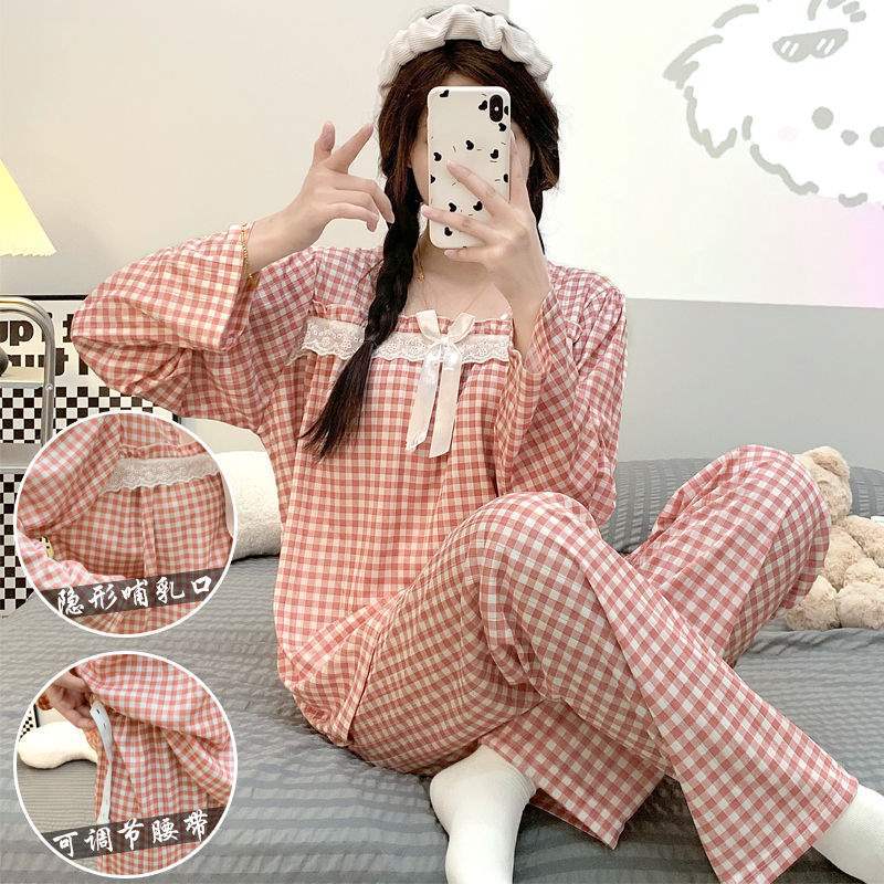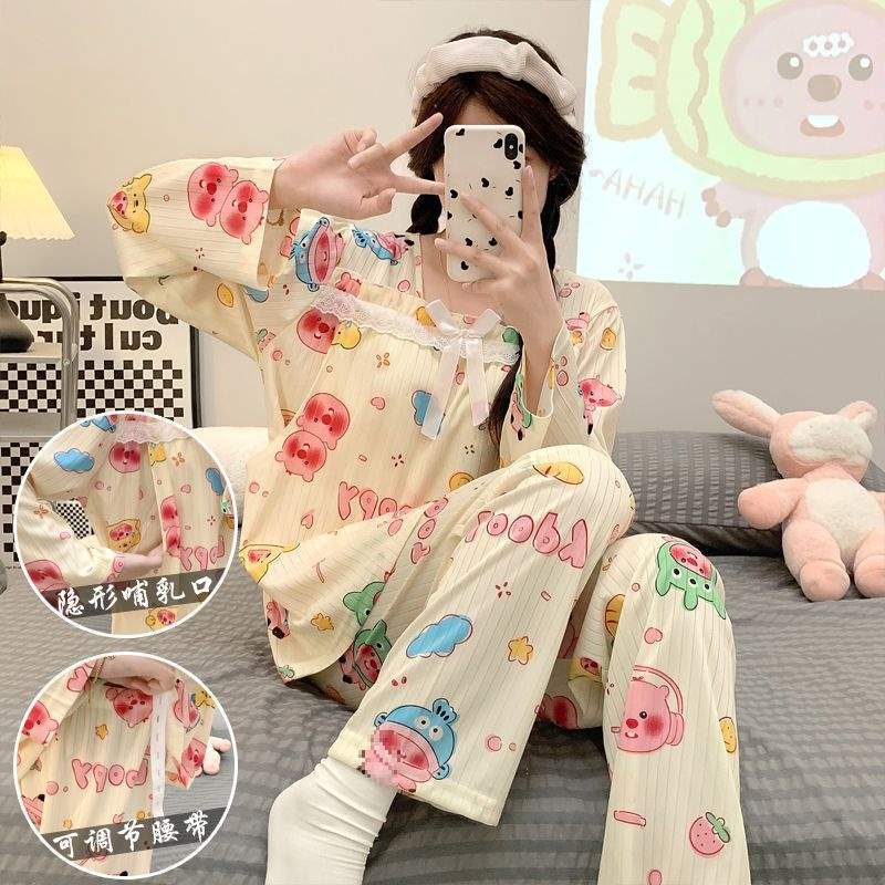 Пижамы для беременных, весенне-осенняя одежда для родов с длинными рукавами, одежда для кормления, одежда для кормления грудью после родов, летние комплекты женской домашней одежды.