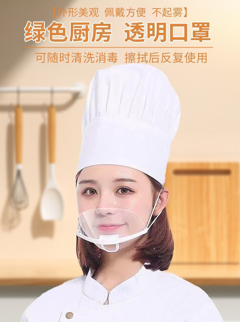 [Перерабатываемая] Прозрачная пластиковая маска с защитой от слюны, маска для общественного питания, противотуманная маска для кухни, ресторана, шеф-повара, нет