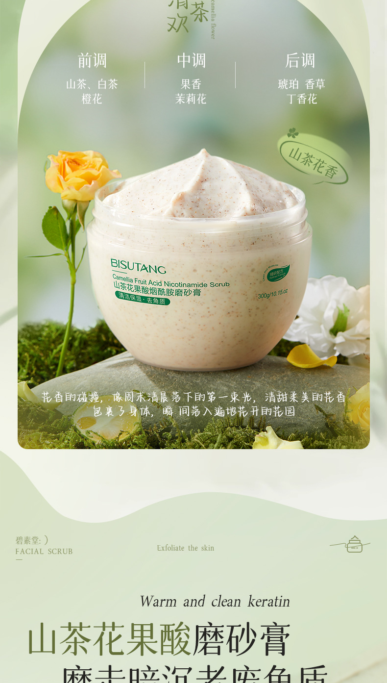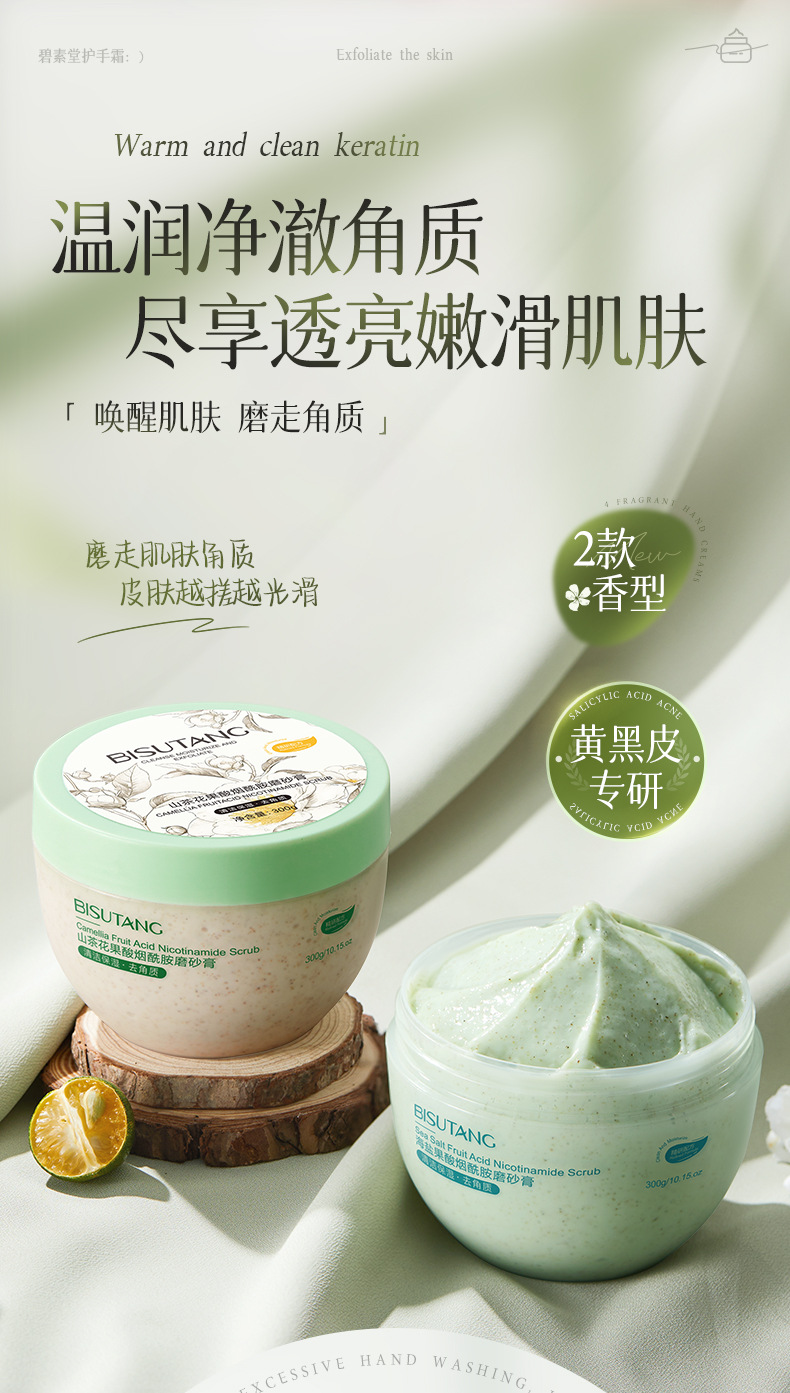 Скраб для тела Bisutang Ice Cream Fruit Acid с камелией и ниацинамидом улучшает грубое отшелушивание. Производитель Spot.
