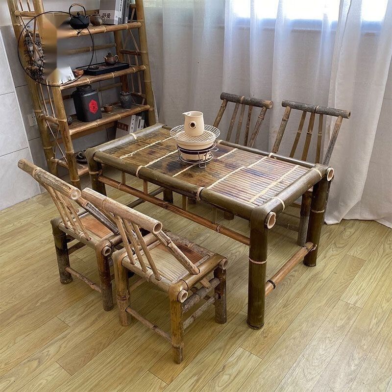 Комбинация стола и стула ручной работы, журнальный столик для открытого двора, бамбуковый плетеный чайный столик, домашний ретро обеденный стол и стулья, завод