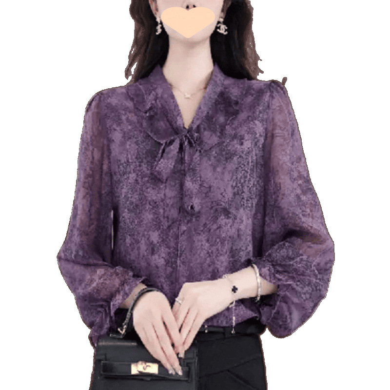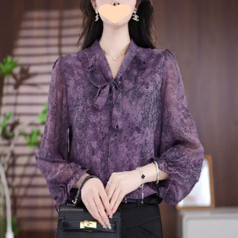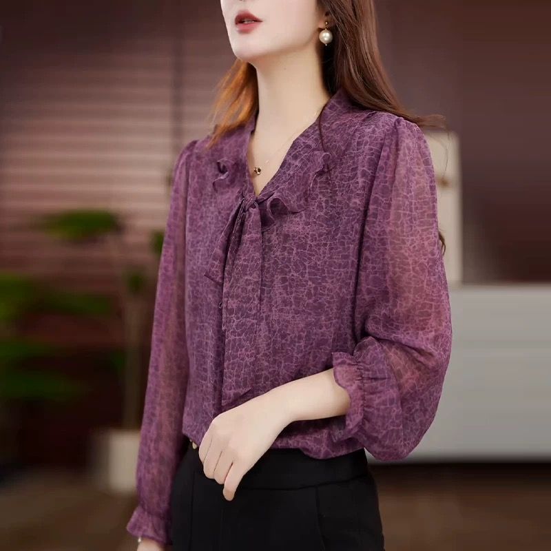 Элегантная свободная шифоновая рубашка с воротником и лентой для женщин, весенняя новая модная универсальная утягивающая женская рубашка с длинными рукавами среднего возраста
