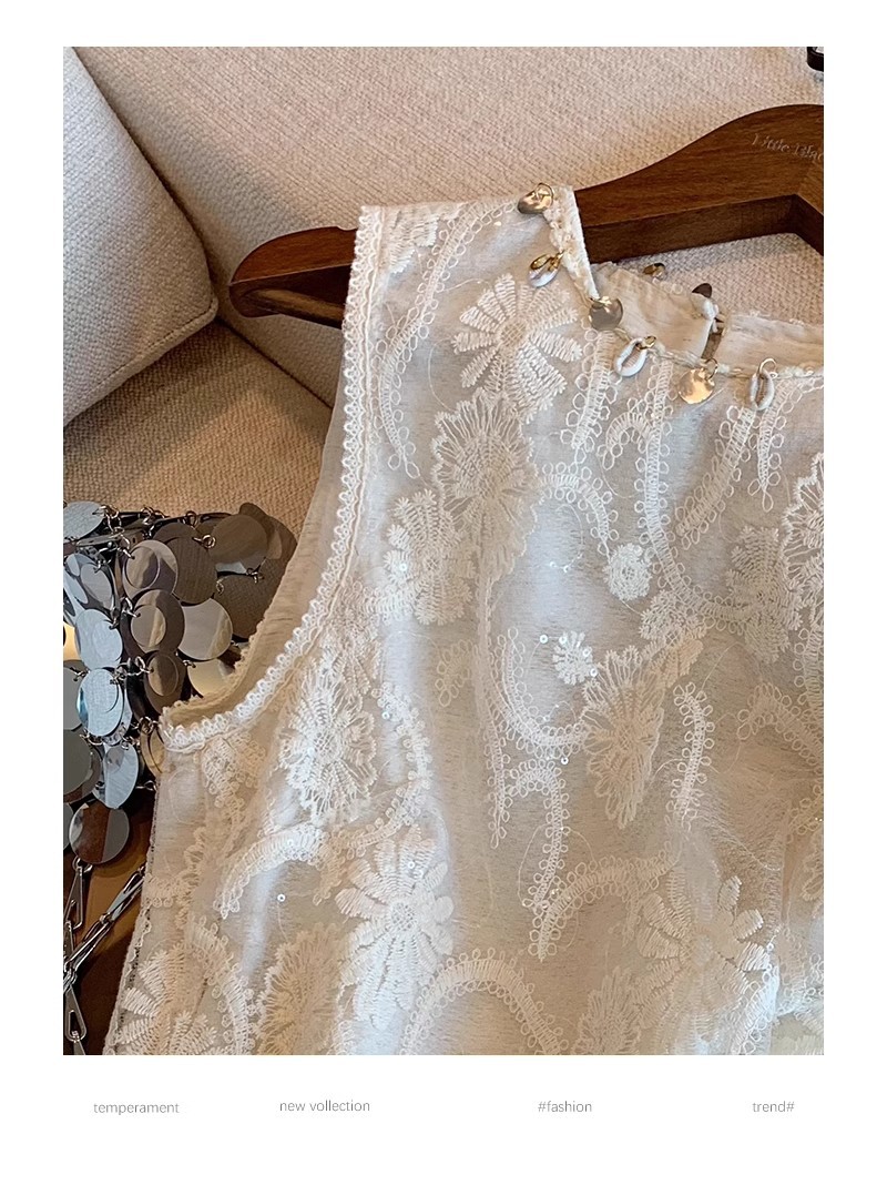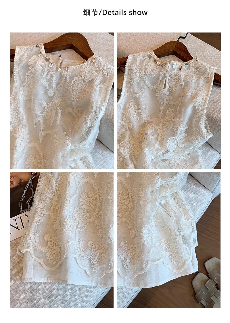 G6N Женский топ без рукавов с тяжелой кружевной вышивкой во французском стиле и бисером, новый летний дизайн, модный, нежный и тонкий.
