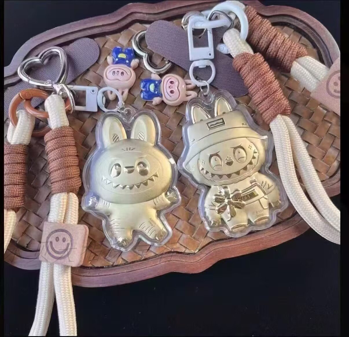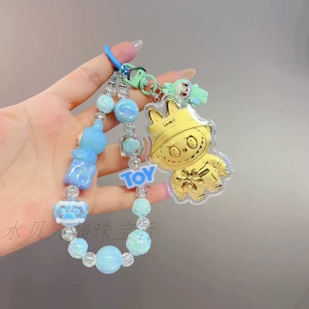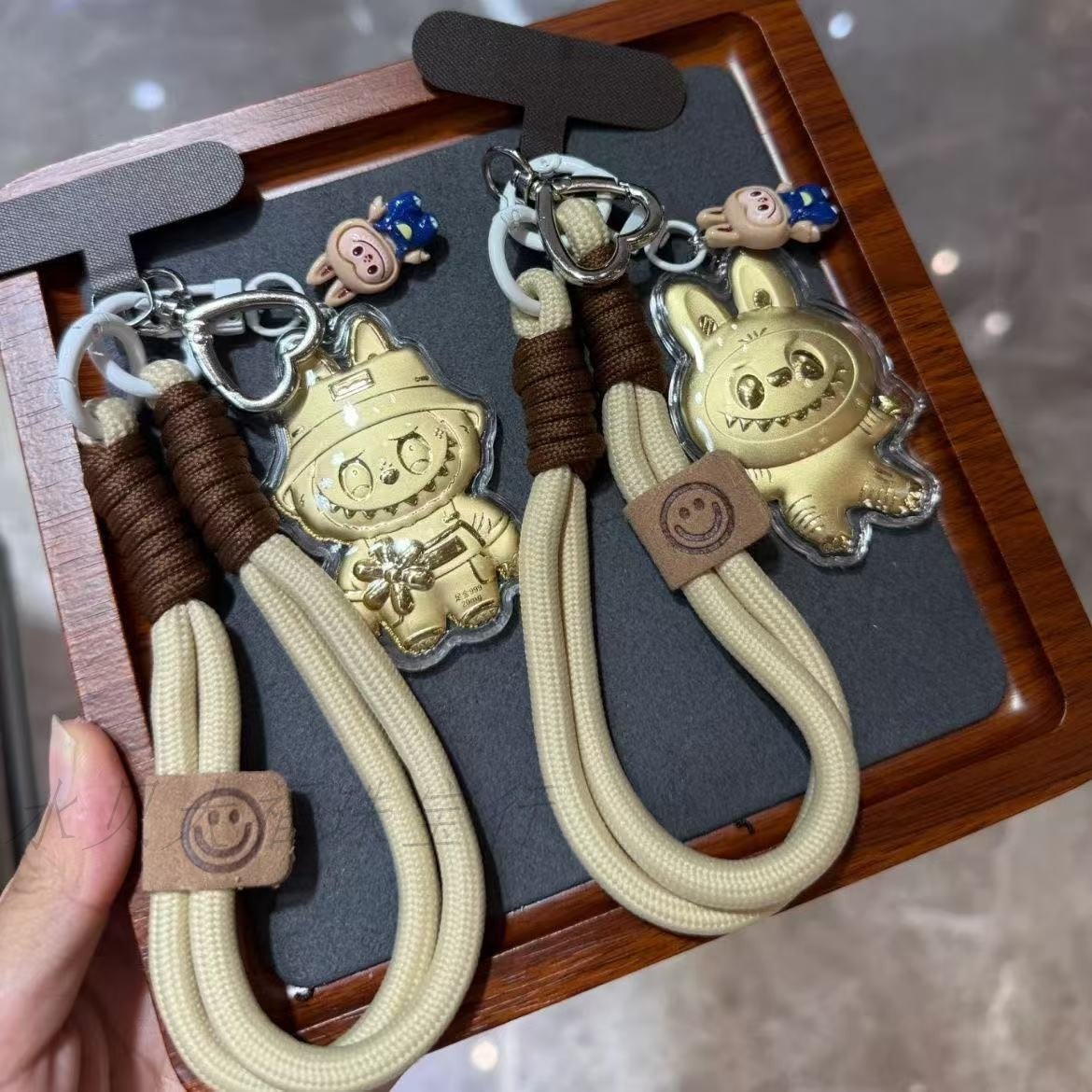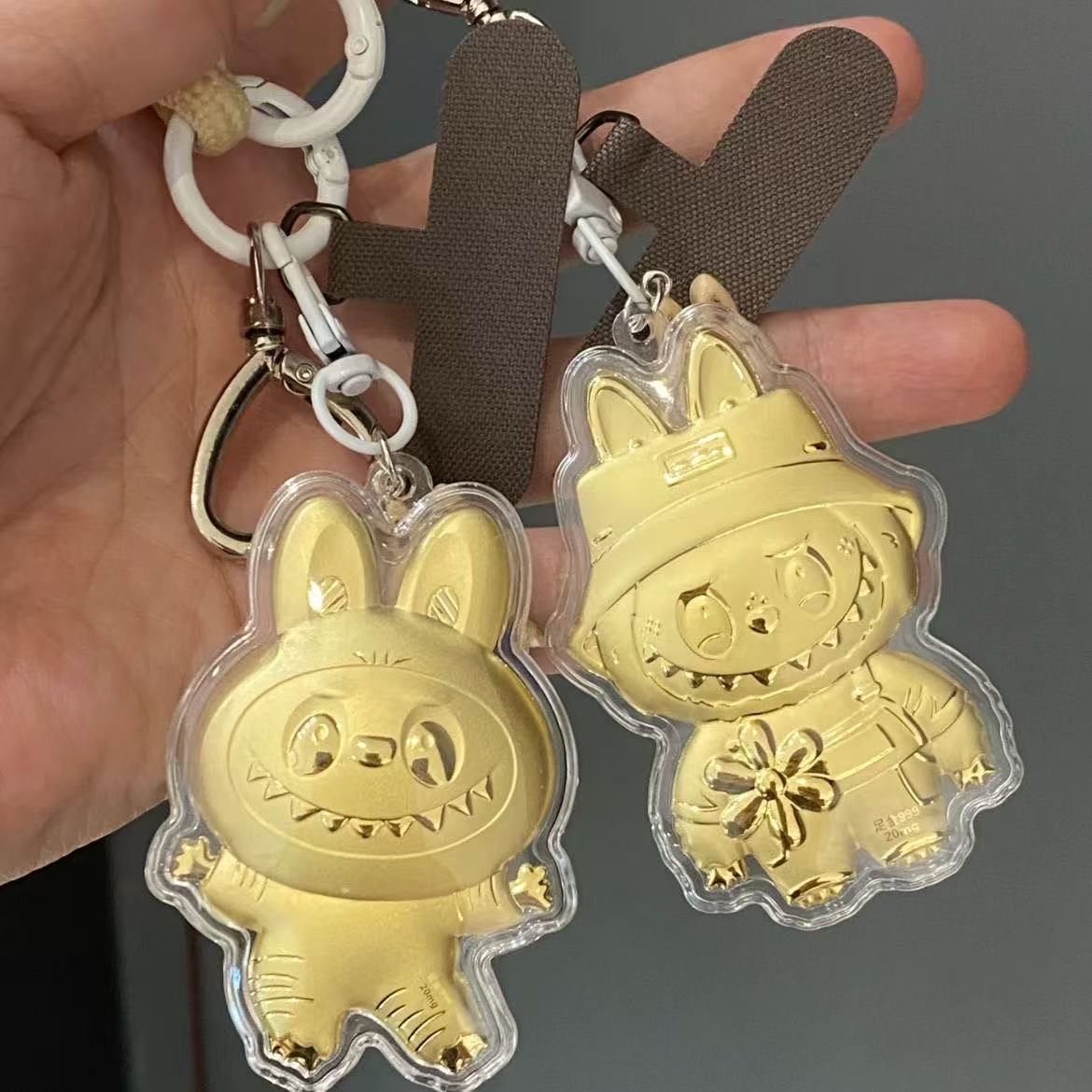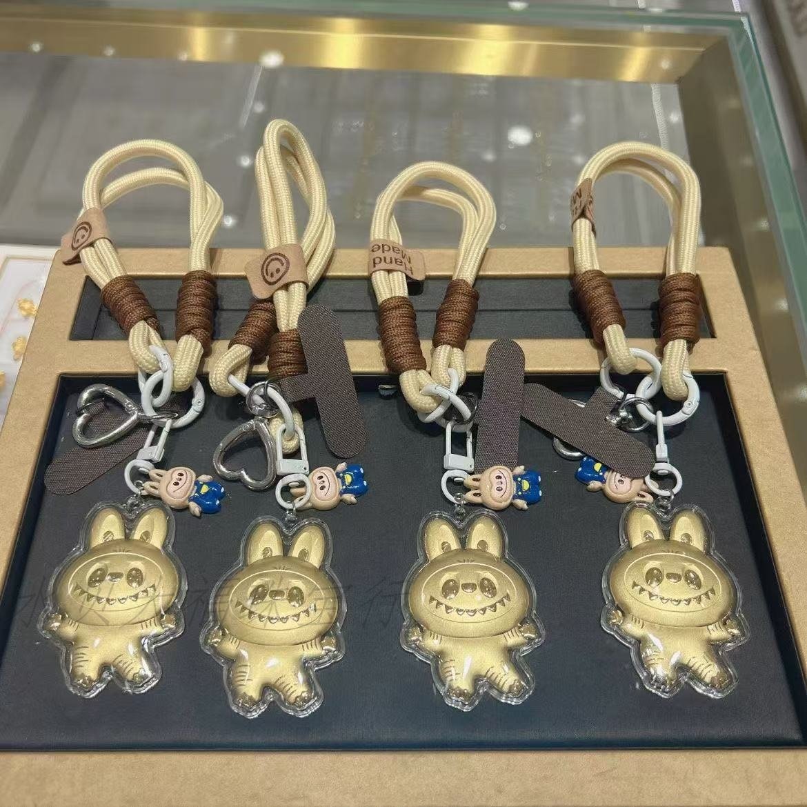 Водяной бежевый золотой 999 Labubu ремешок для телефона, брелок из чистого золота, подвеска для сумки, подарок для подруги или лучшего друга.