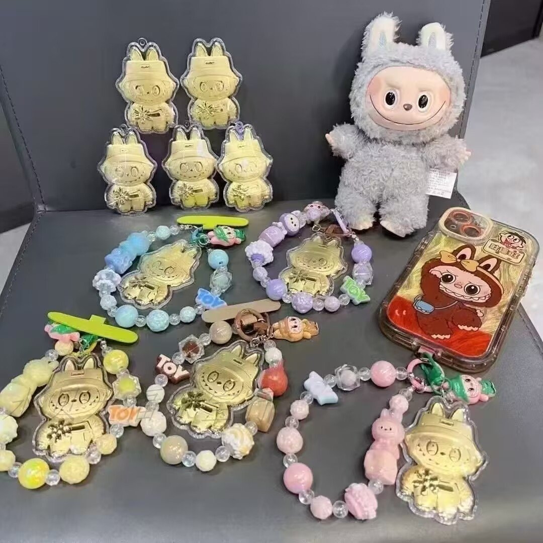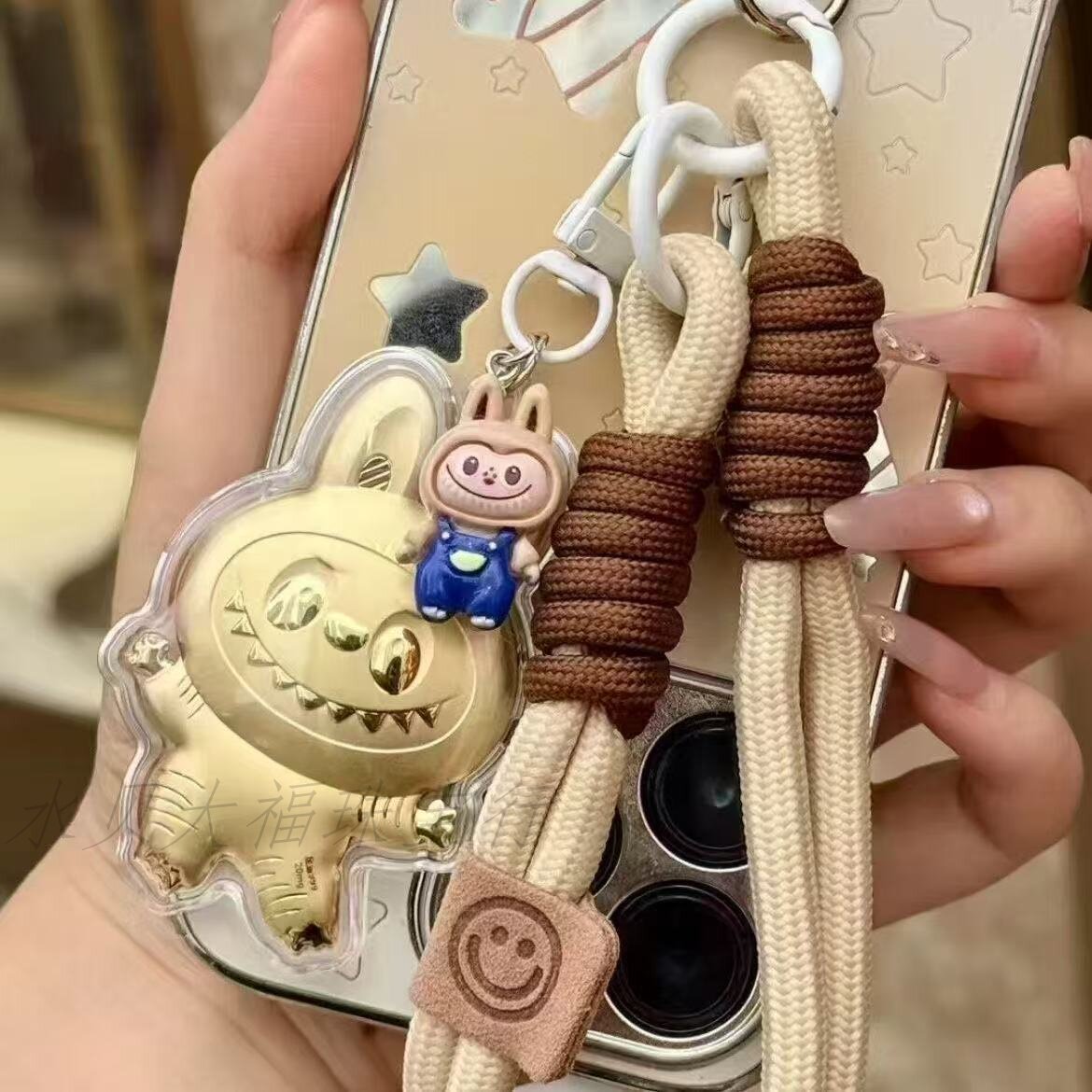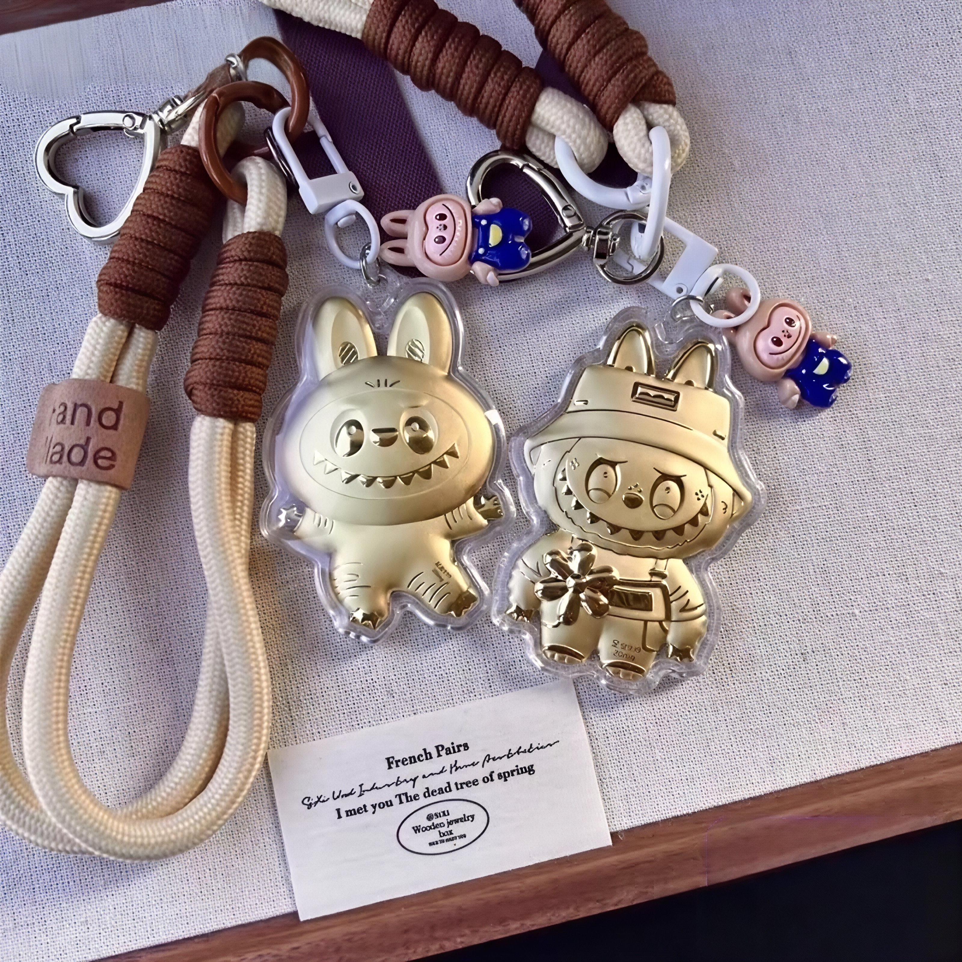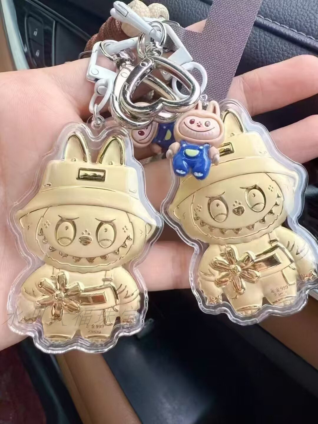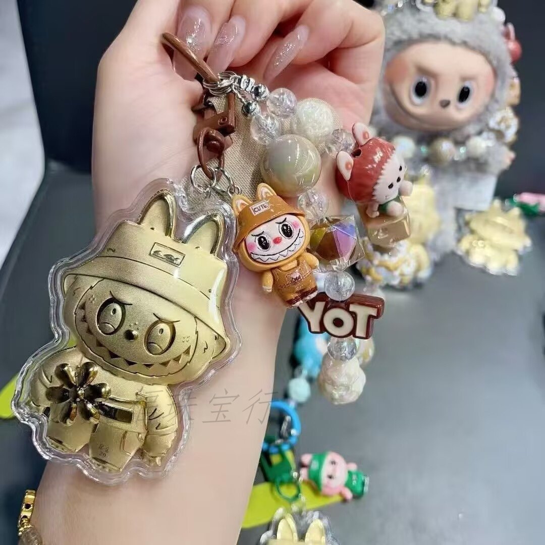 Водяной бежевый золотой 999 Labubu ремешок для телефона, брелок из чистого золота, подвеска для сумки, подарок для подруги или лучшего друга.