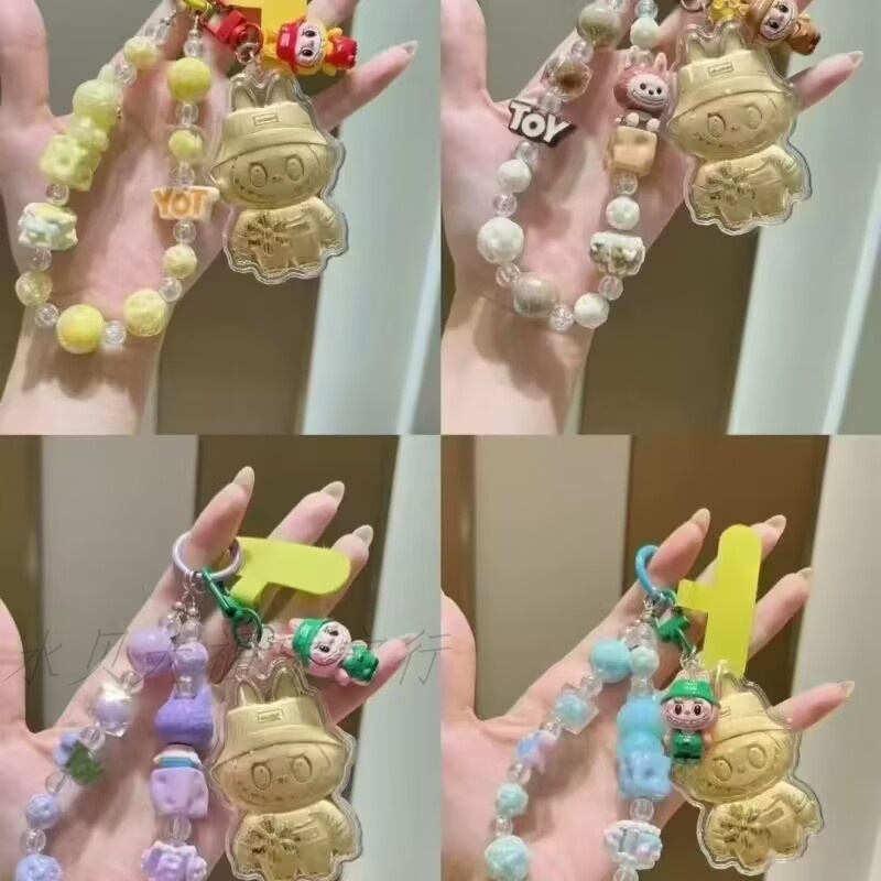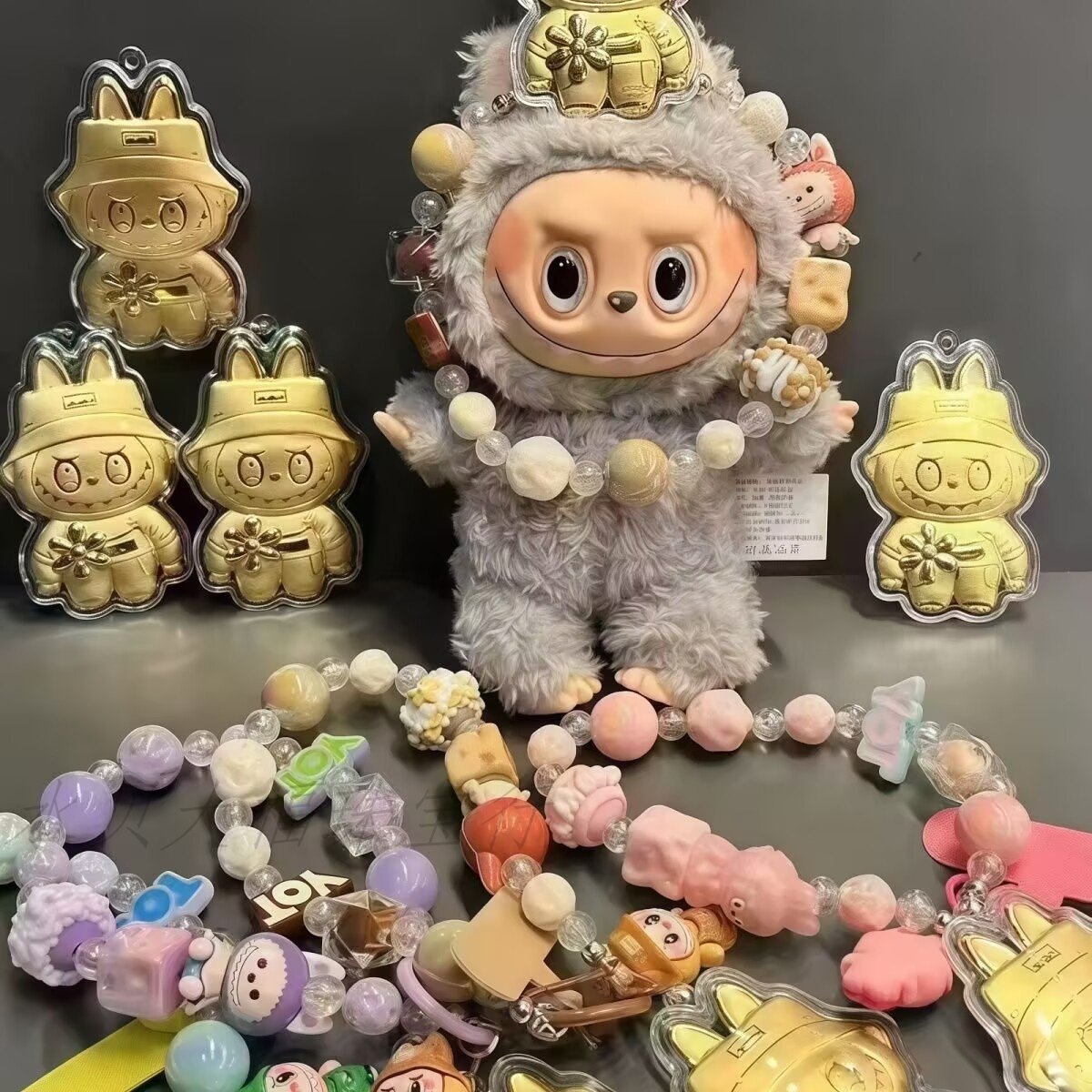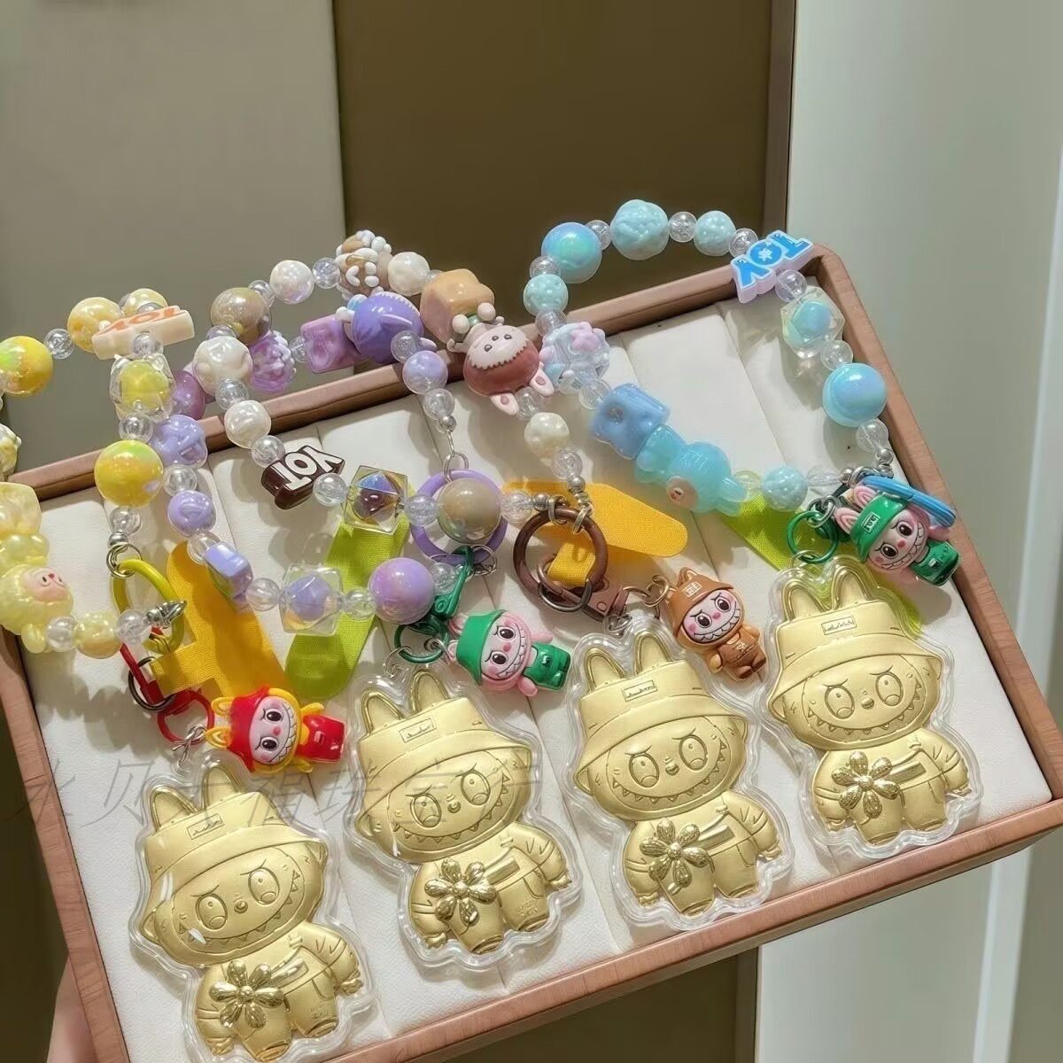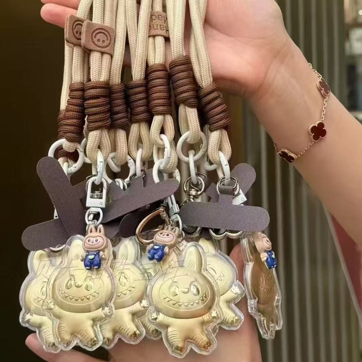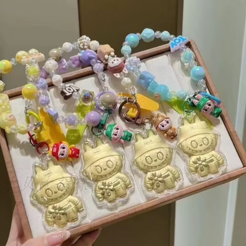 Водяной бежевый золотой 999 Labubu ремешок для телефона, брелок из чистого золота, подвеска для сумки, подарок для подруги или лучшего друга.