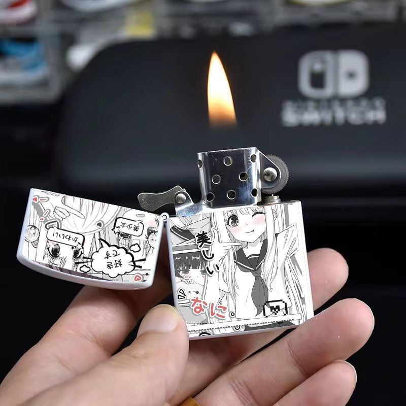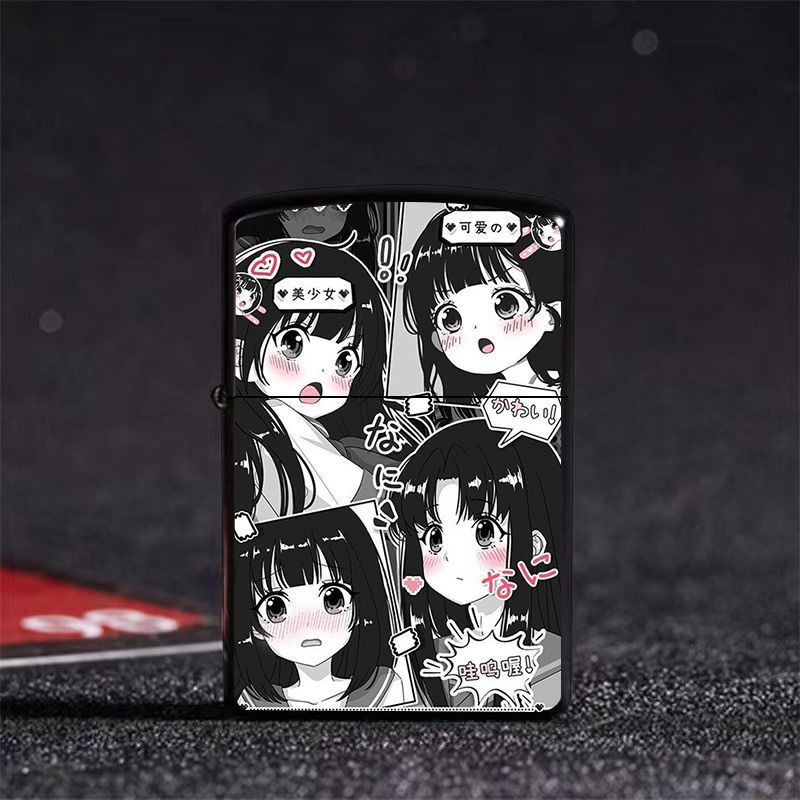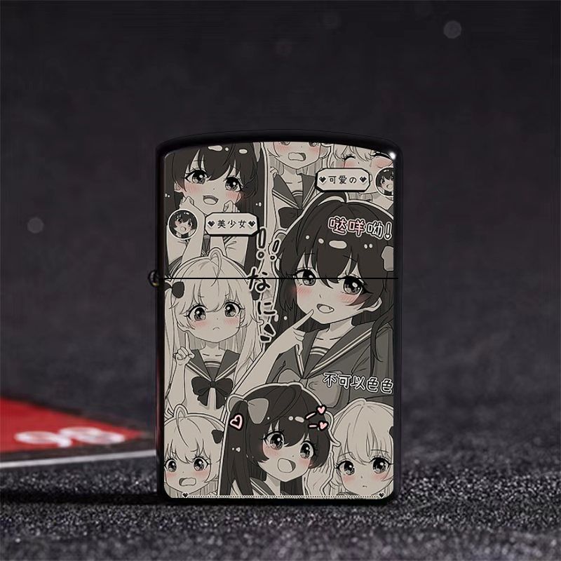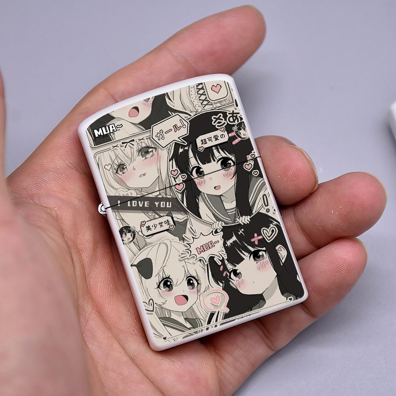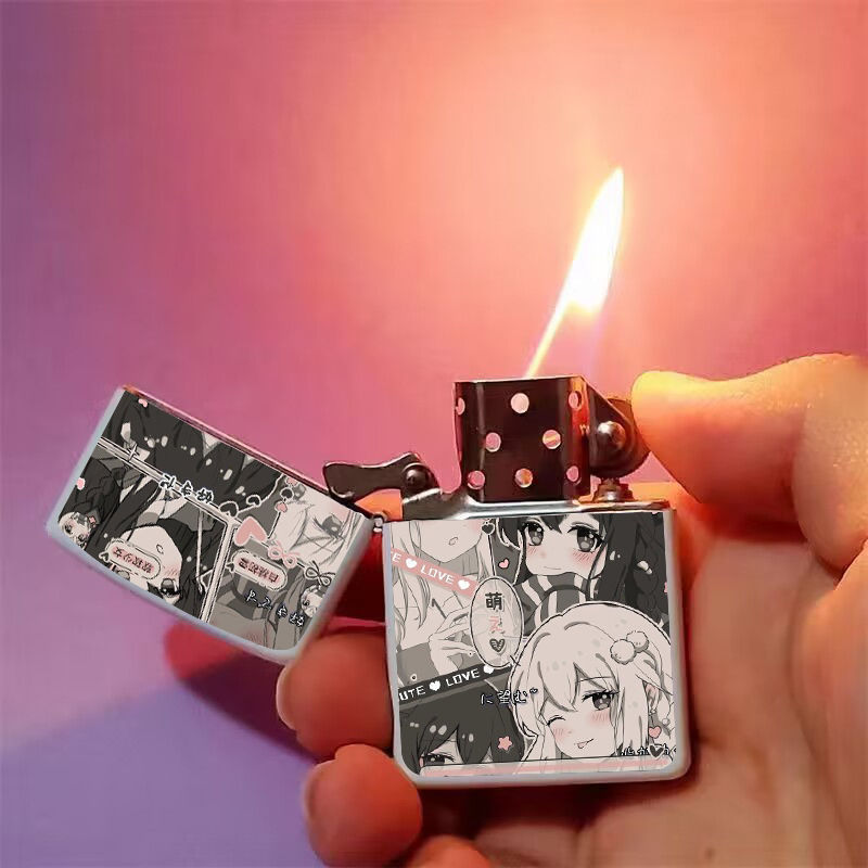 Аниме керосиновая зажигалка двумерная красивая девушка мультяшная откидная металлическая открытая пламенная шлифовальная машина ветрозащитный подарок для парня и лучшего друга