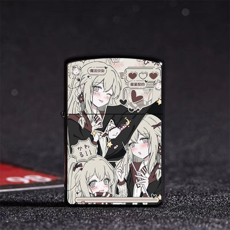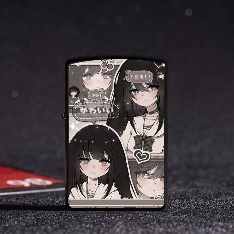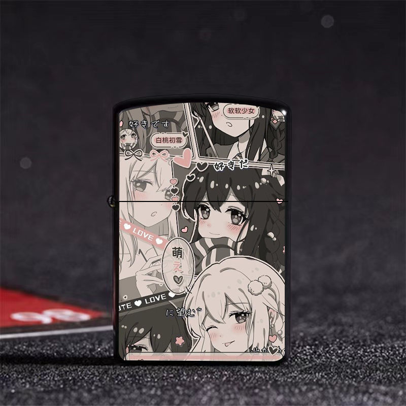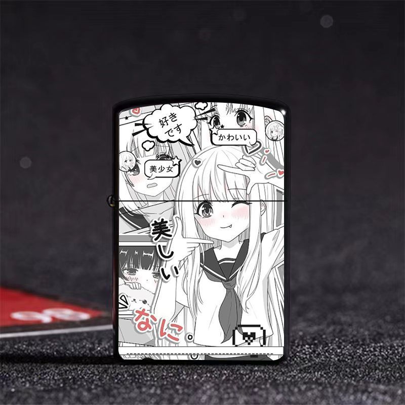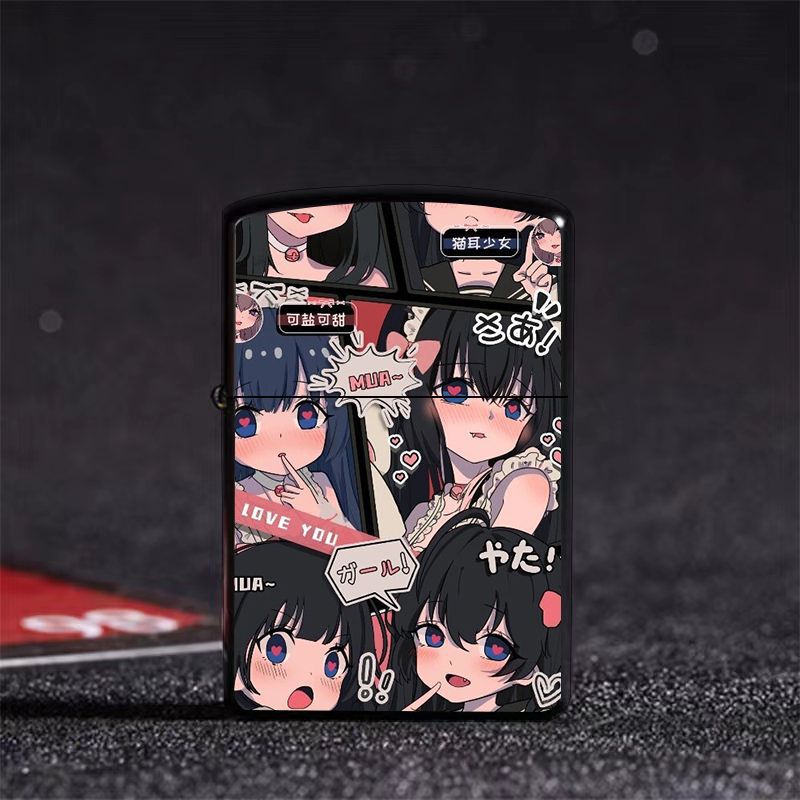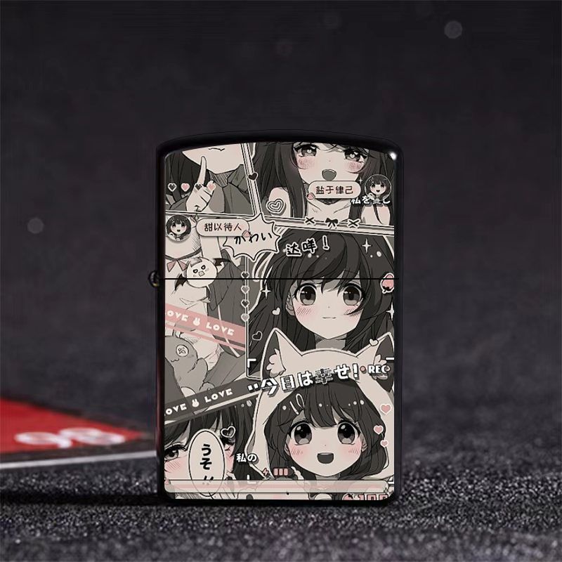 Аниме керосиновая зажигалка двумерная красивая девушка мультяшная откидная металлическая открытая пламенная шлифовальная машина ветрозащитный подарок для парня и лучшего друга