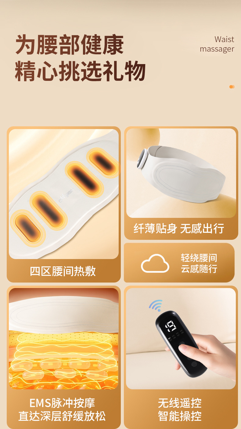 Новый ультратонкий массажный пояс с горячим компрессом для снятия боли в спине, умный массажер для согревания живота, портативный домашний массажер для талии