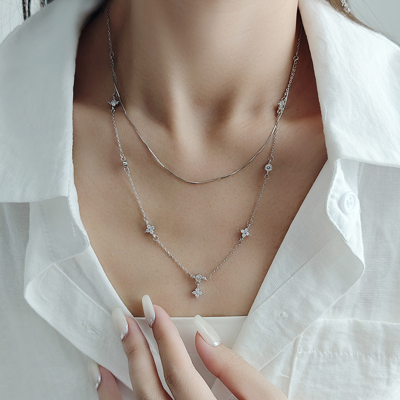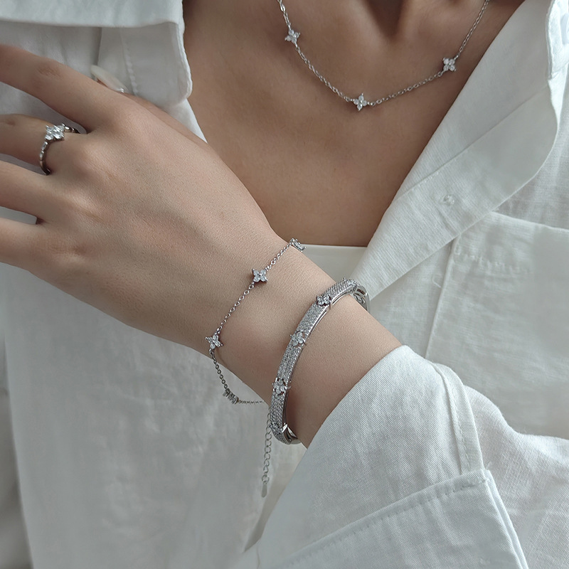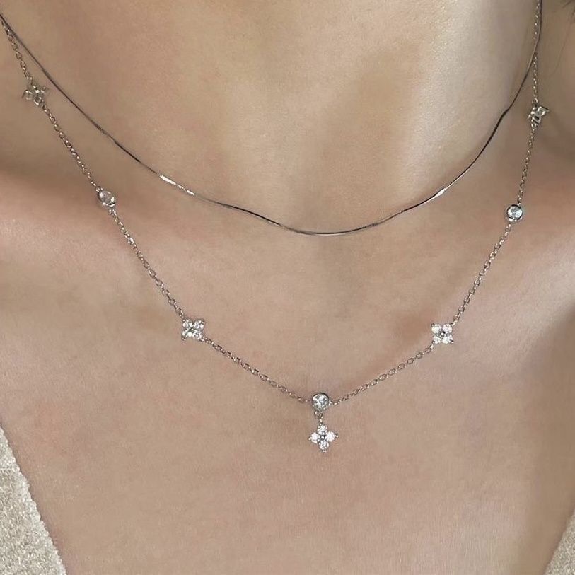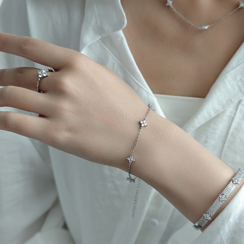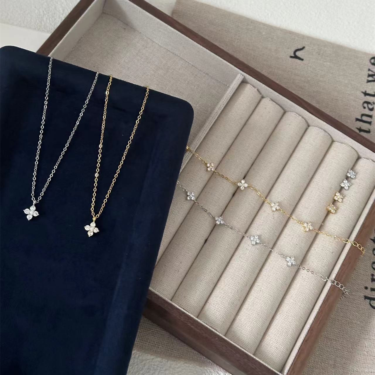 Кросс-бордерный хит продаж: набор украшений в стиле ins с цирконами, включающий колье, серьги, браслет и кольцо с четырехлистным цветком, цепочка для ключицы.