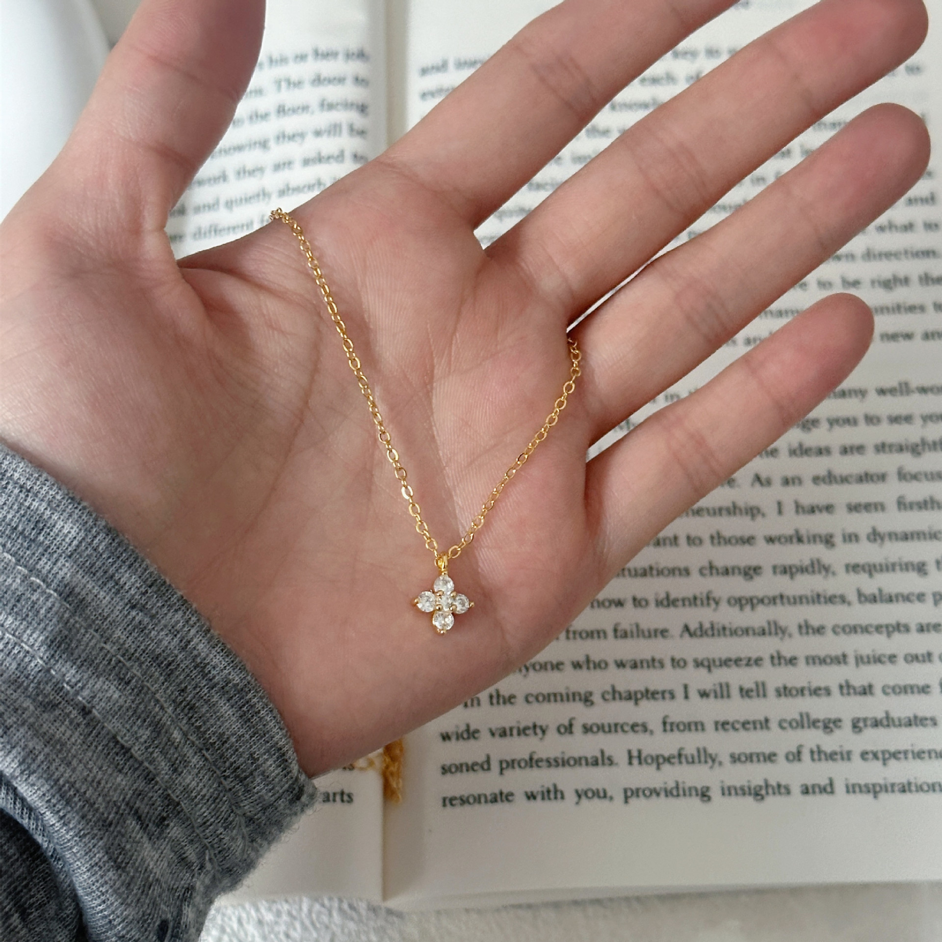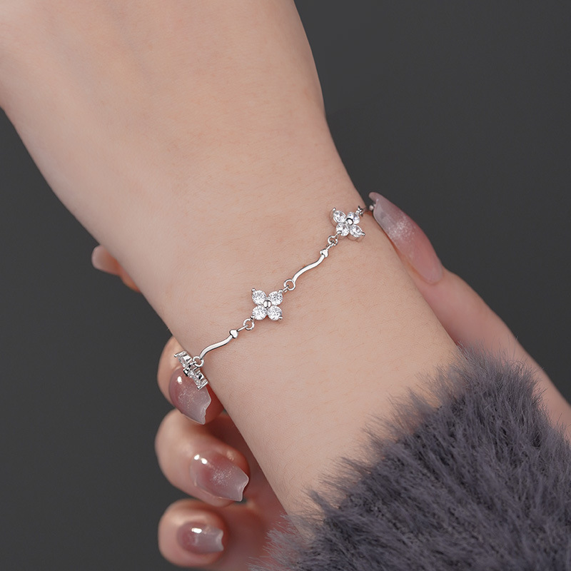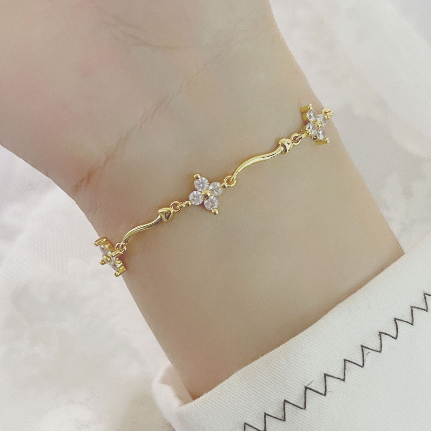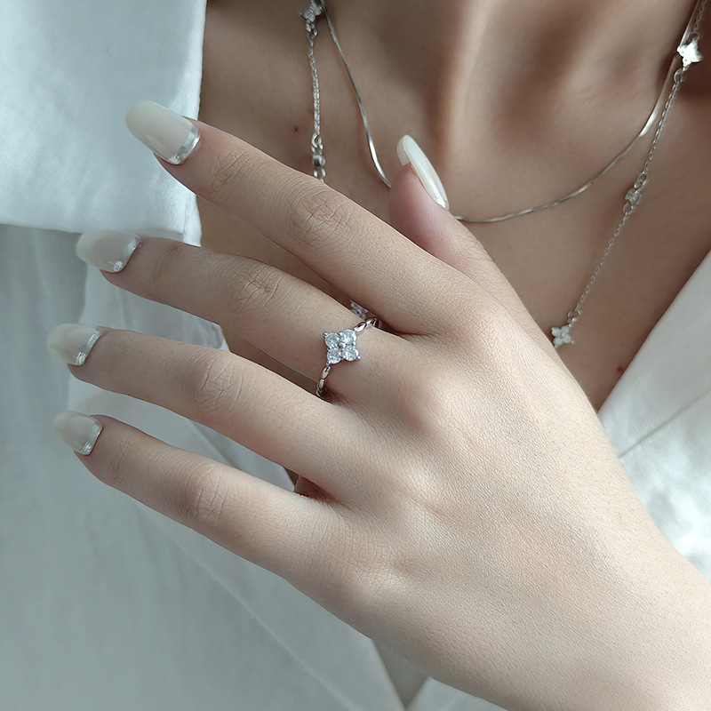 Кросс-бордерный хит продаж: набор украшений в стиле ins с цирконами, включающий колье, серьги, браслет и кольцо с четырехлистным цветком, цепочка для ключицы.