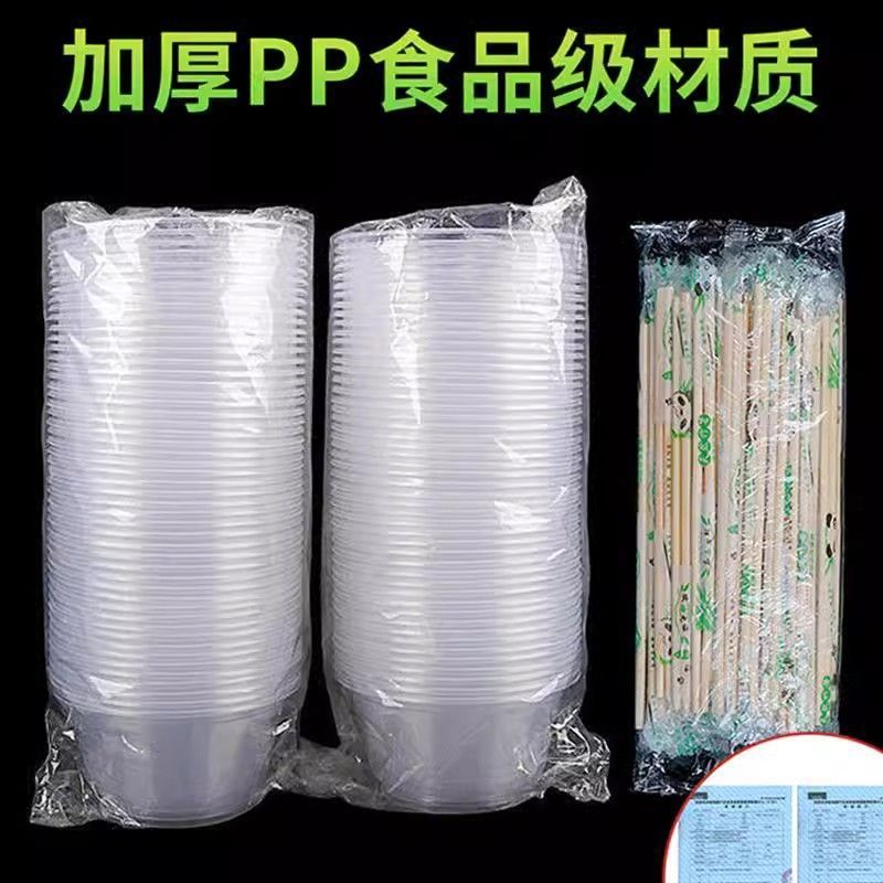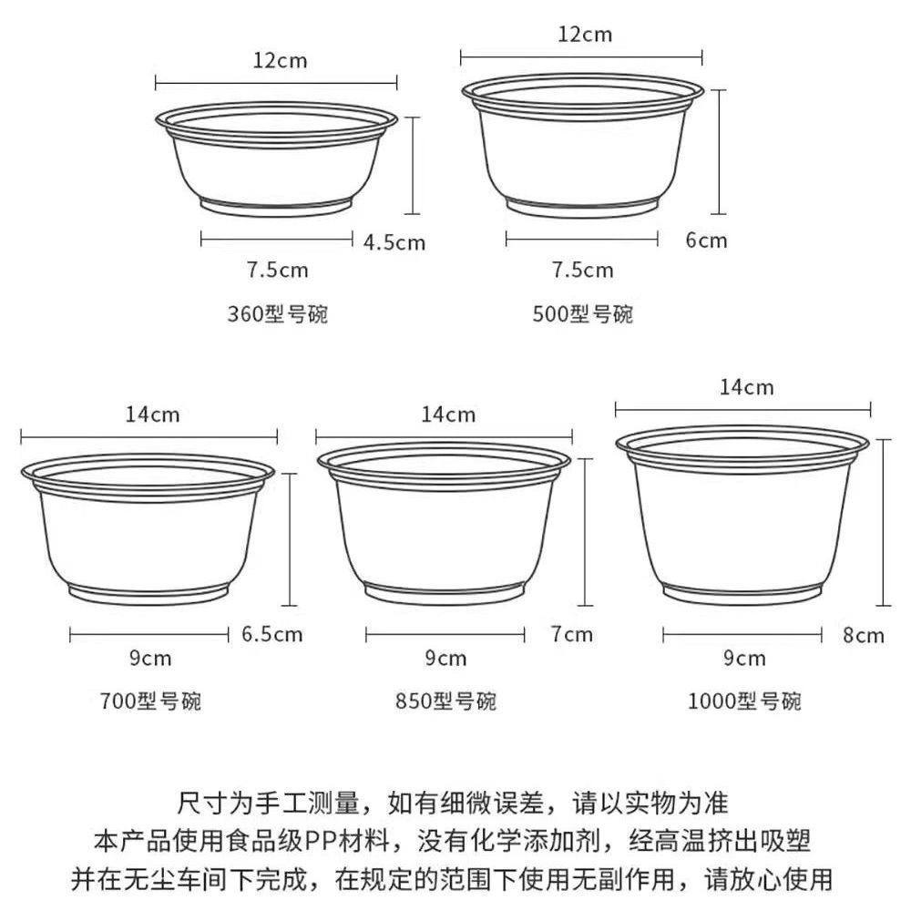 Одноразовая посуда, пластиковая миска, упаковка, утолщенная маленькая коробка для еды на вынос, коробка для фаст-фуда с крышкой, квадратная круглая суповая миска, оптовая продажа