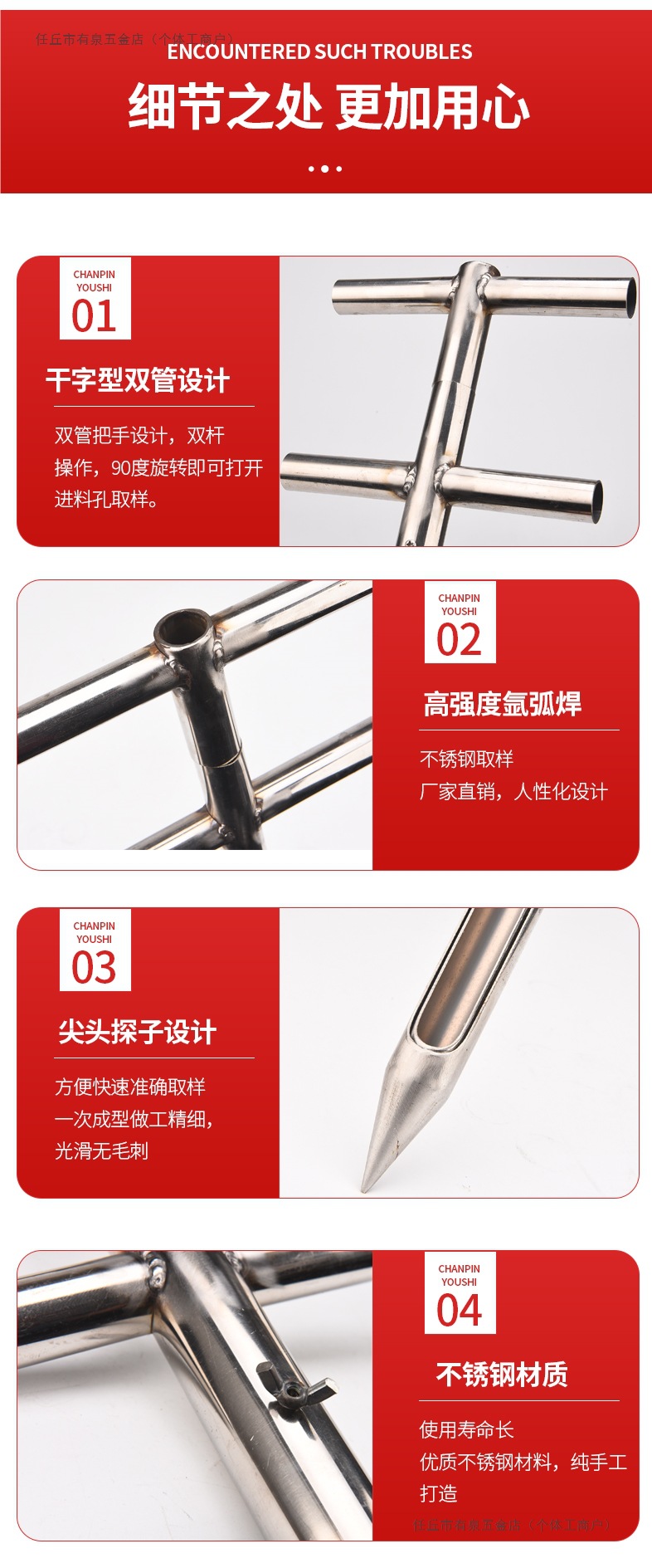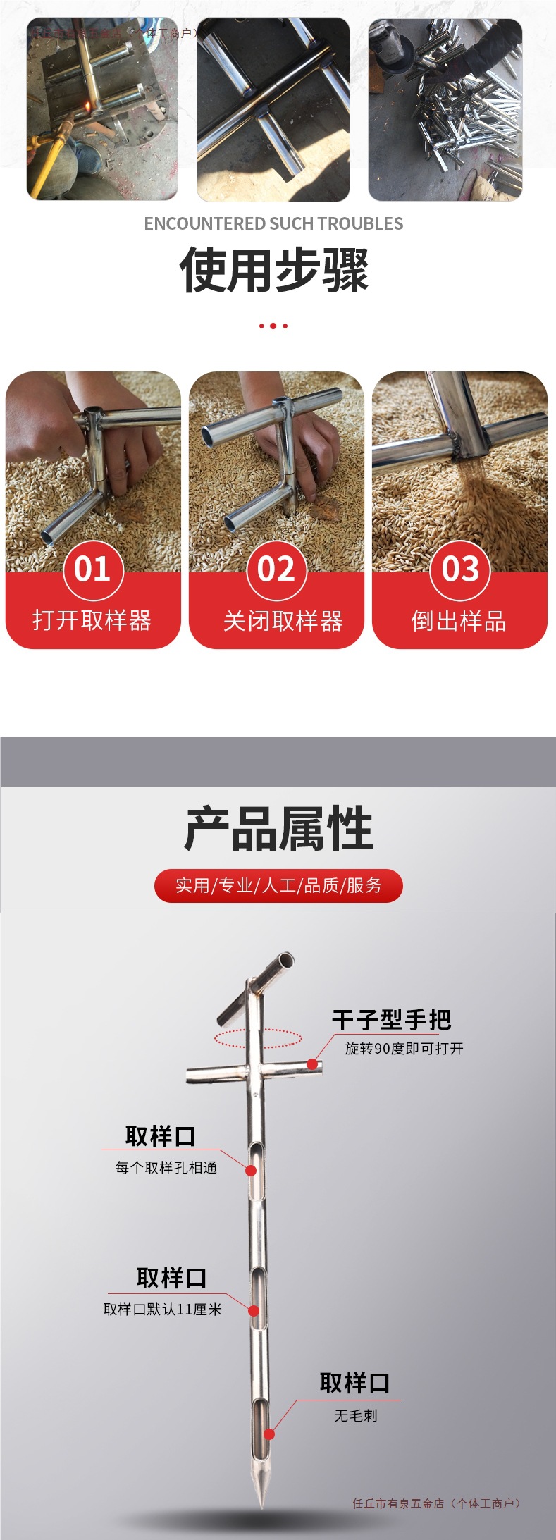 Двухтрубный многослойный корзинчатый пробоотборник из нержавеющей стали для зерна, пшеницы, риса, с лопаткой для минеральных удобрений и порошков