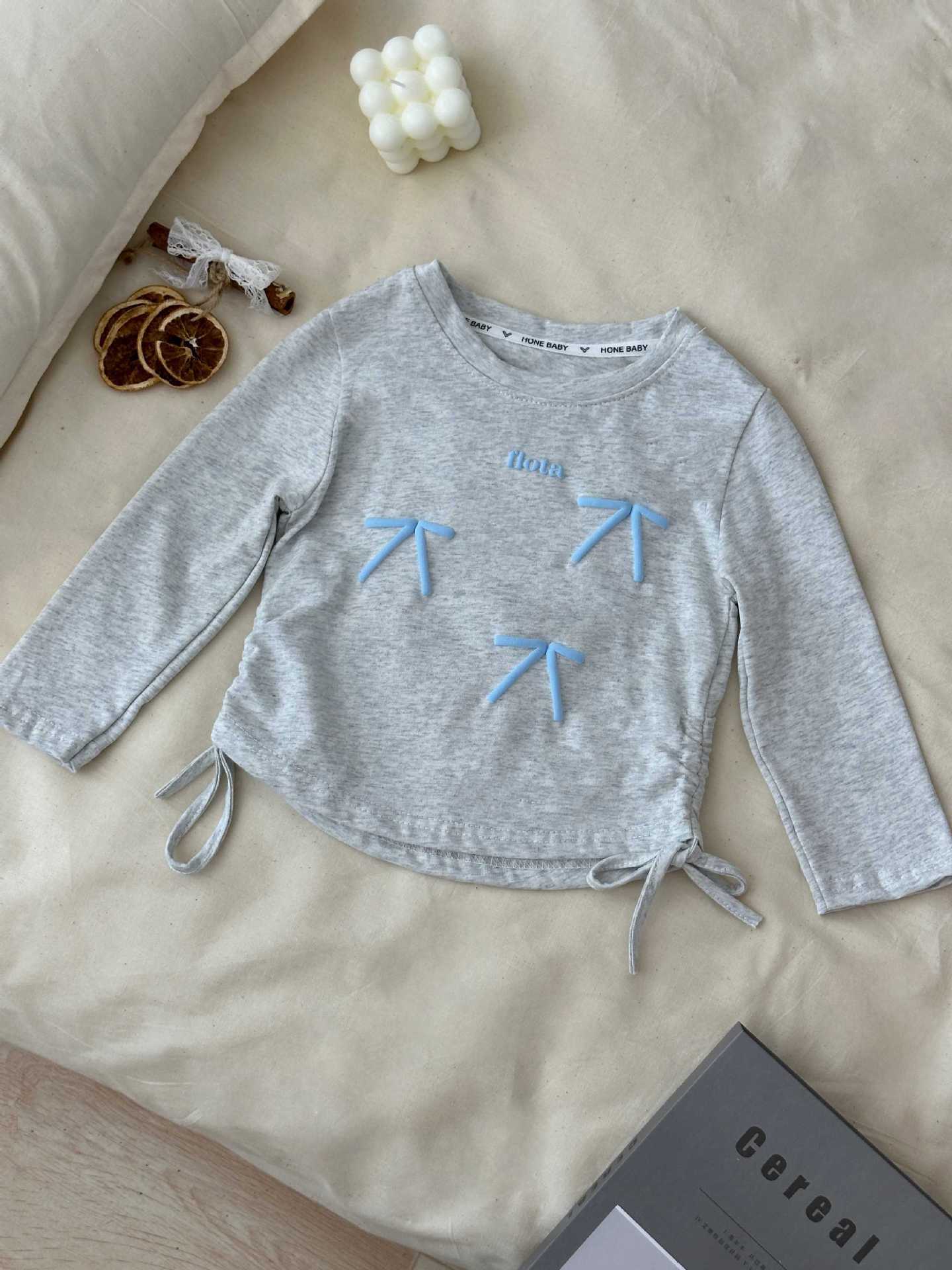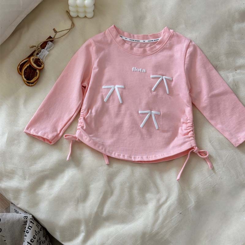 2025春秋新款女童打底衫侧抽蝴蝶结长袖T恤宝宝韩版洋气宽松上衣