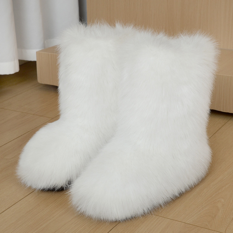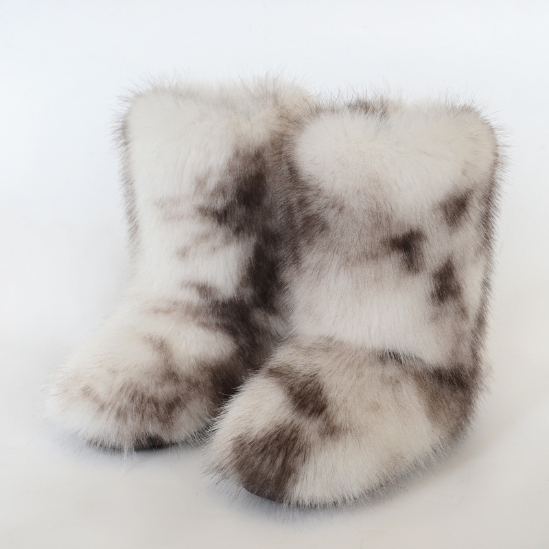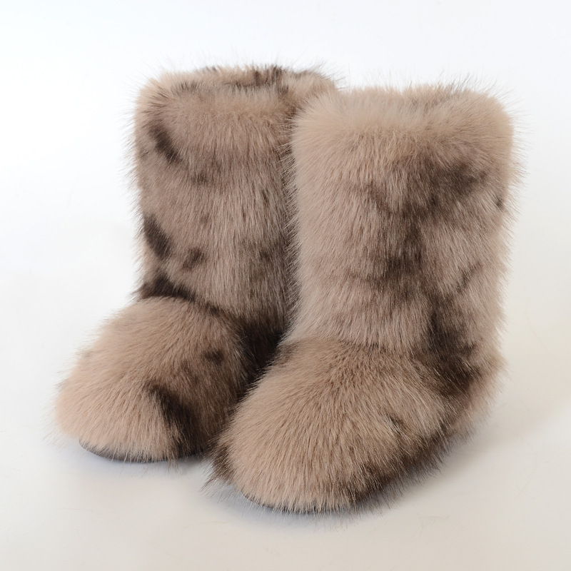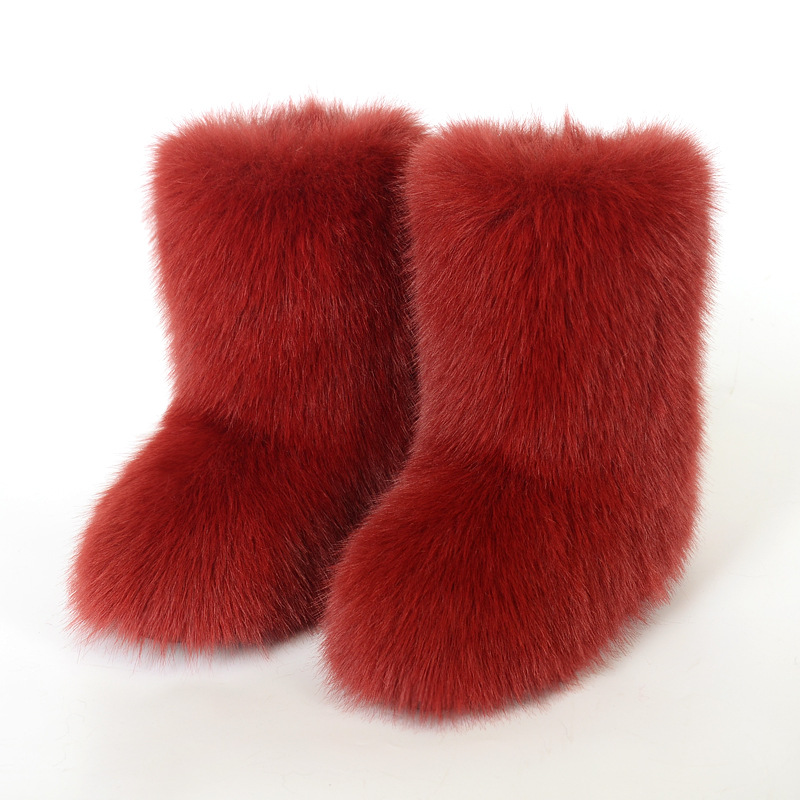 Женские меховые ботинки Amazon, теплая обувь, зимние зимние ботинки средней длины с имитацией лисы и меха енота