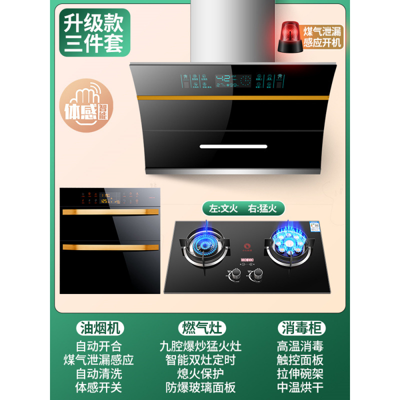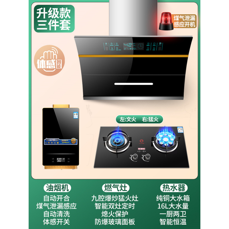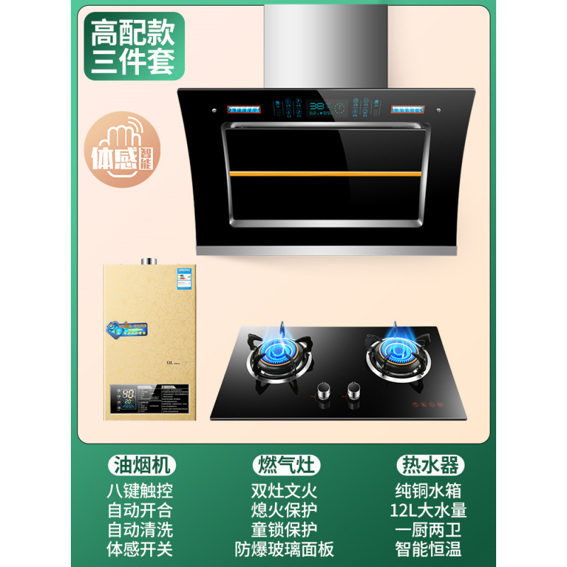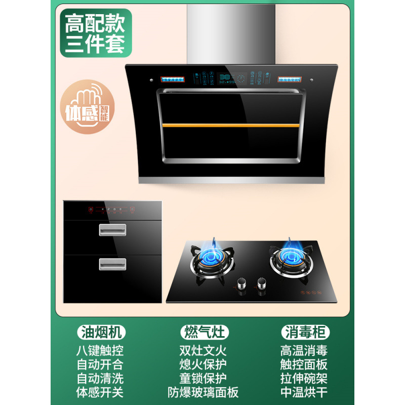 Кухонный набор из вытяжки и газовой плиты Zhenchu Haotaitai, трехкомпонентный комплект вытяжки и плиты