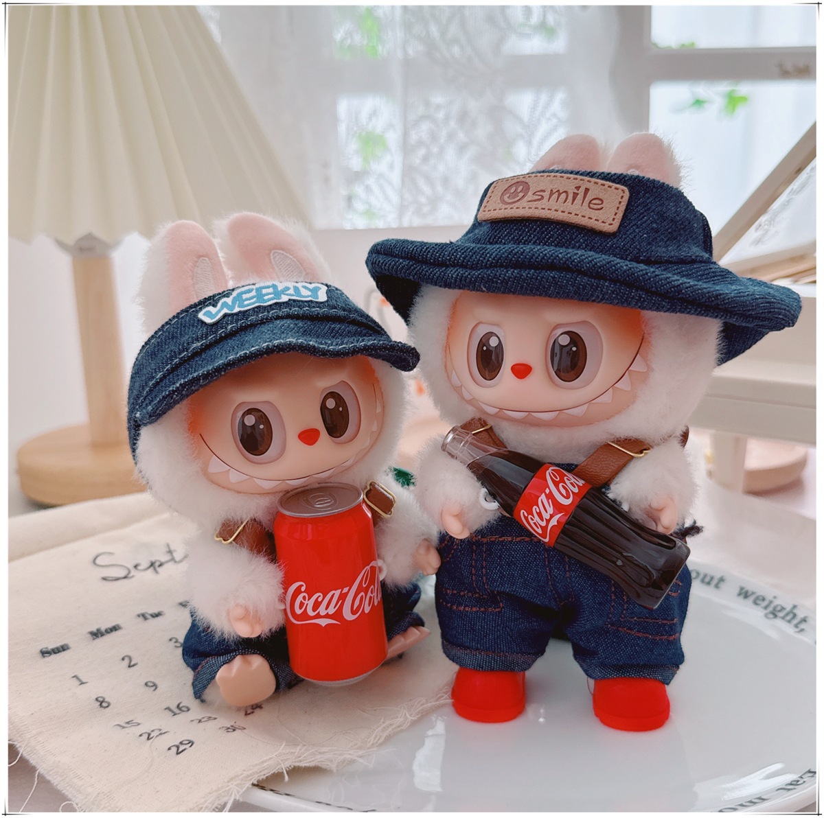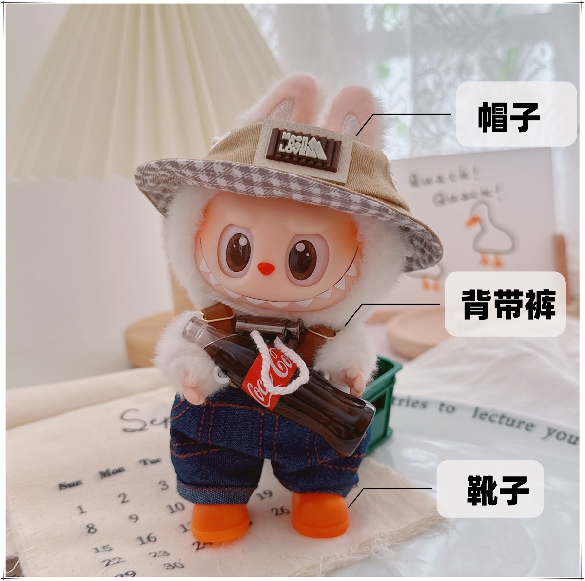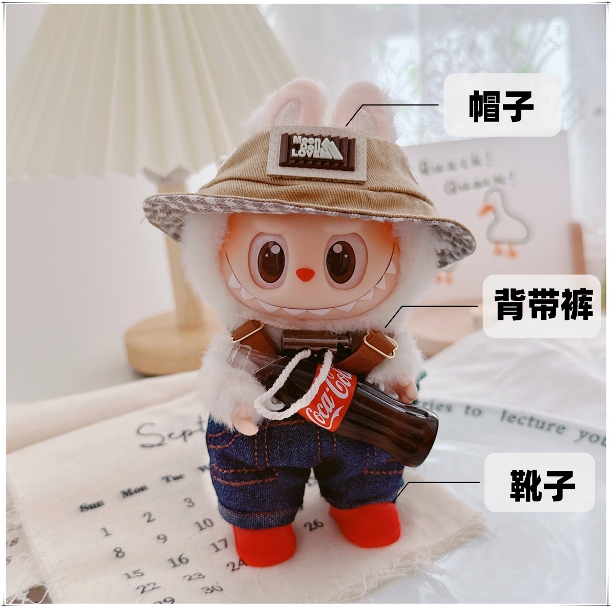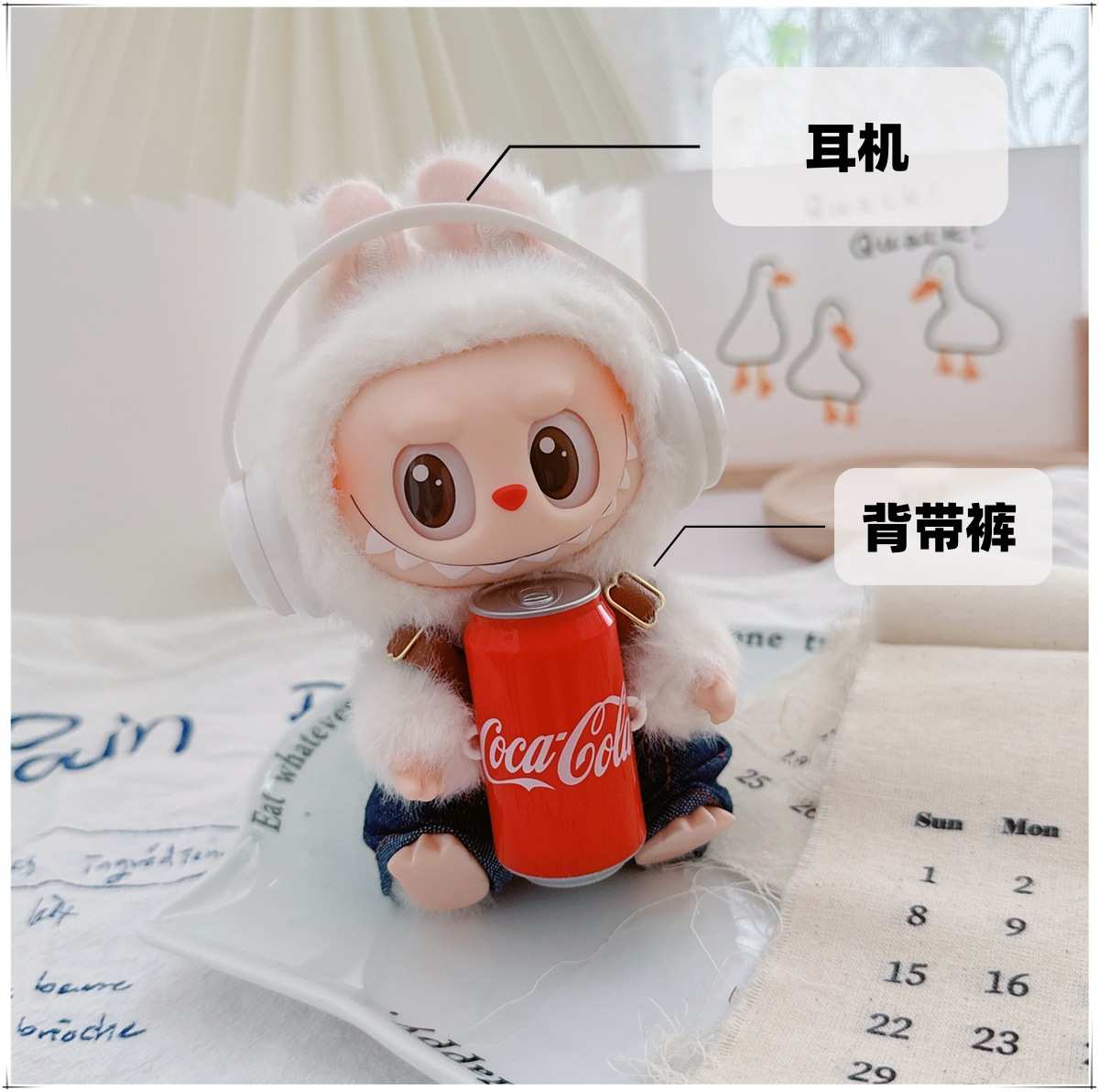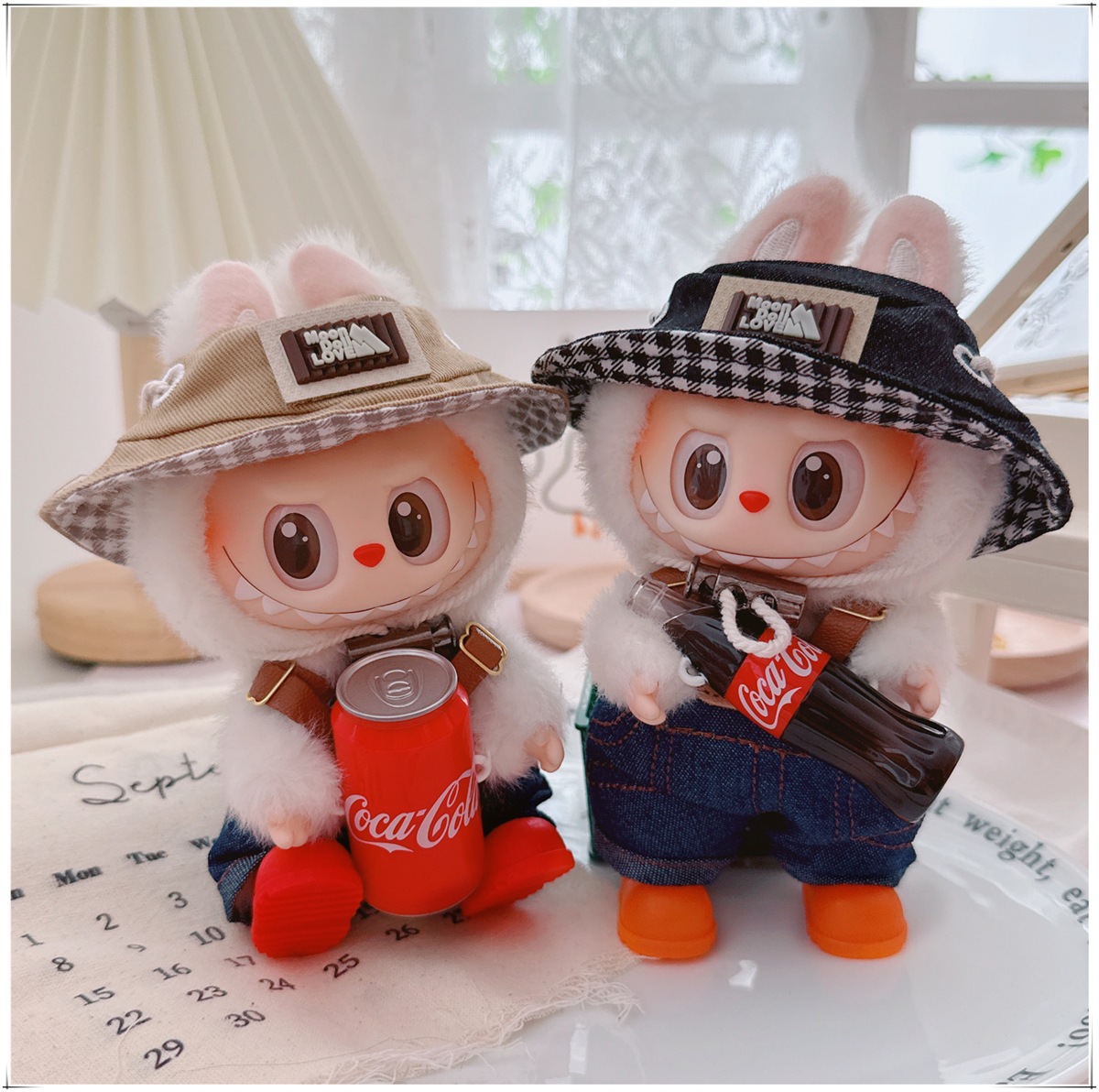 Детская одежда Labubu Coca-Cola первого, второго и третьего поколения, виниловая одежда Labubu для сидения и стояния, комбинезон, наушники, обувь