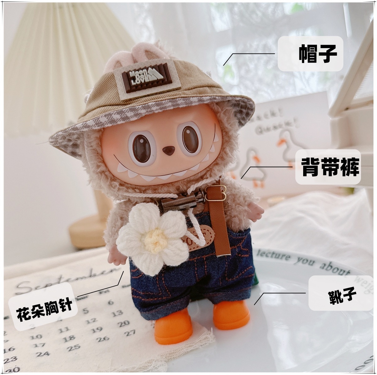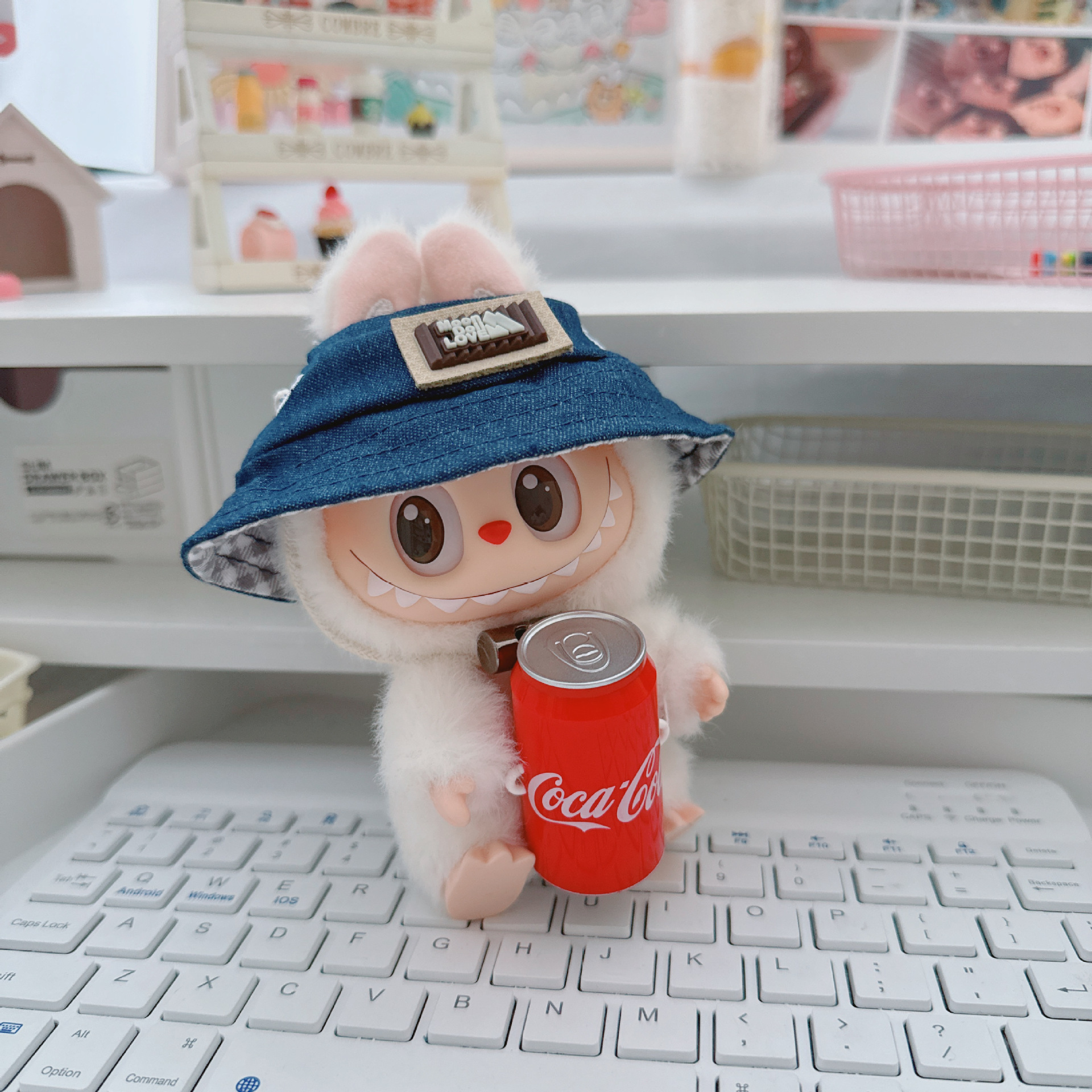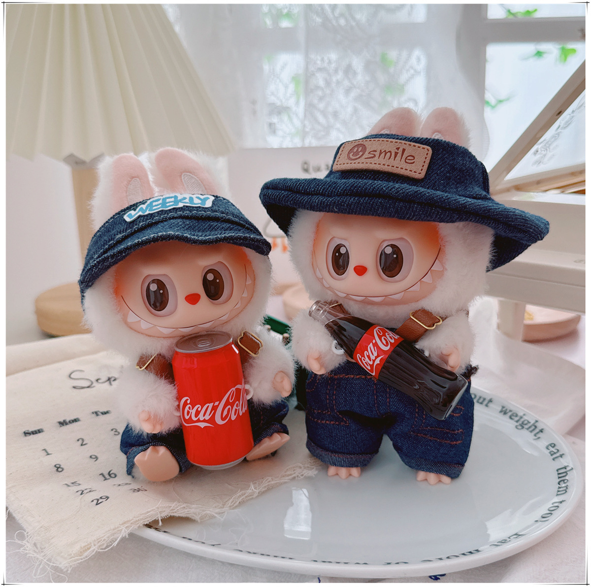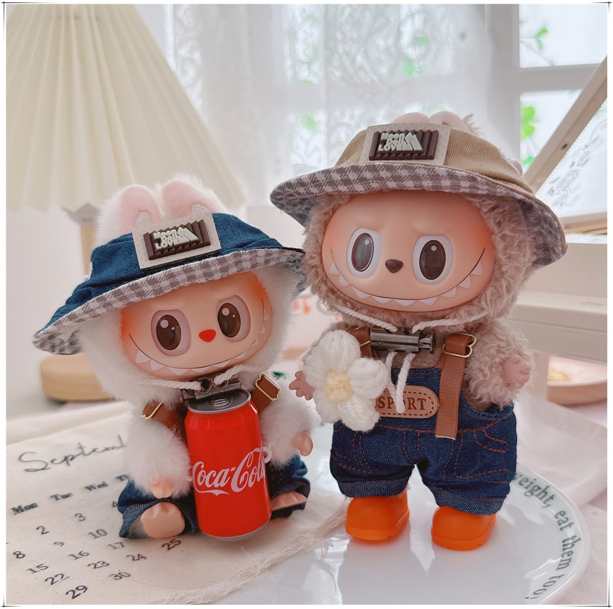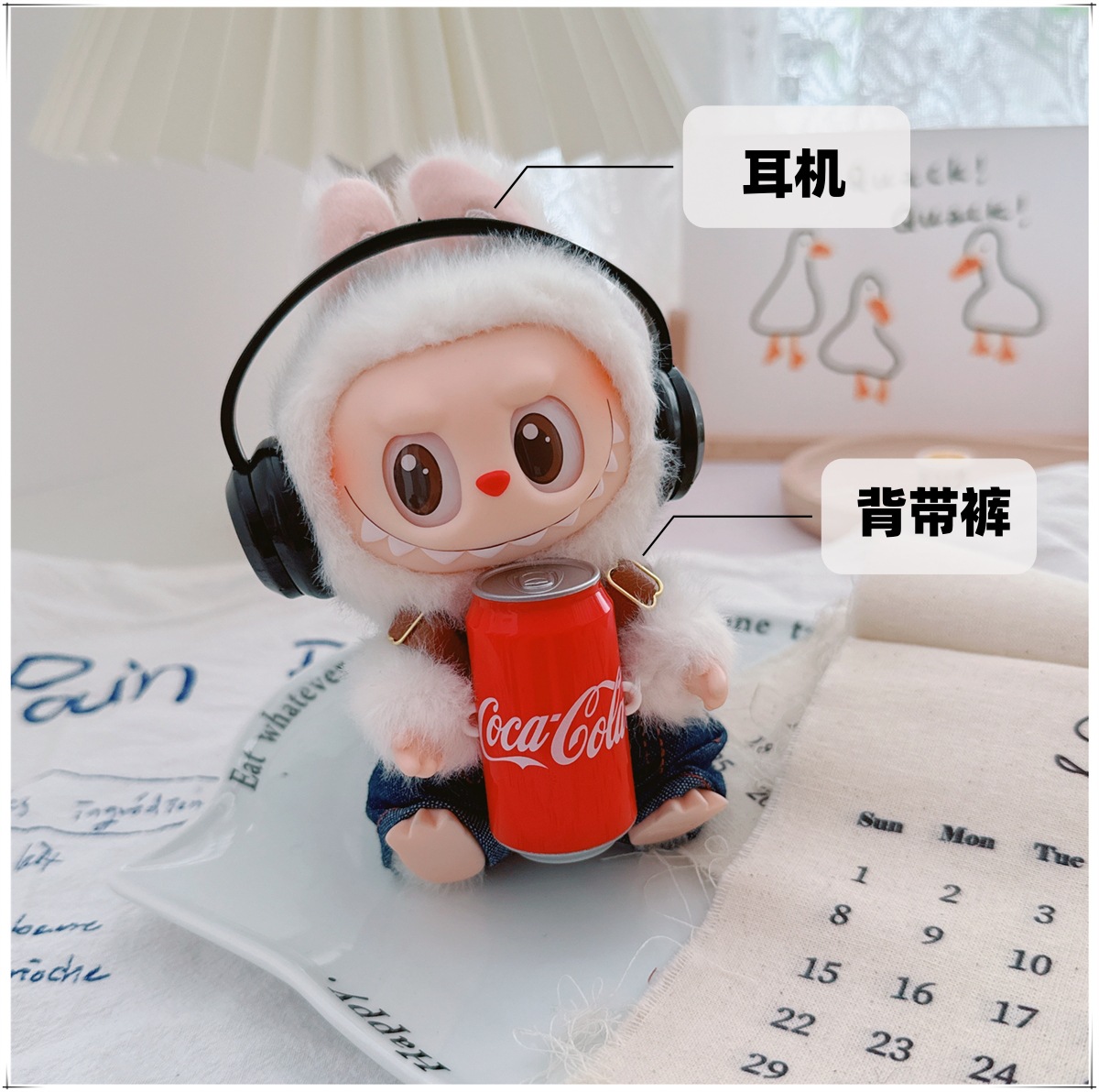 Детская одежда Labubu Coca-Cola первого, второго и третьего поколения, виниловая одежда Labubu для сидения и стояния, комбинезон, наушники, обувь