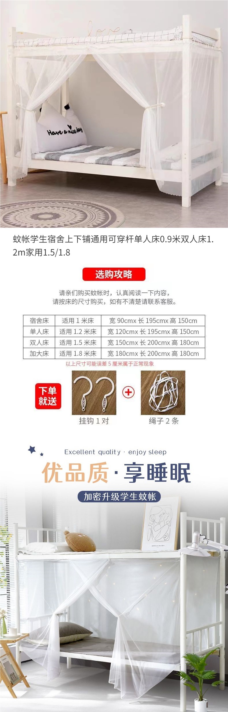 Москитная сетка для двухъярусной кровати в студенческом общежитии, универсальная носимая штанга, односпальная кровать 0.9m двуспальная кровать 1,2 м для дома 1,5/1,8