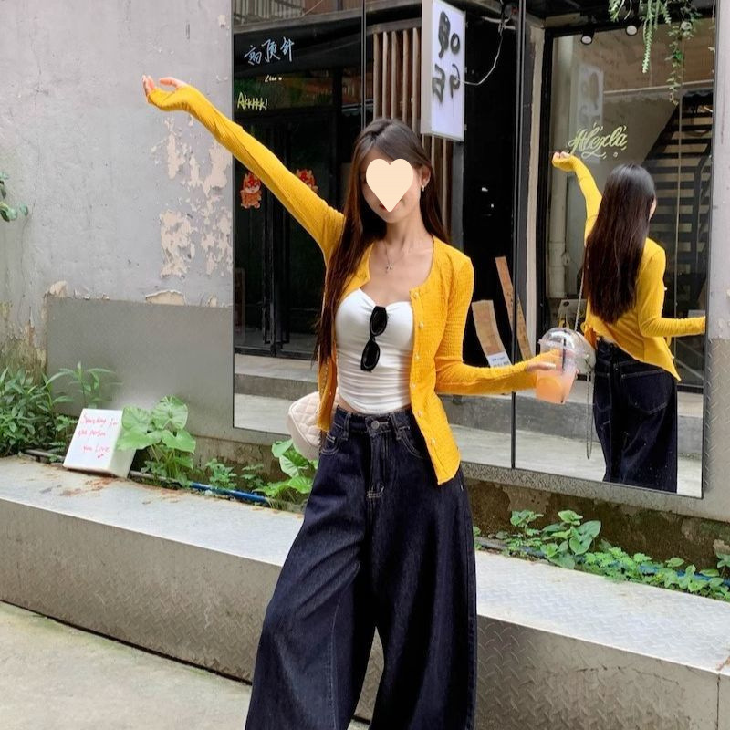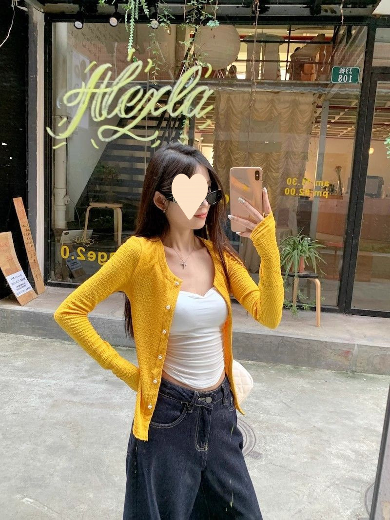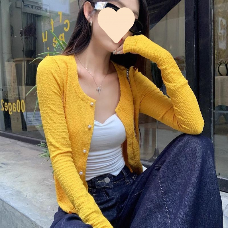 Летний сладкий и пряный стиль чистого желания, универсальный ранний осенний костюм в корейском стиле, вязаный кардиган, куртка, нишевый дизайн, женская одежда