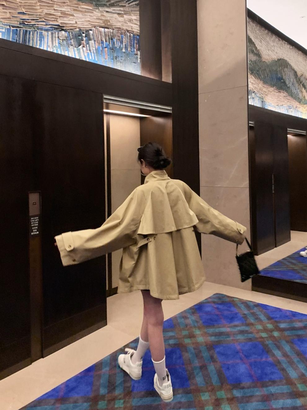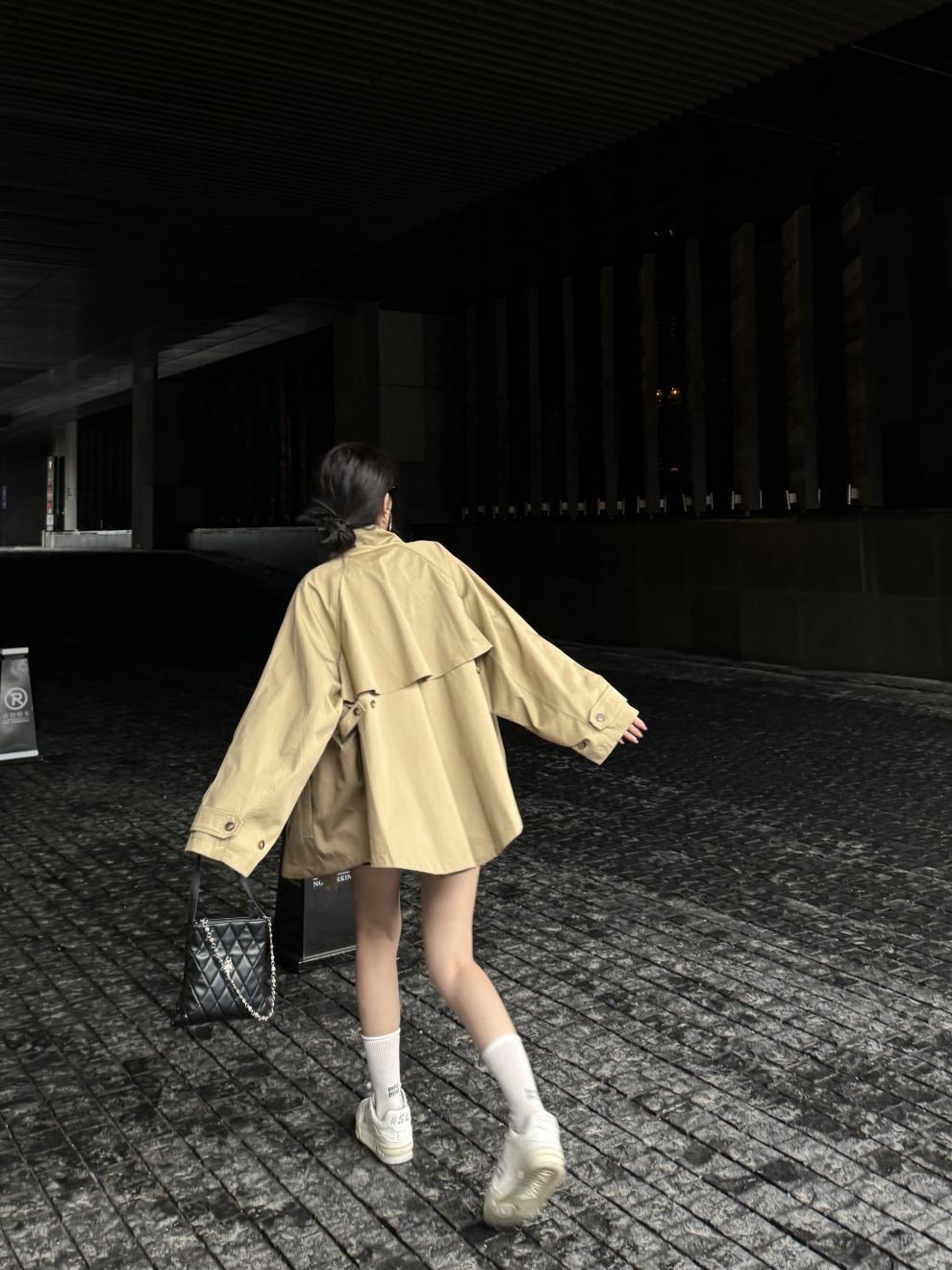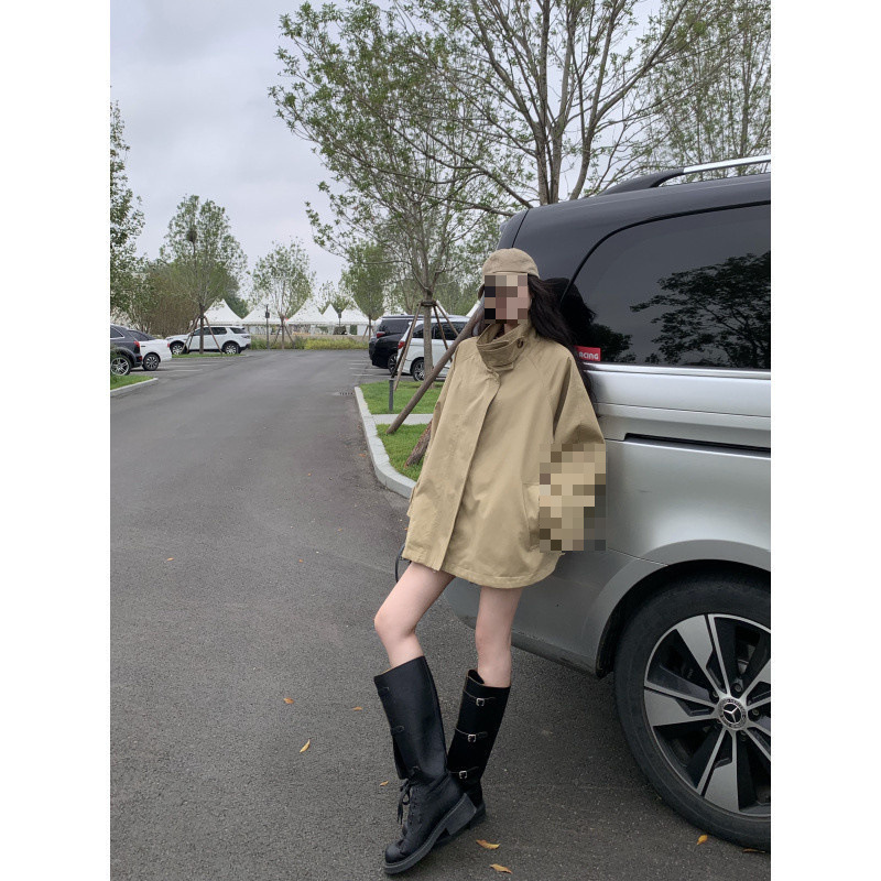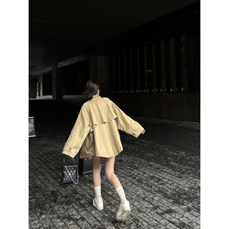 YS8 реальный снимок, реальная цена, супер красивая короткая ветровка цвета хаки, миниатюрное пальто с воротником-стойкой в британском стиле