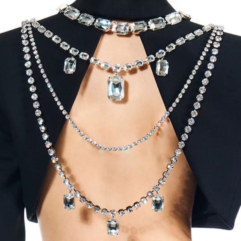 Многослойное ожерелье с подвеской из хрусталя и драгоценных камней в европейском и американском стиле, полное бриллиантовое ожерелье, трансграничная внешняя торговля, преувеличенная высококачественная задняя цепочка