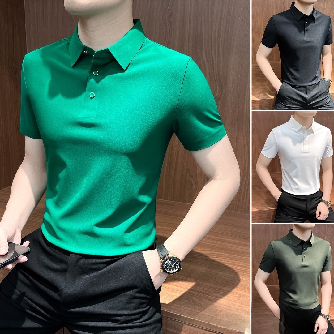 Однотонная мужская рубашка 2025 года, новый стиль, стильная мужская деловая повседневная рубашка с коротким рукавом, белый, зеленый, серый, черный
